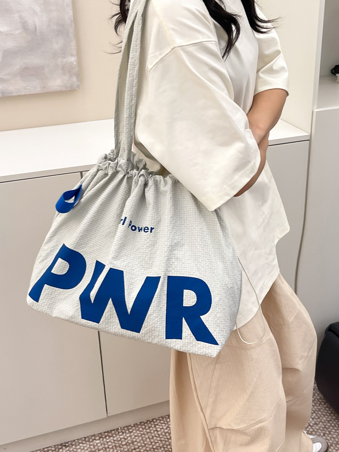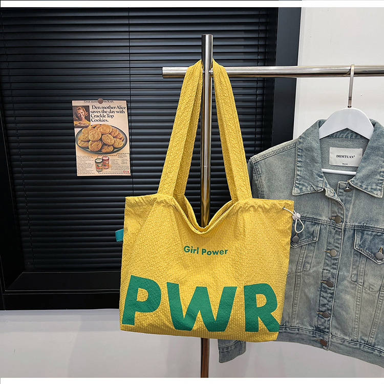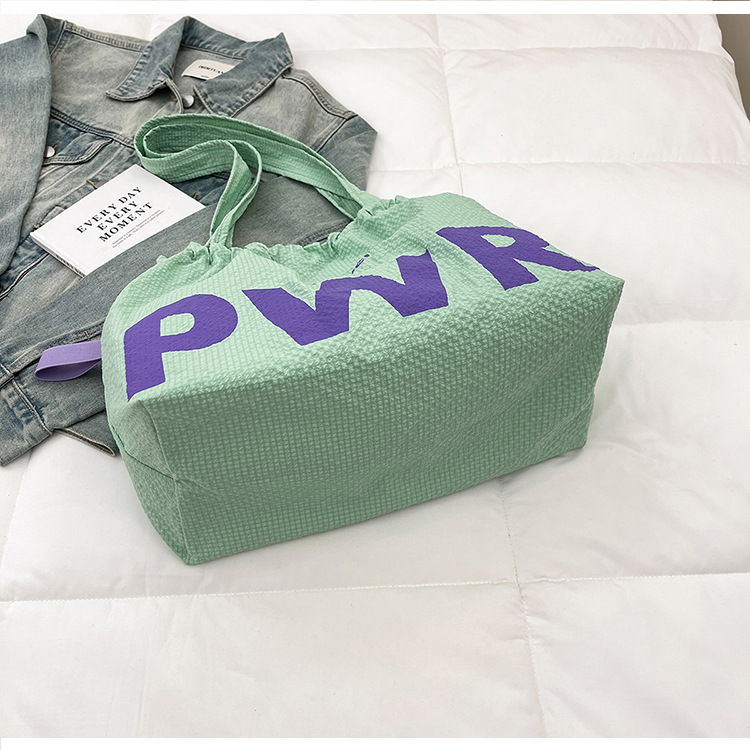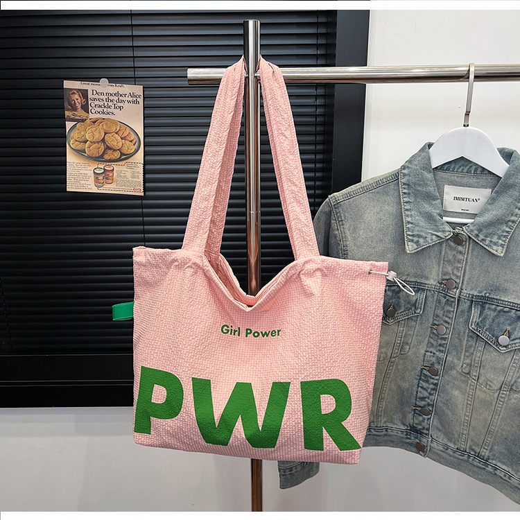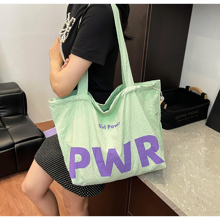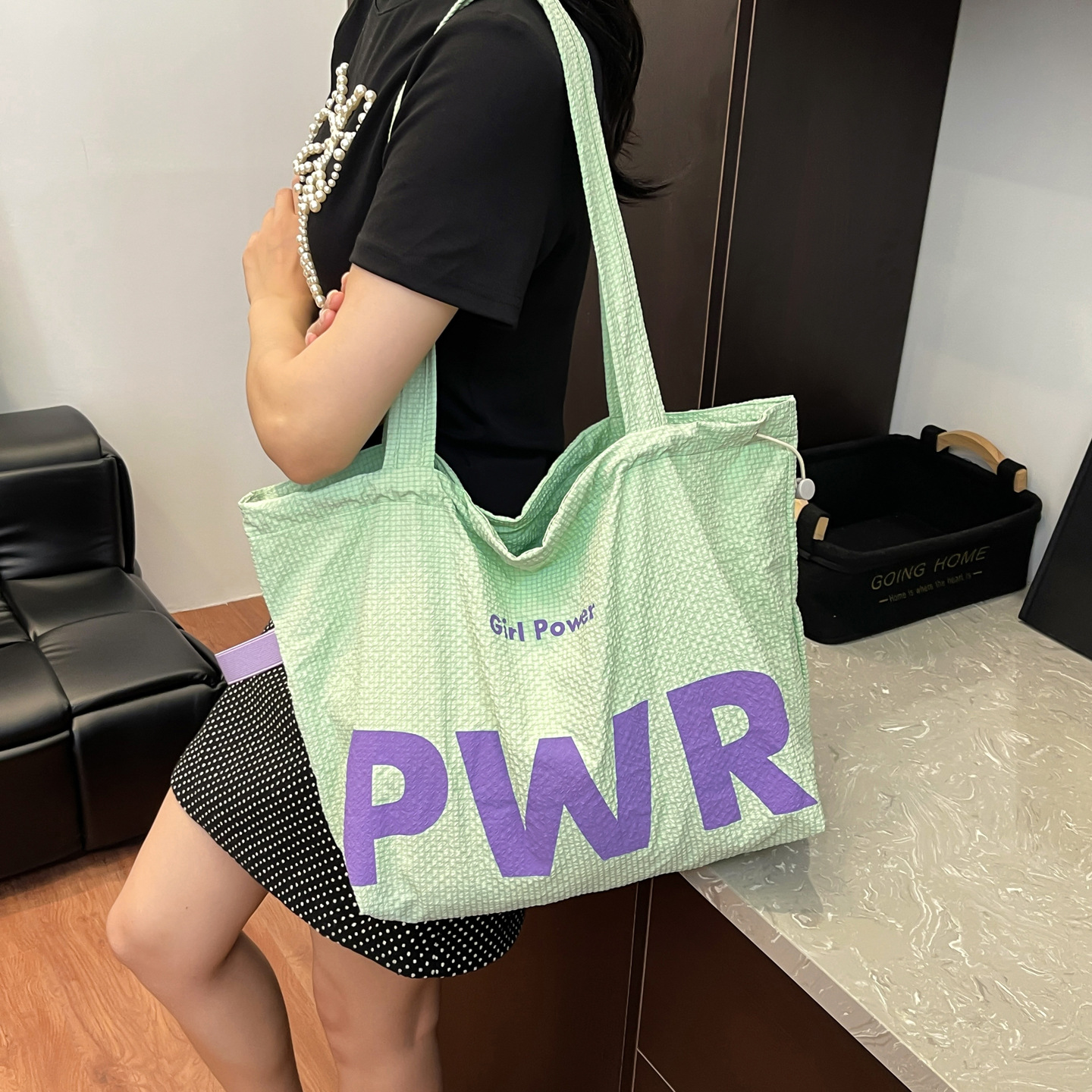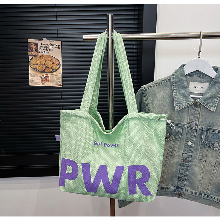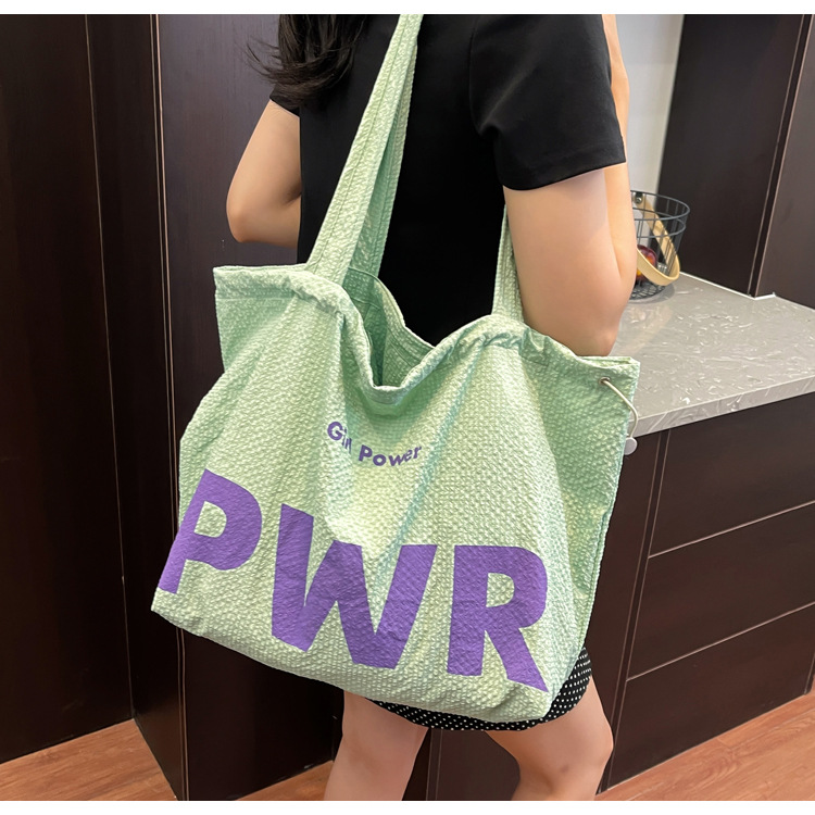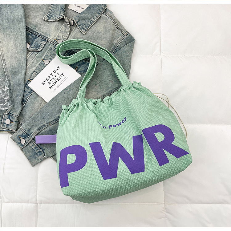 대용량 가방 여성 숄더 백 Drawstring Letter 인쇄 가방 레트로 캐주얼 나일론 가방 캐주얼 토트 백 여성