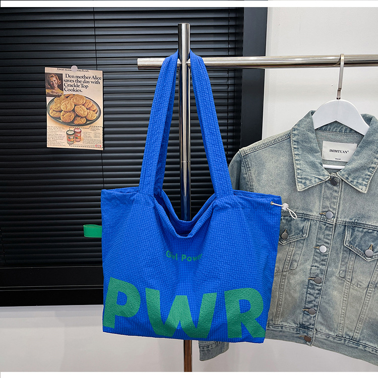 대용량 가방 여성 숄더 백 Drawstring Letter 인쇄 가방 레트로 캐주얼 나일론 가방 캐주얼 토트 백 여성스토어 가기