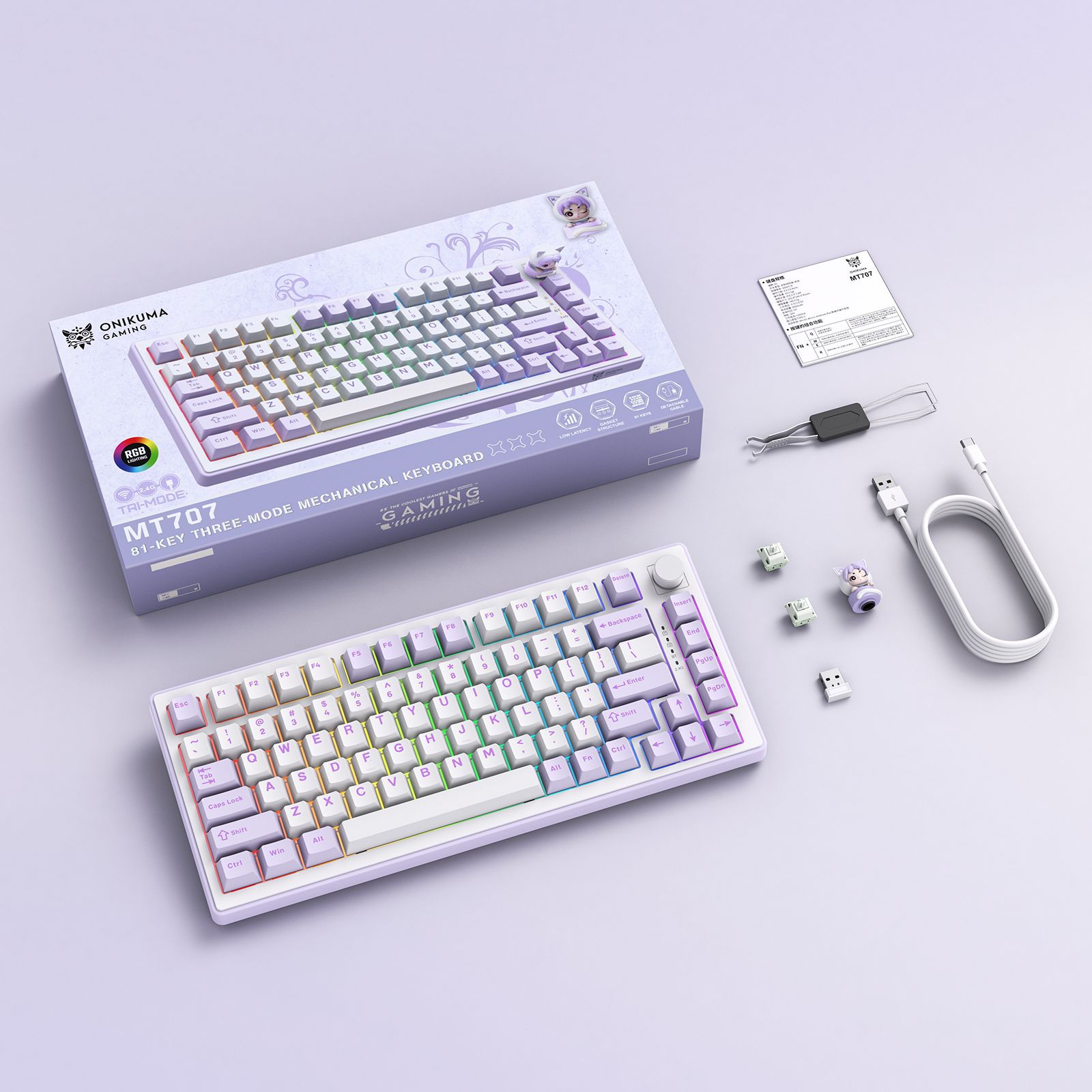 • MT707 3모드 기계식 키보드(보라색)