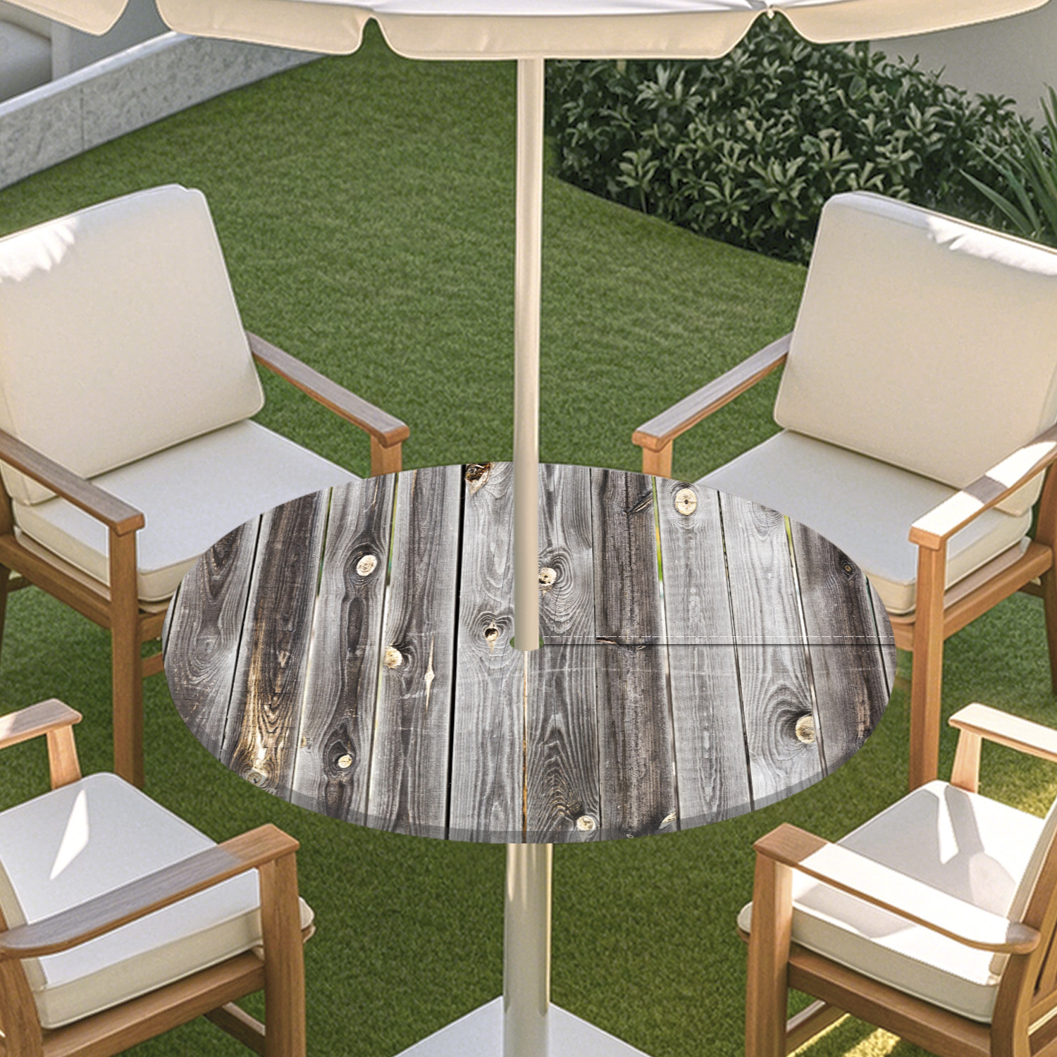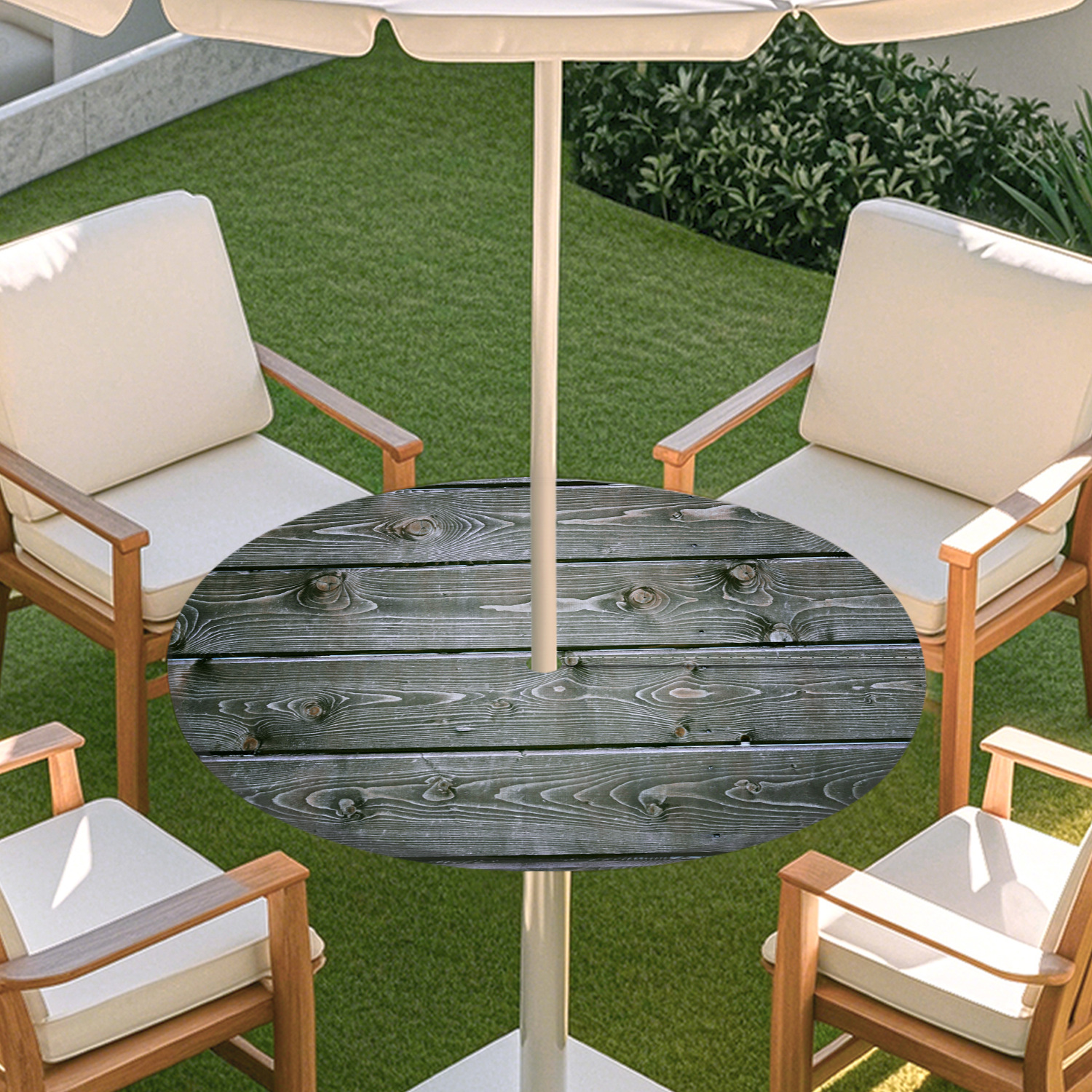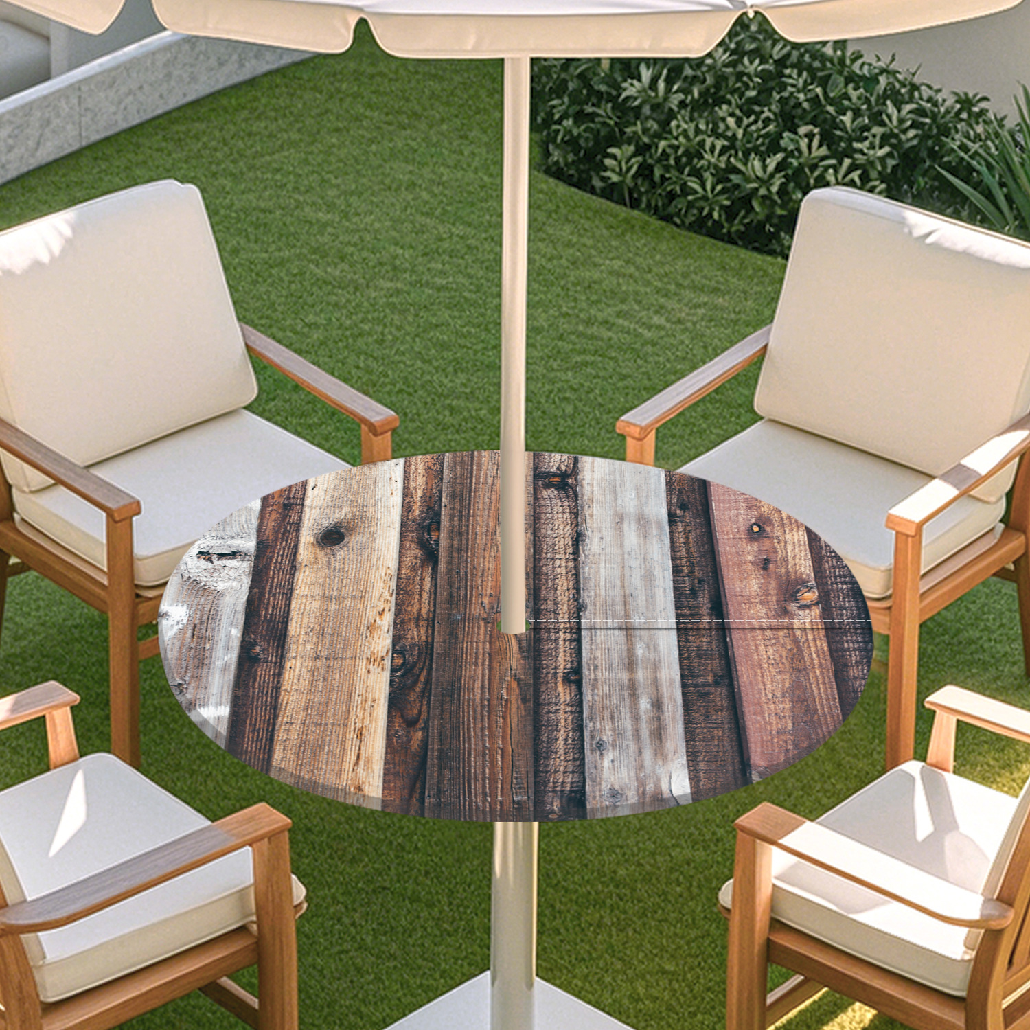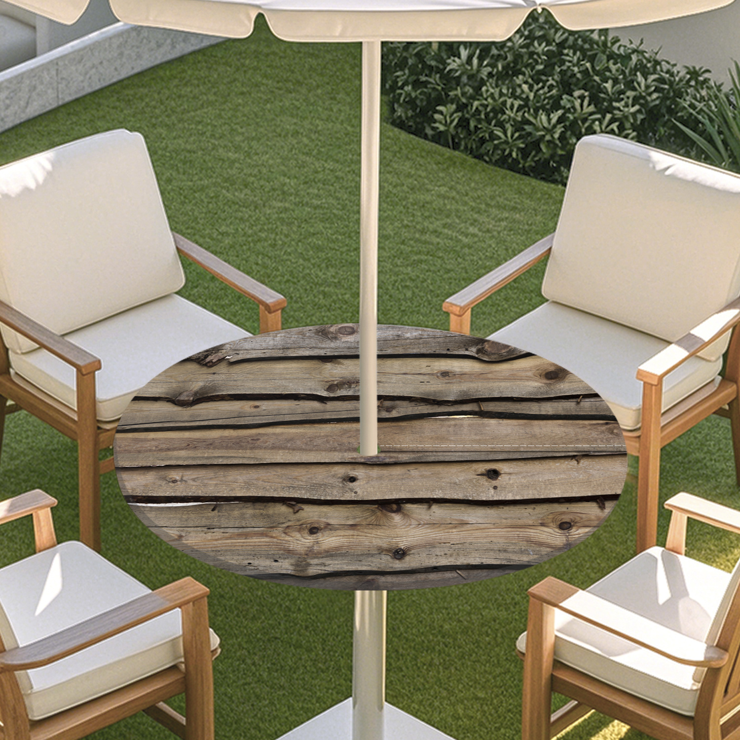 피크닉 매트 캠핑 식탁보 나무 질감 패턴 지퍼 테이블 커버 방수 탄성 밴드 테이블 커버 야외 우산 구멍 식탁보스토어 가기