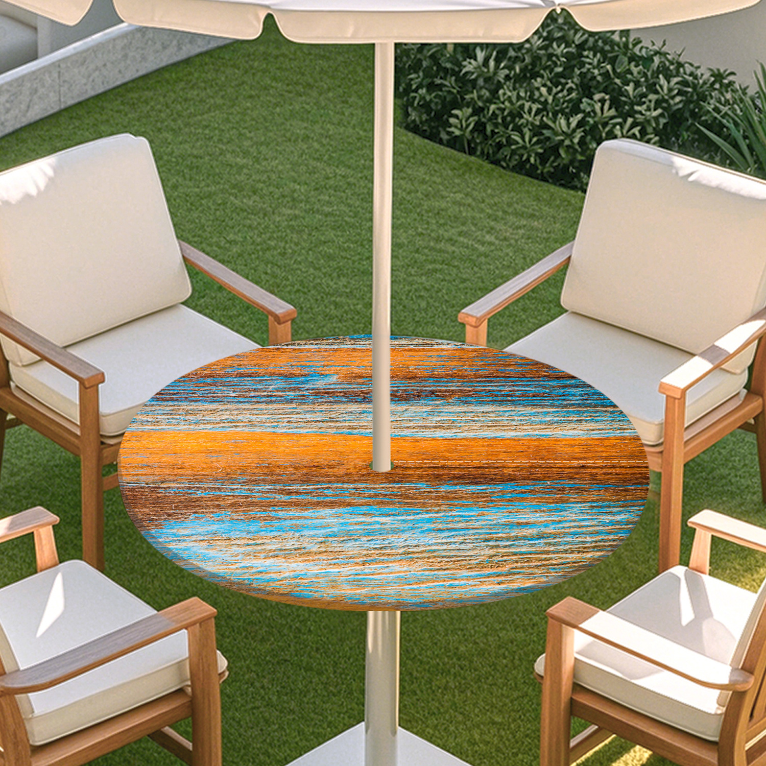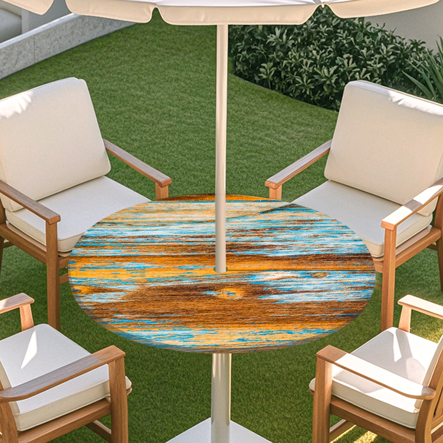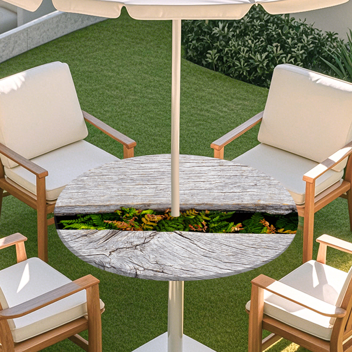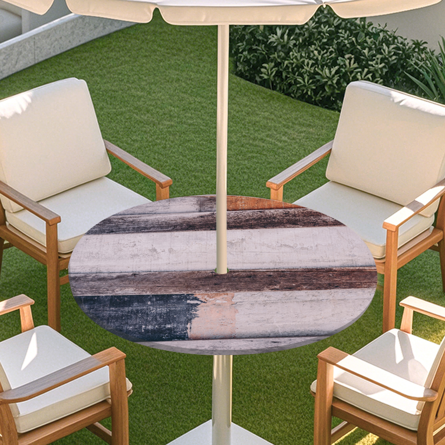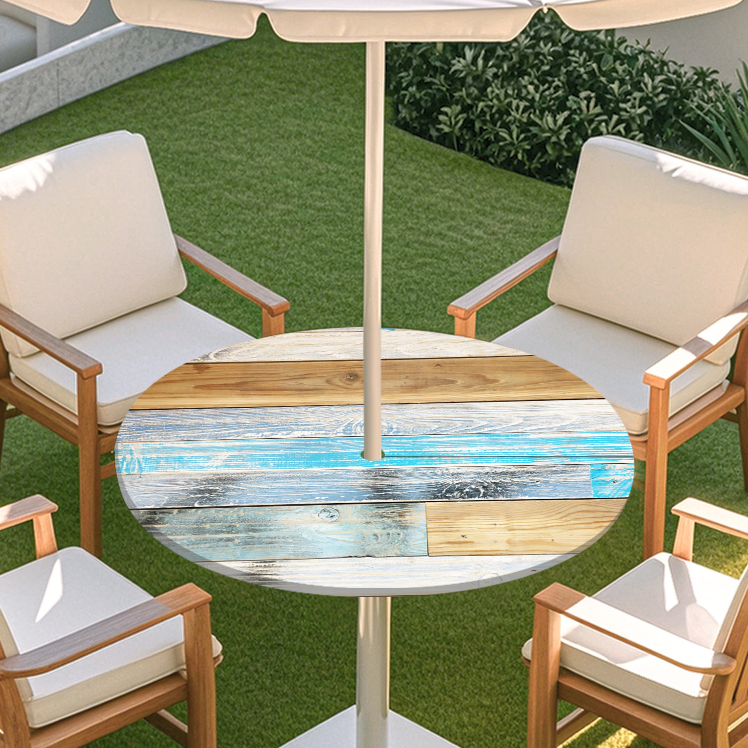 피크닉 매트 캠핑 식탁보 나무 질감 패턴 지퍼 테이블 커버 방수 탄성 밴드 테이블 커버 야외 우산 구멍 식탁보스토어 가기