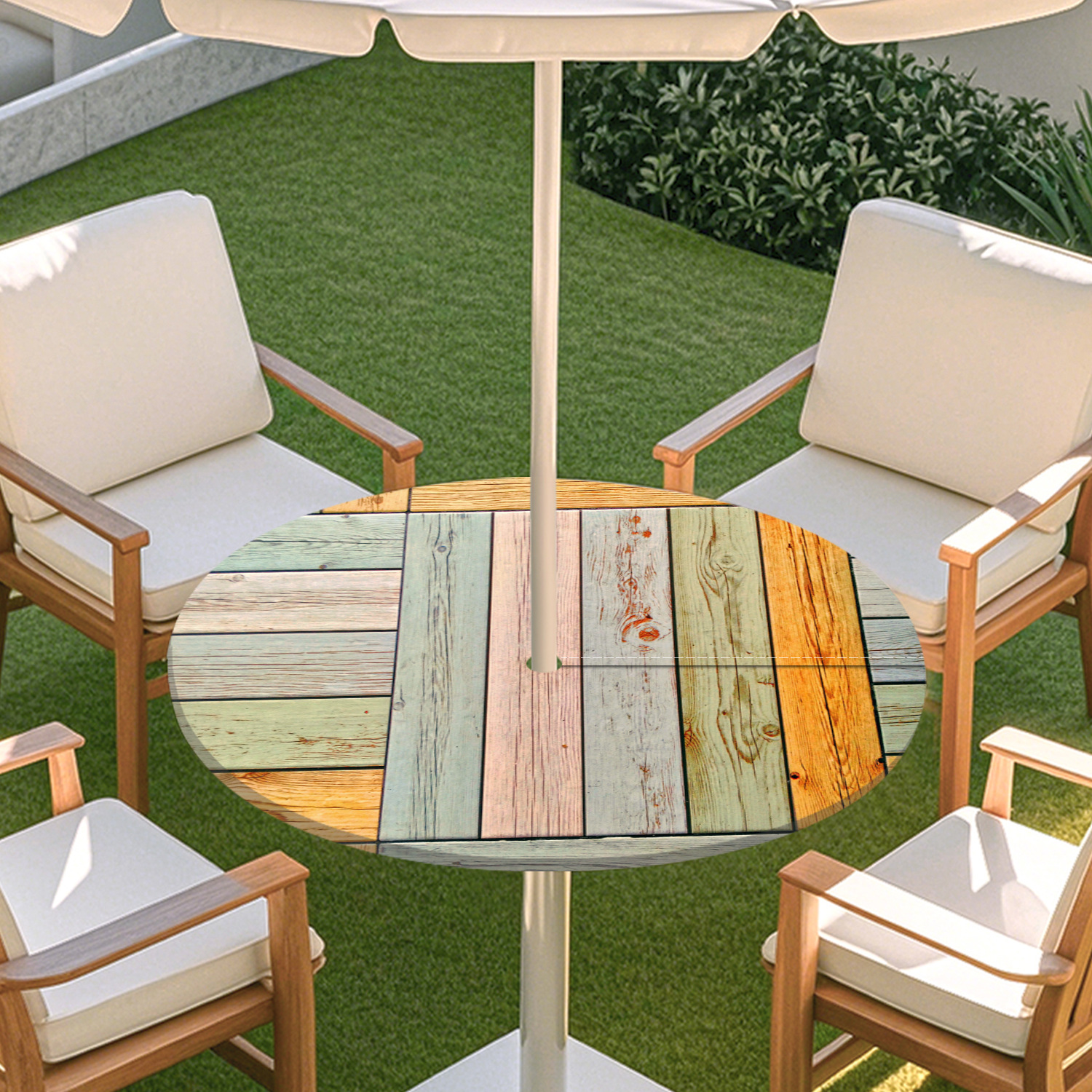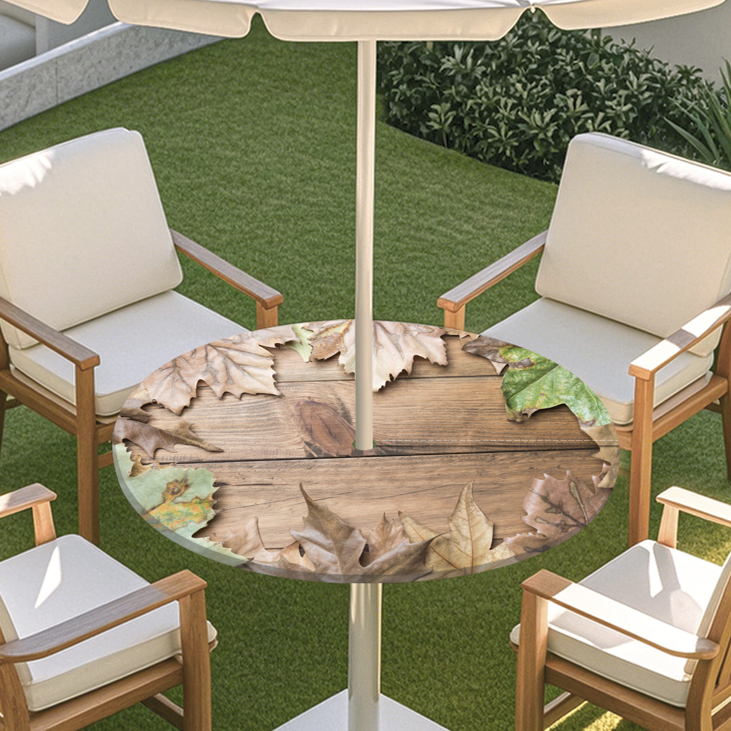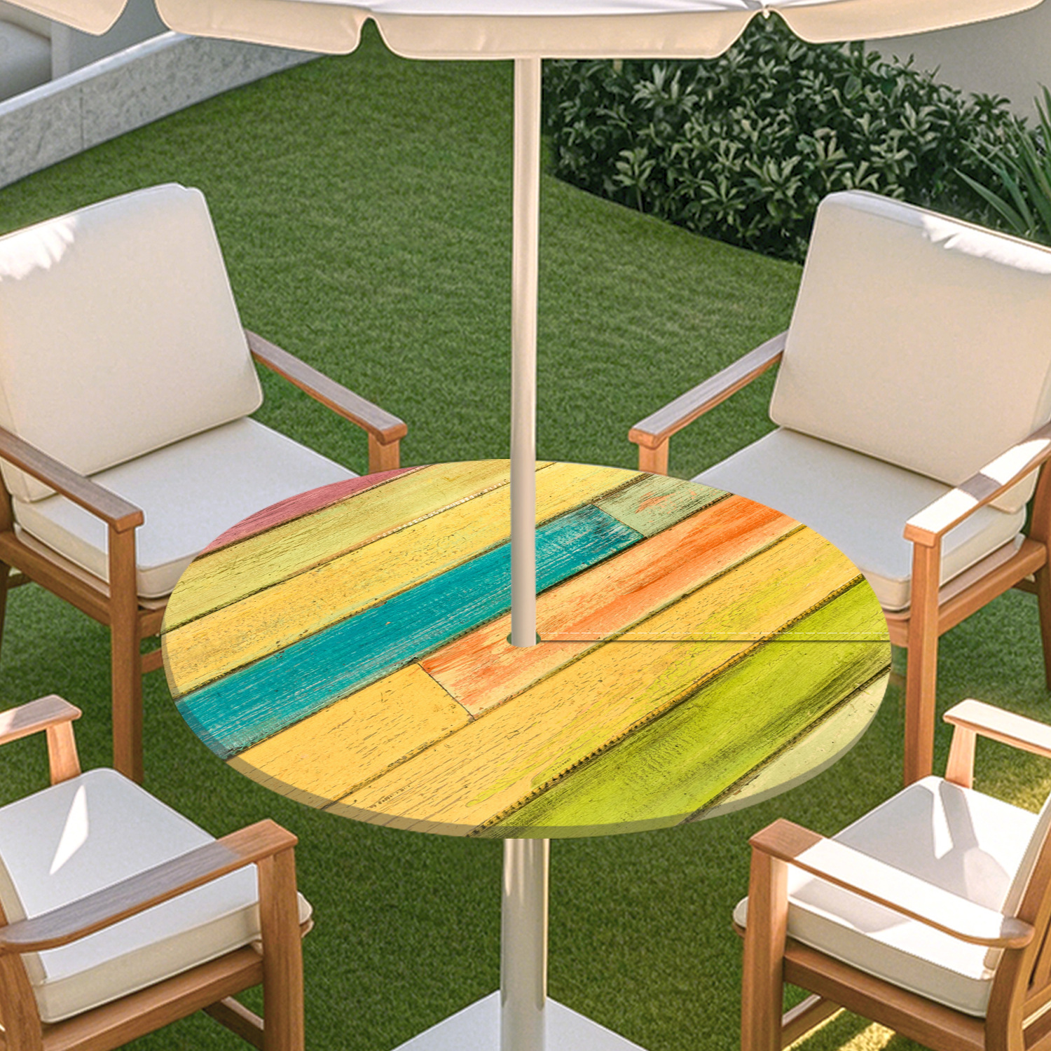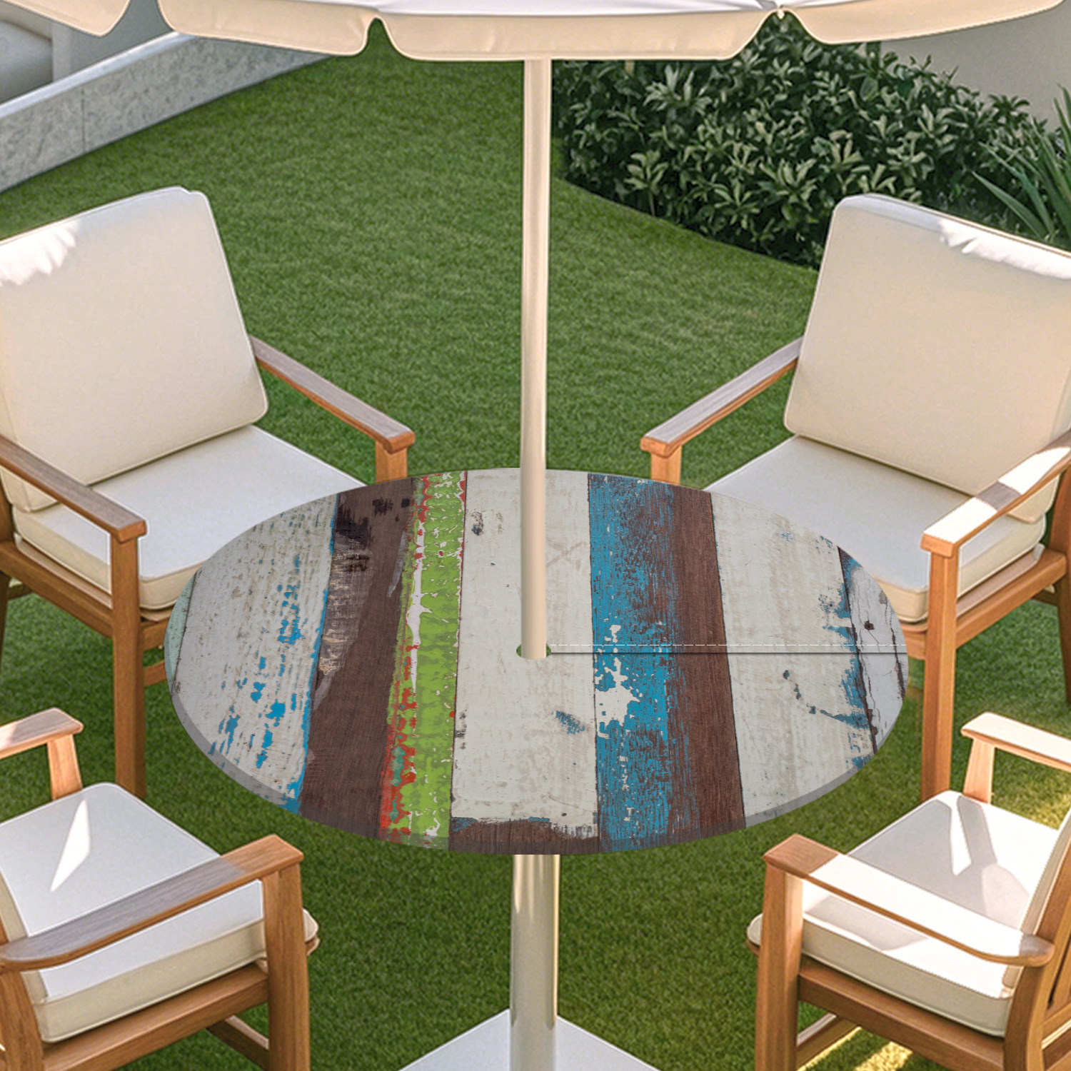 피크닉 매트 캠핑 식탁보 나무 질감 패턴 지퍼 테이블 커버 방수 탄성 밴드 테이블 커버 야외 우산 구멍 식탁보스토어 가기