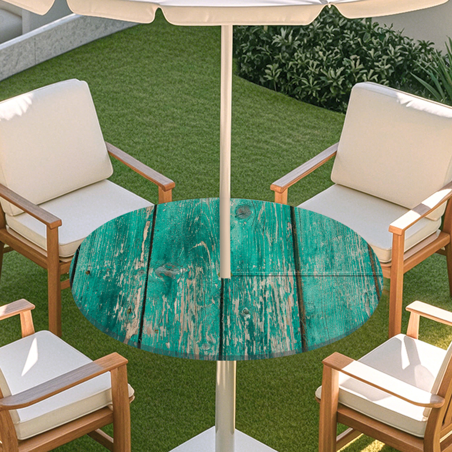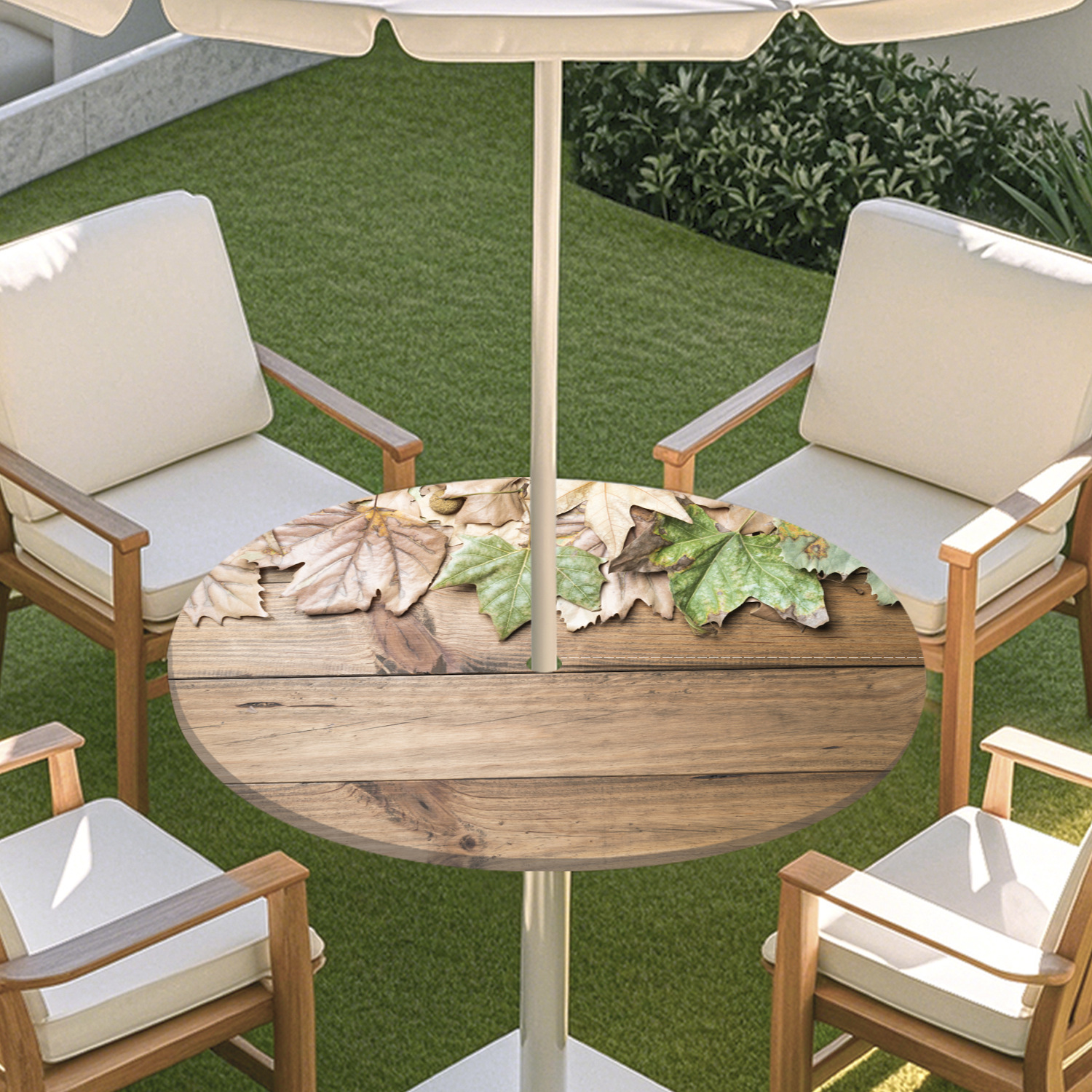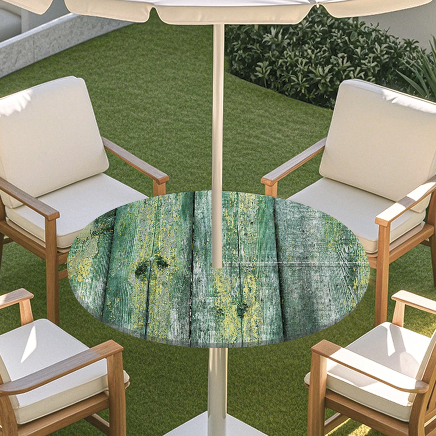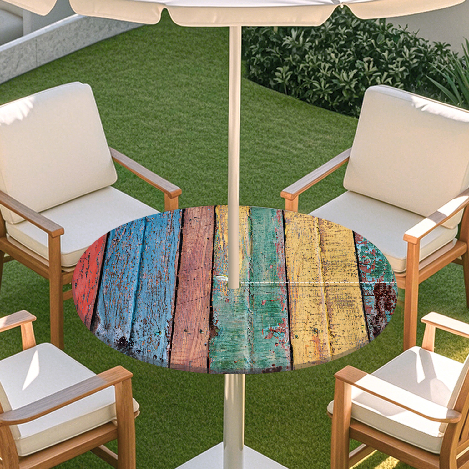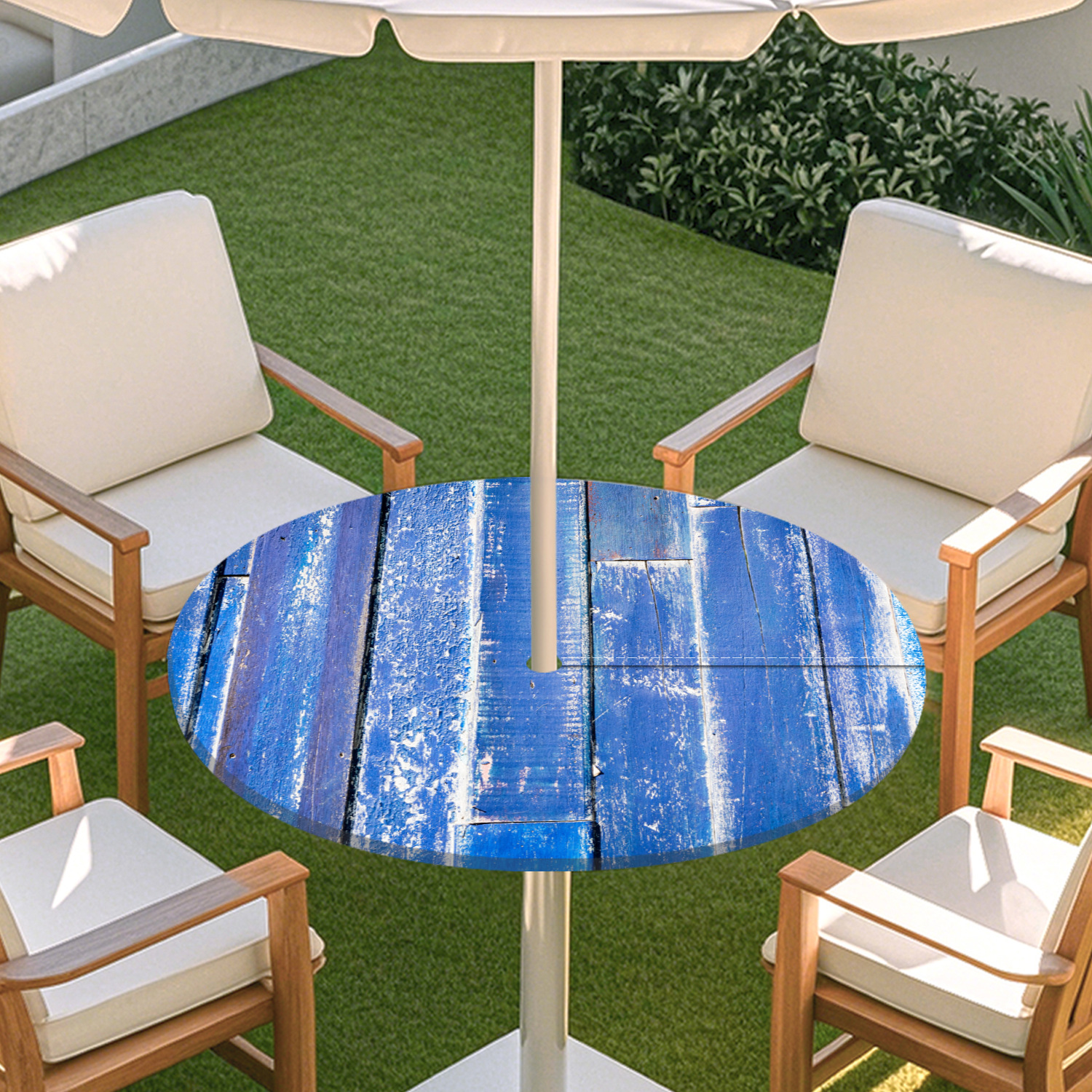 피크닉 매트 캠핑 식탁보 나무 질감 패턴 지퍼 테이블 커버 방수 탄성 밴드 테이블 커버 야외 우산 구멍 식탁보스토어 가기