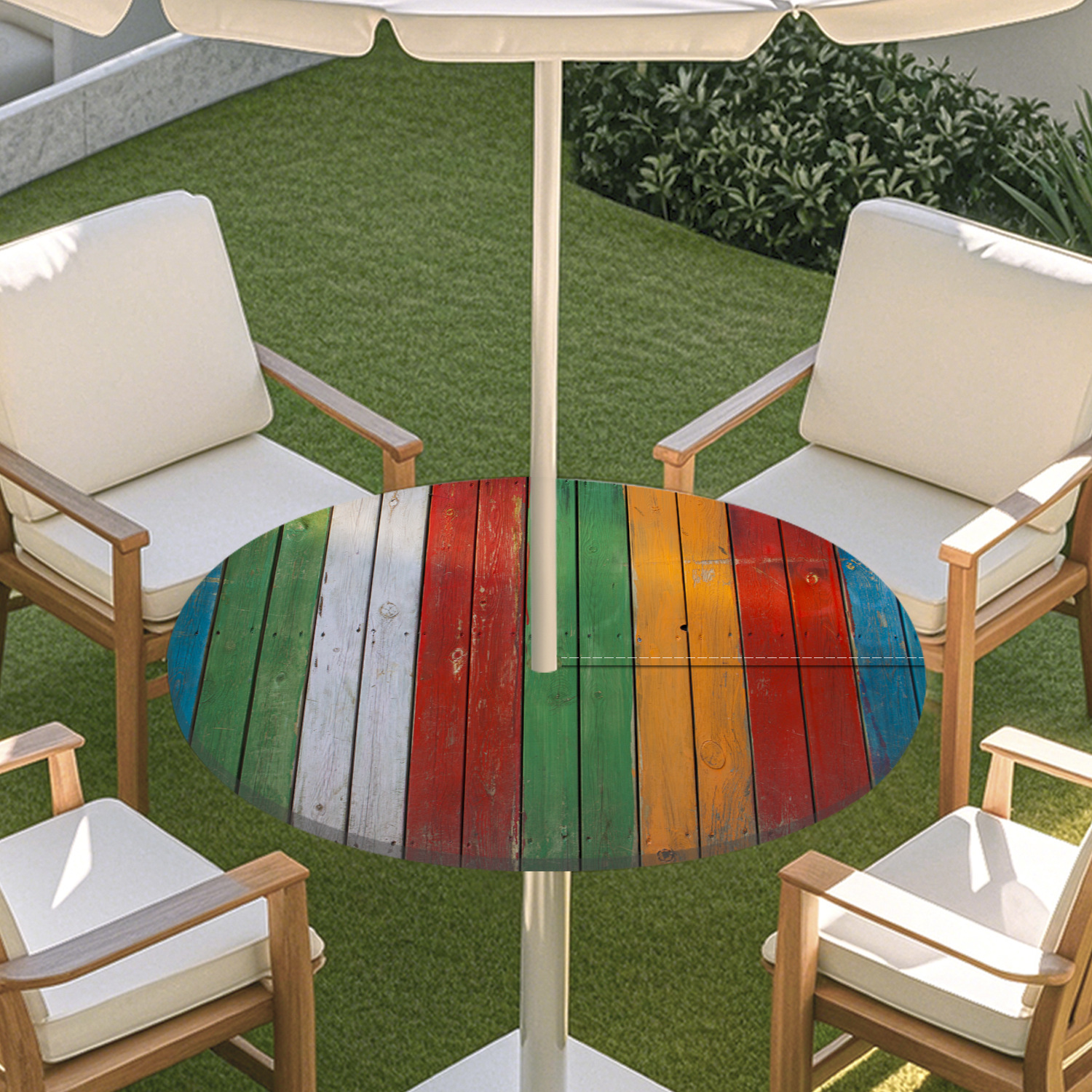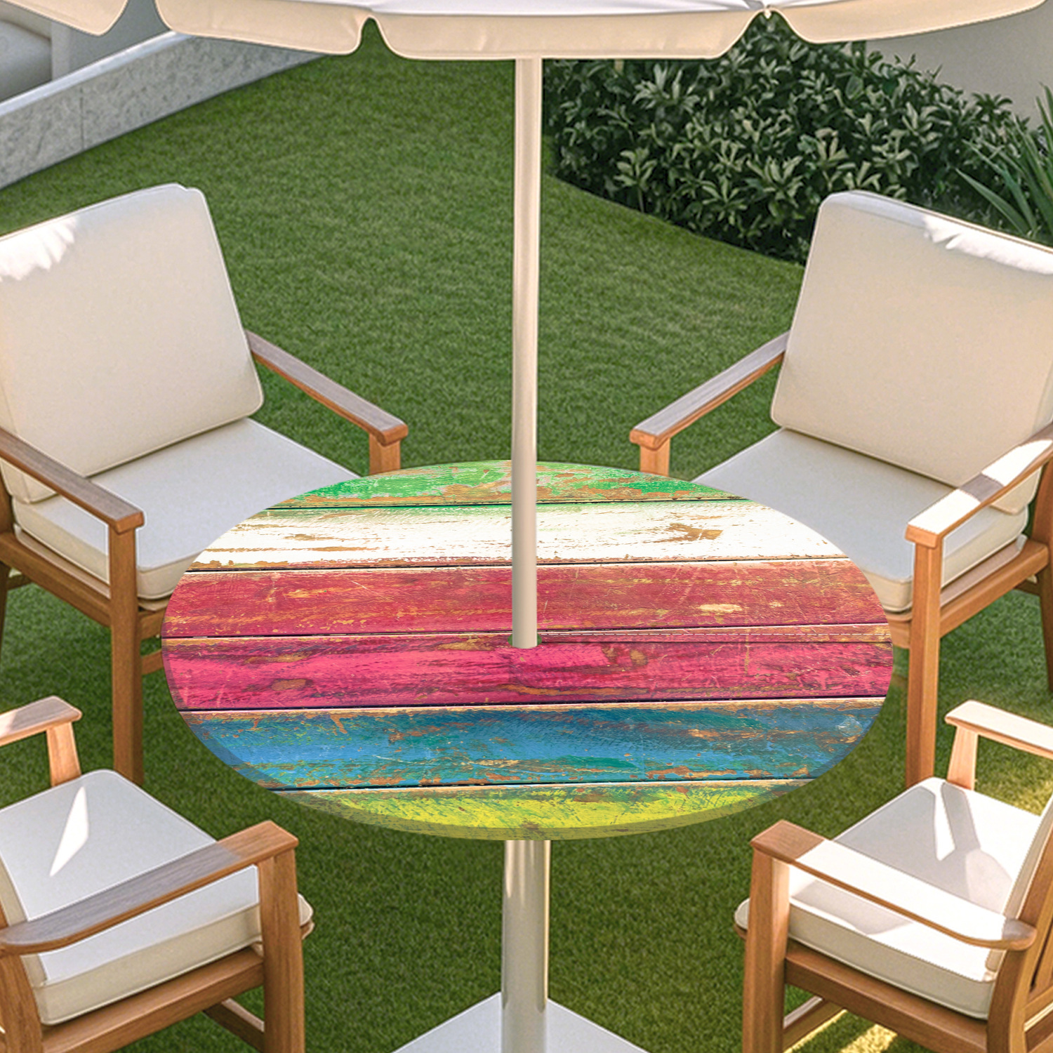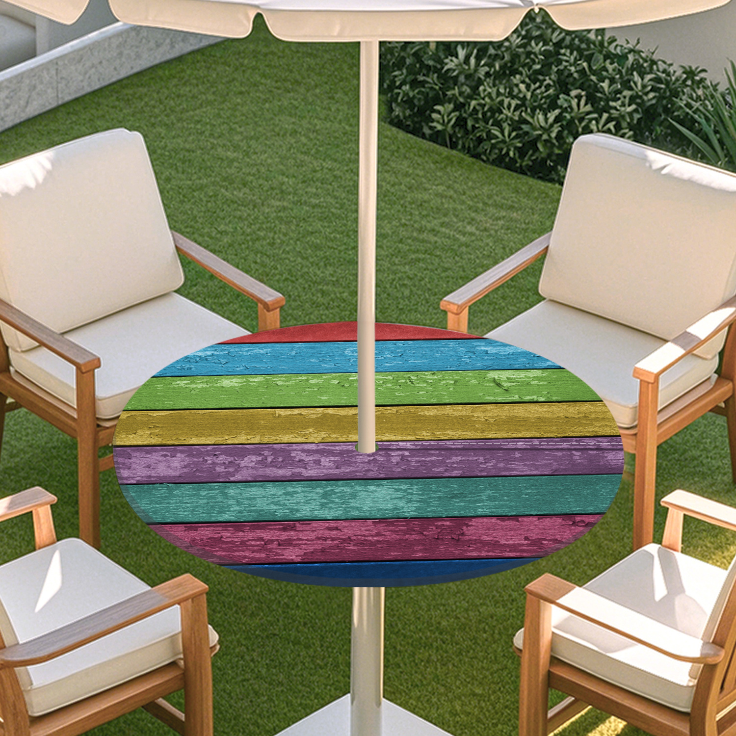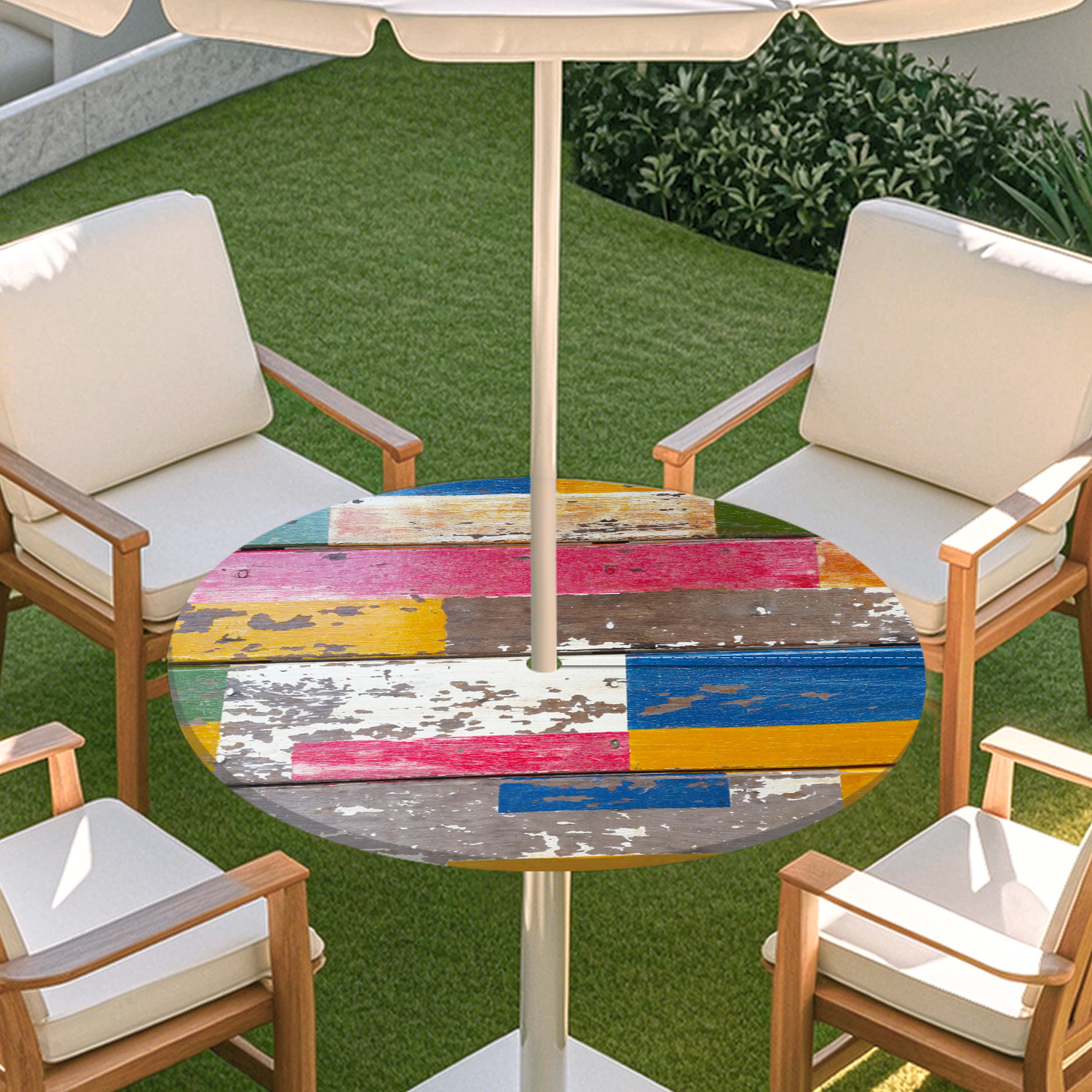 피크닉 매트 캠핑 식탁보 나무 질감 패턴 지퍼 테이블 커버 방수 탄성 밴드 테이블 커버 야외 우산 구멍 식탁보스토어 가기