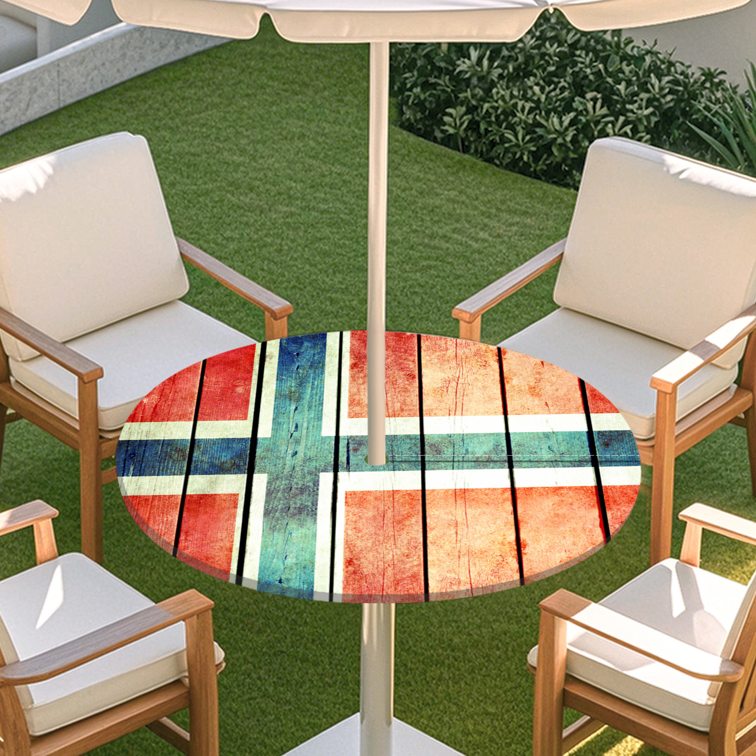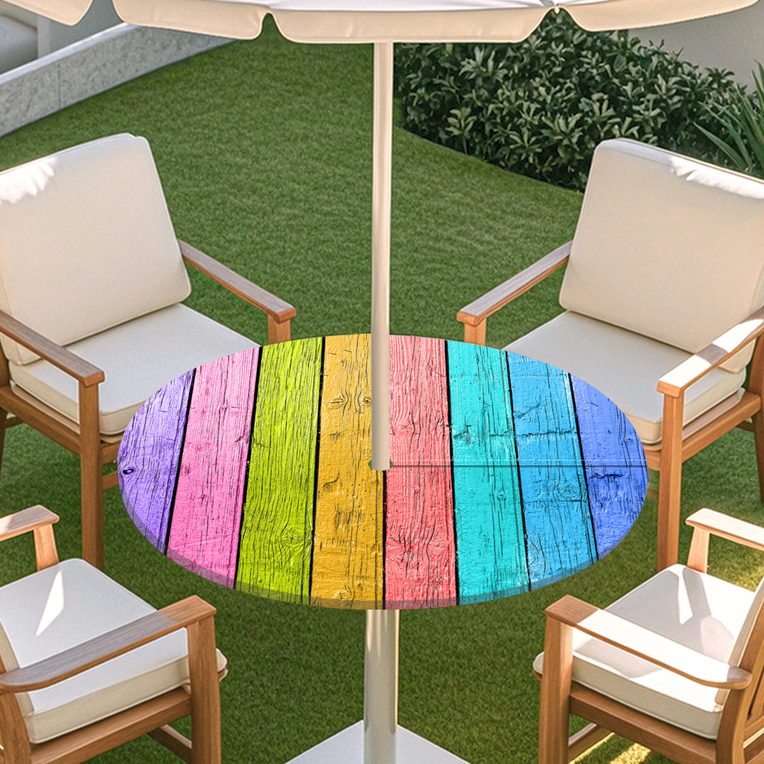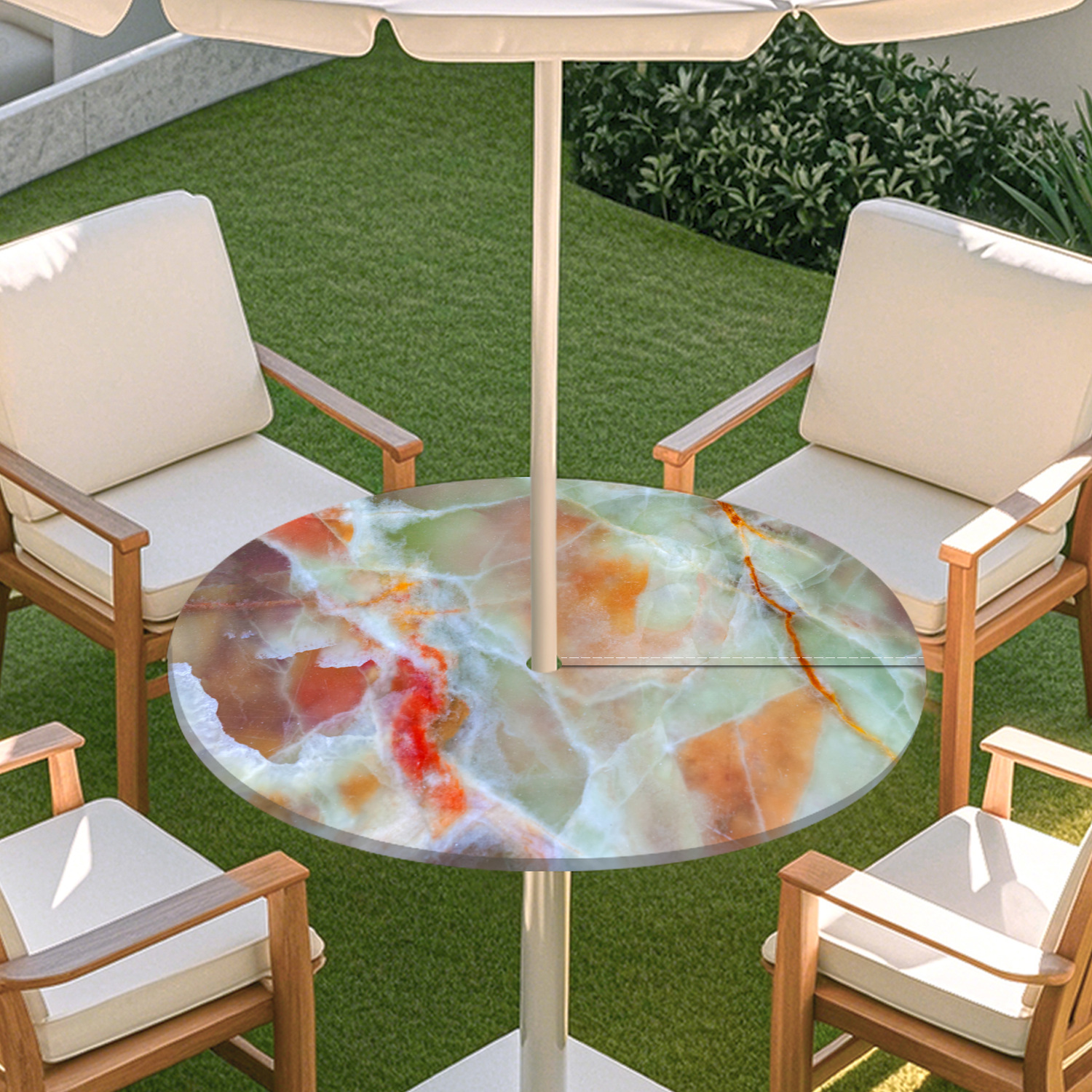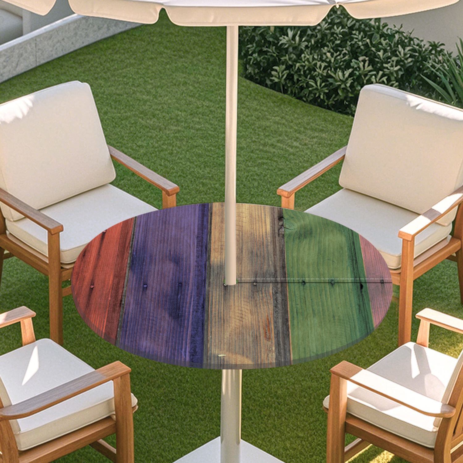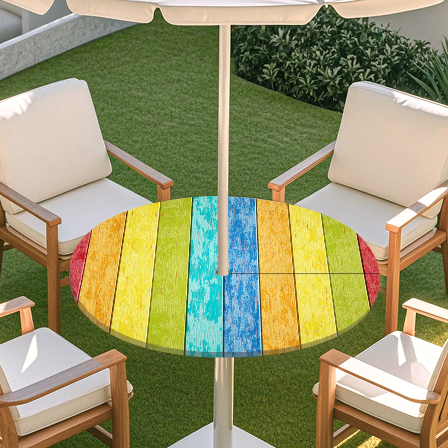 피크닉 매트 캠핑 식탁보 나무 질감 패턴 지퍼 테이블 커버 방수 탄성 밴드 테이블 커버 야외 우산 구멍 식탁보스토어 가기
