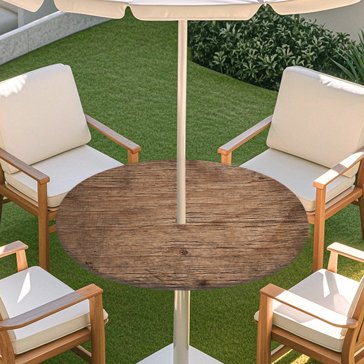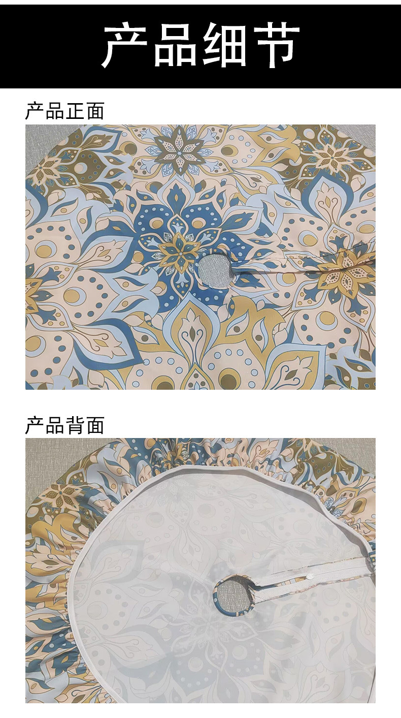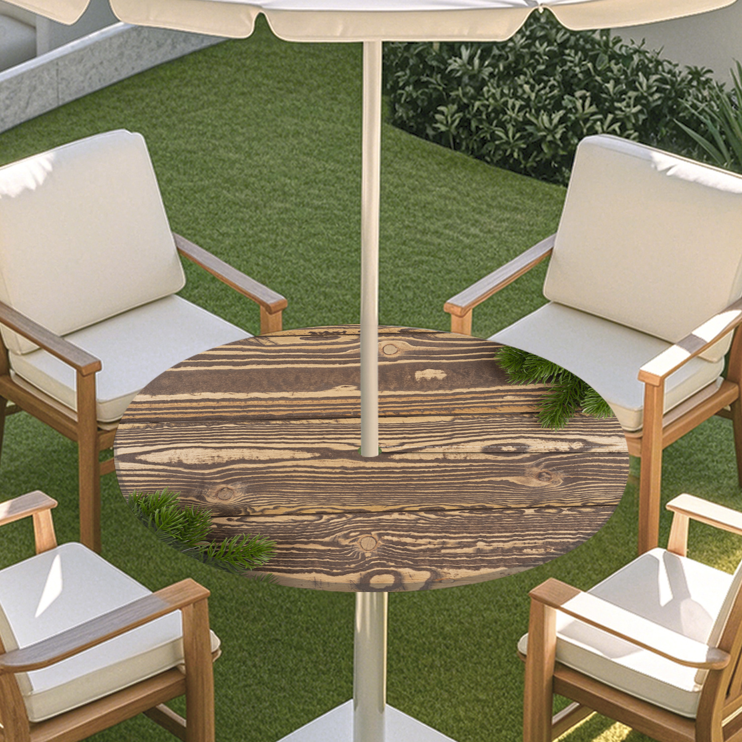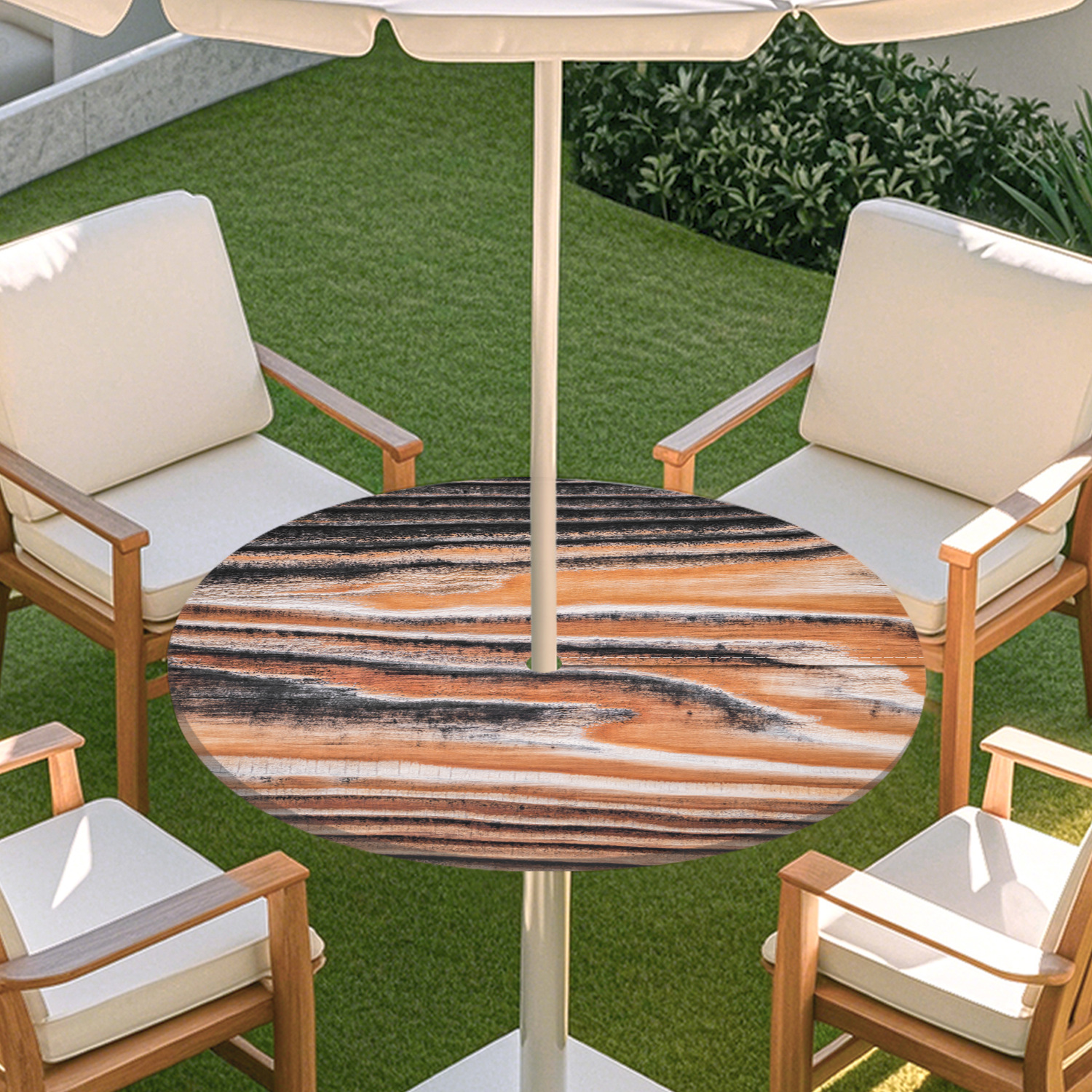 피크닉 매트 캠핑 식탁보 나무 질감 패턴 지퍼 테이블 커버 방수 탄성 밴드 테이블 커버 야외 우산 구멍 식탁보