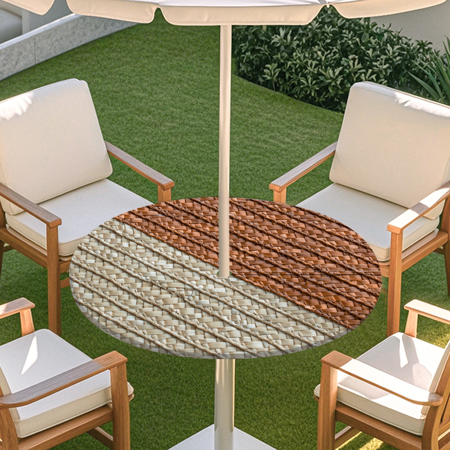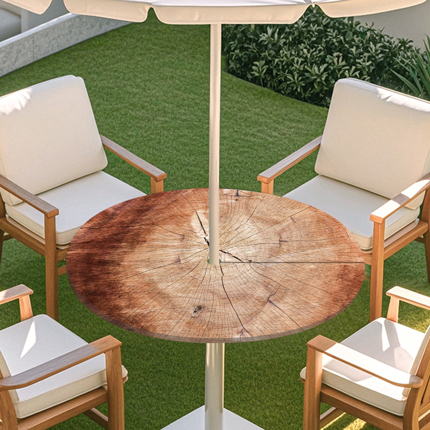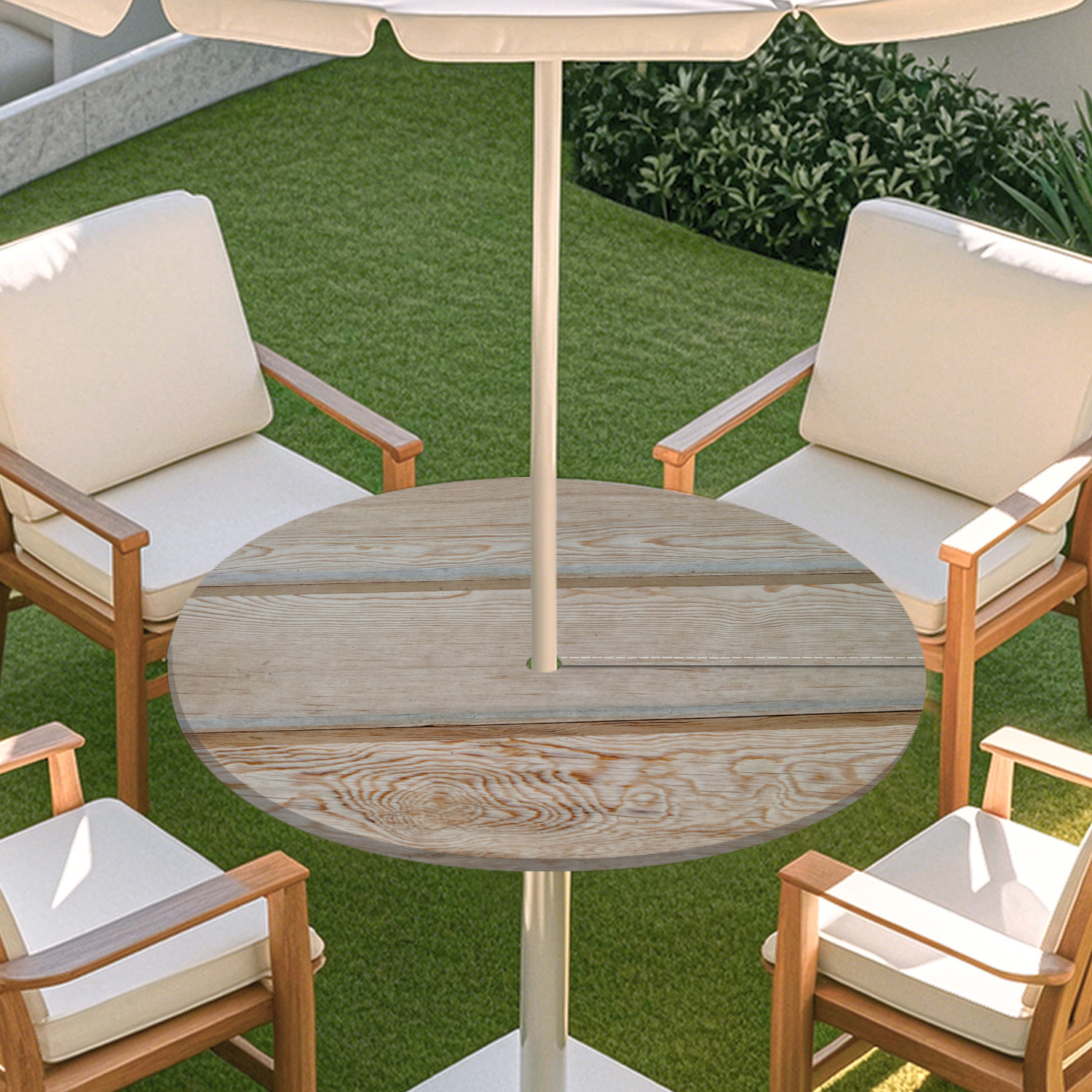 피크닉 매트 캠핑 식탁보 나무 질감 패턴 지퍼 테이블 커버 방수 탄성 밴드 테이블 커버 야외 우산 구멍 식탁보