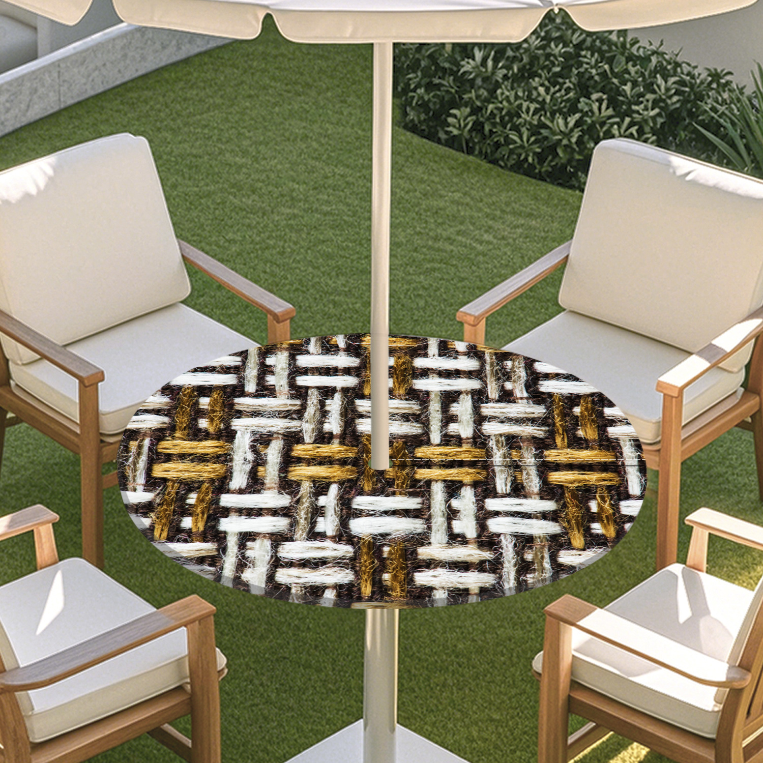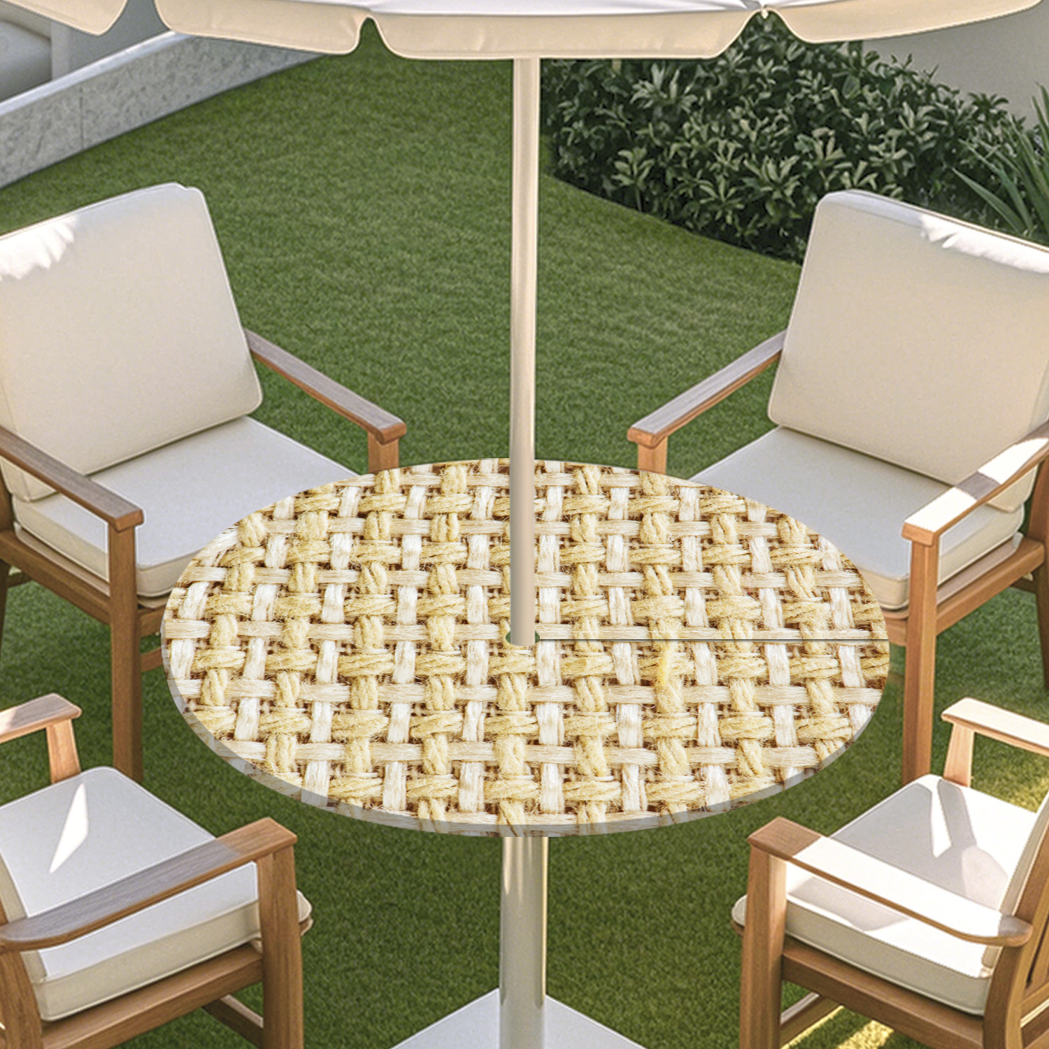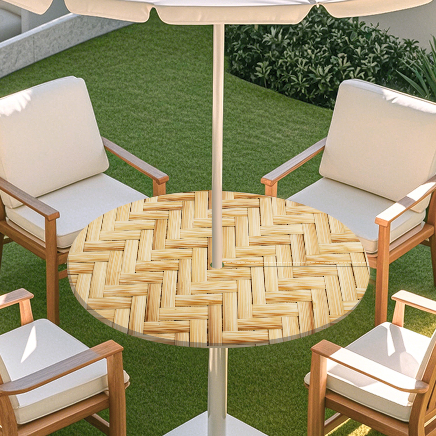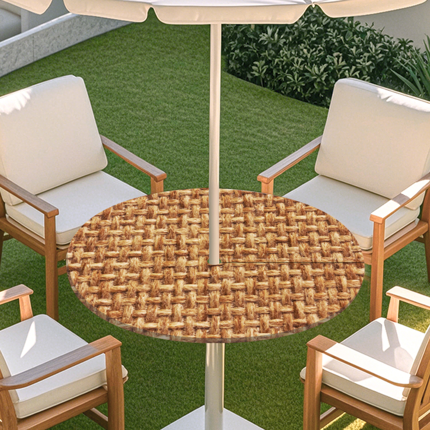 피크닉 매트 캠핑 식탁보 나무 질감 패턴 지퍼 테이블 커버 방수 탄성 밴드 테이블 커버 야외 우산 구멍 식탁보