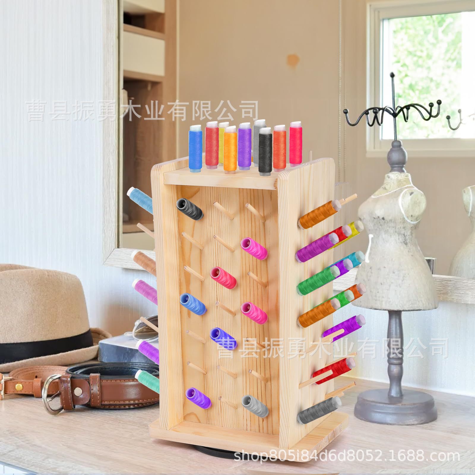 회전식 스풀 보관 랙이 있는 나무 스풀 랙 데스크탑 스탠딩 스풀 보관 랙 회전식 스풀 랙스토어 가기