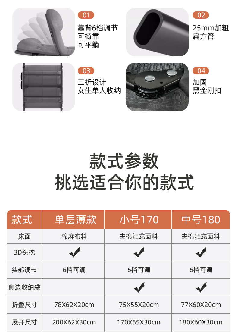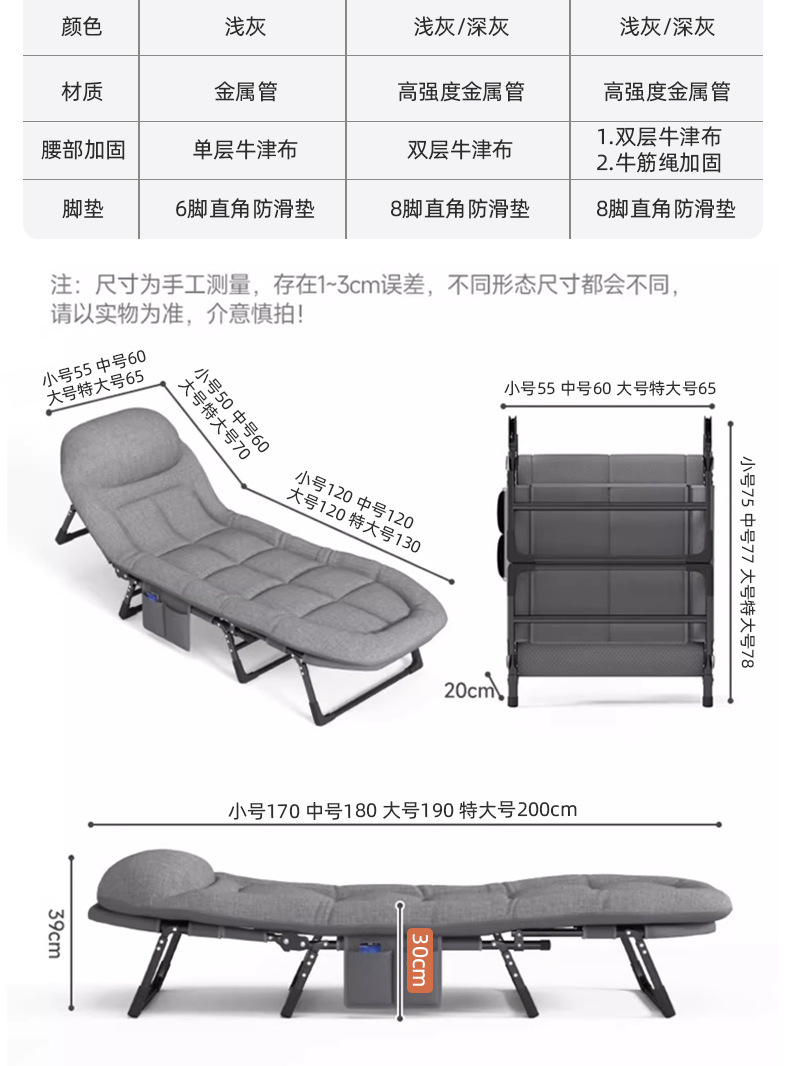점심시간 접이식 침대, 1인용 안락의자, 캠프 침대, 성인용 간이 간병용 침대, 다기능 휴대용 사무실 낮잠 침대, 공장 직송스토어 가기
