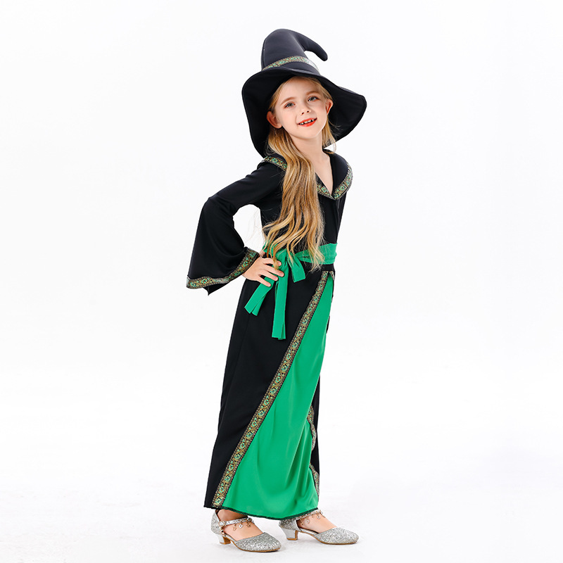 국경 간 아마존 할로윈 코스프레 마녀 롤 플레잉 어린이 녹색 뱀파이어 롱 드레스 의상스토어 가기