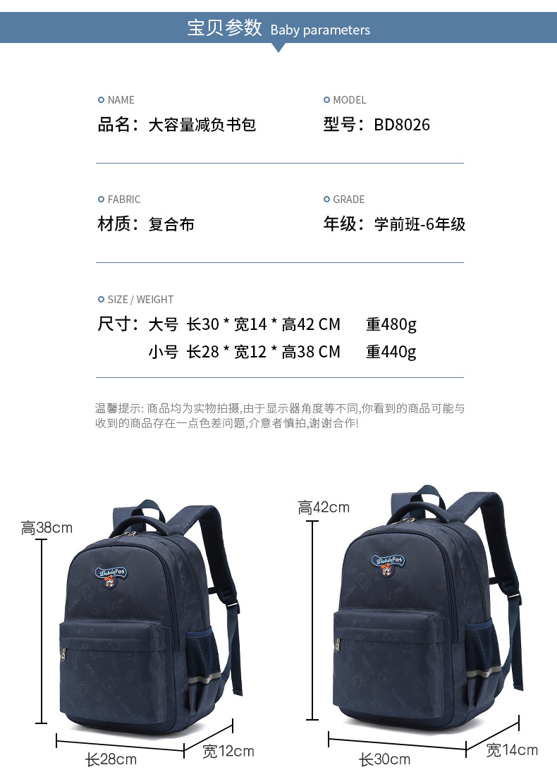 Babu Dou의 새로운 초등학생 대용량 책가방 어린이 1, 2, 3~6학년 여아의 부담을 줄여주는 경량 배낭스토어 가기