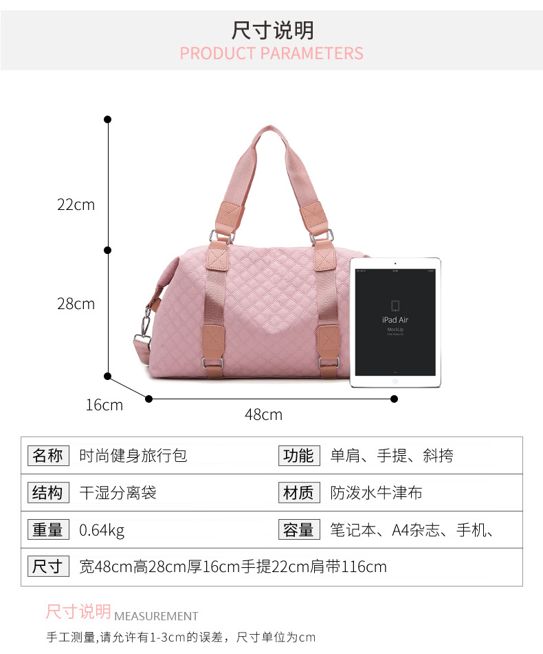 여행가방, 피트니스 가방, 트롤리 수하물 보관 가방, 옥스포드 천, 대용량, 요가용, 건식 및 습식 분리, 휴대용, 경량스토어 가기