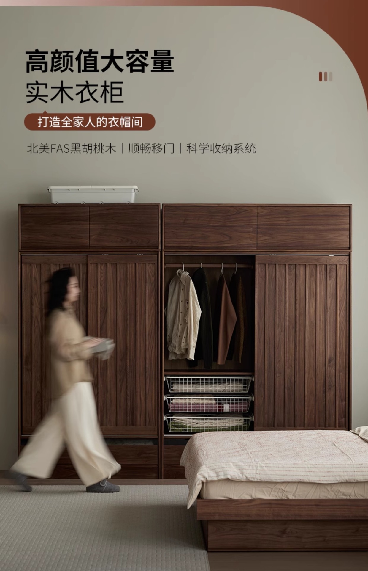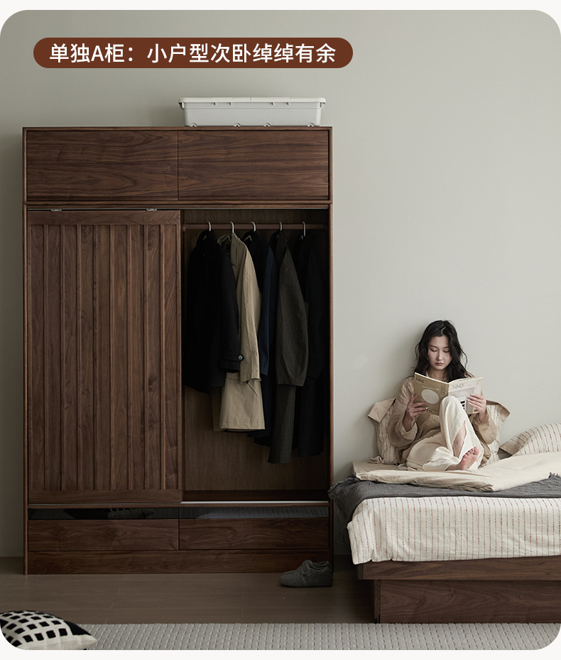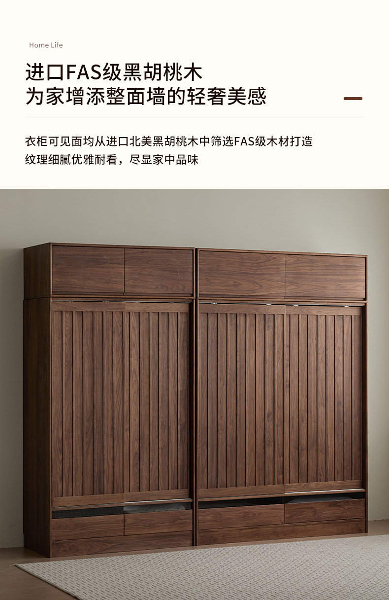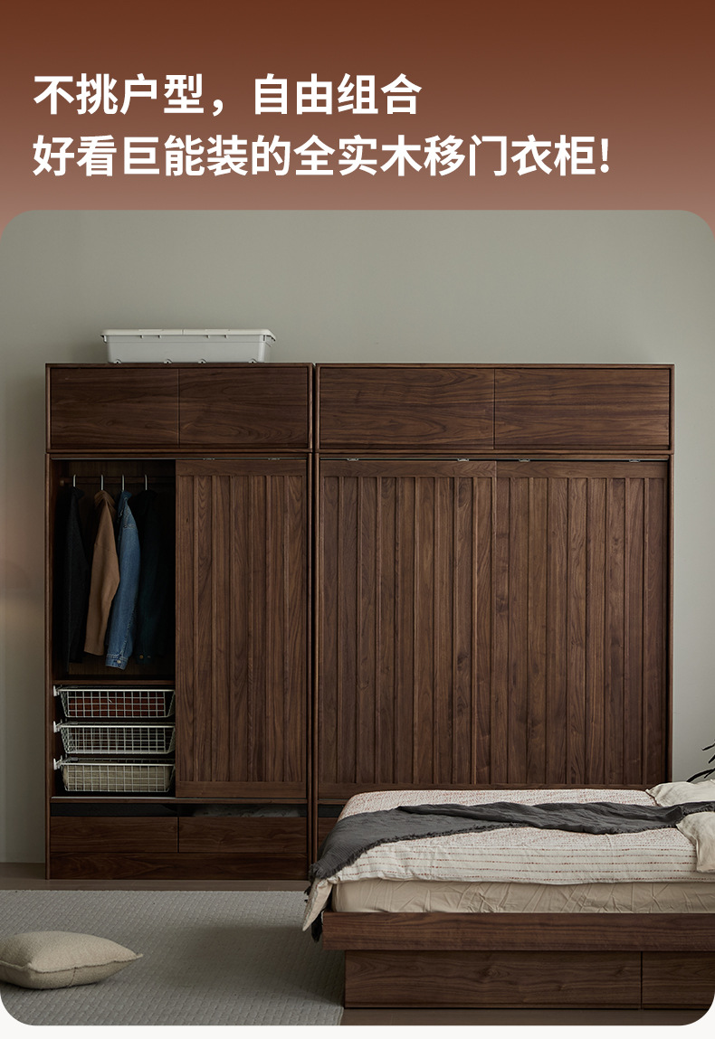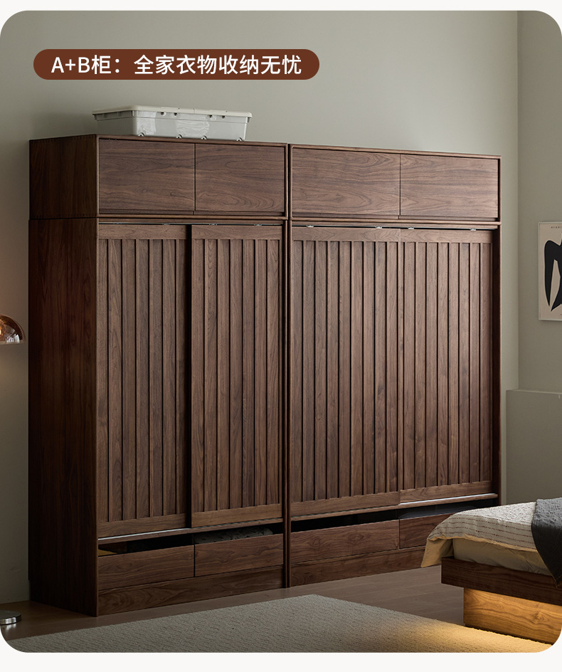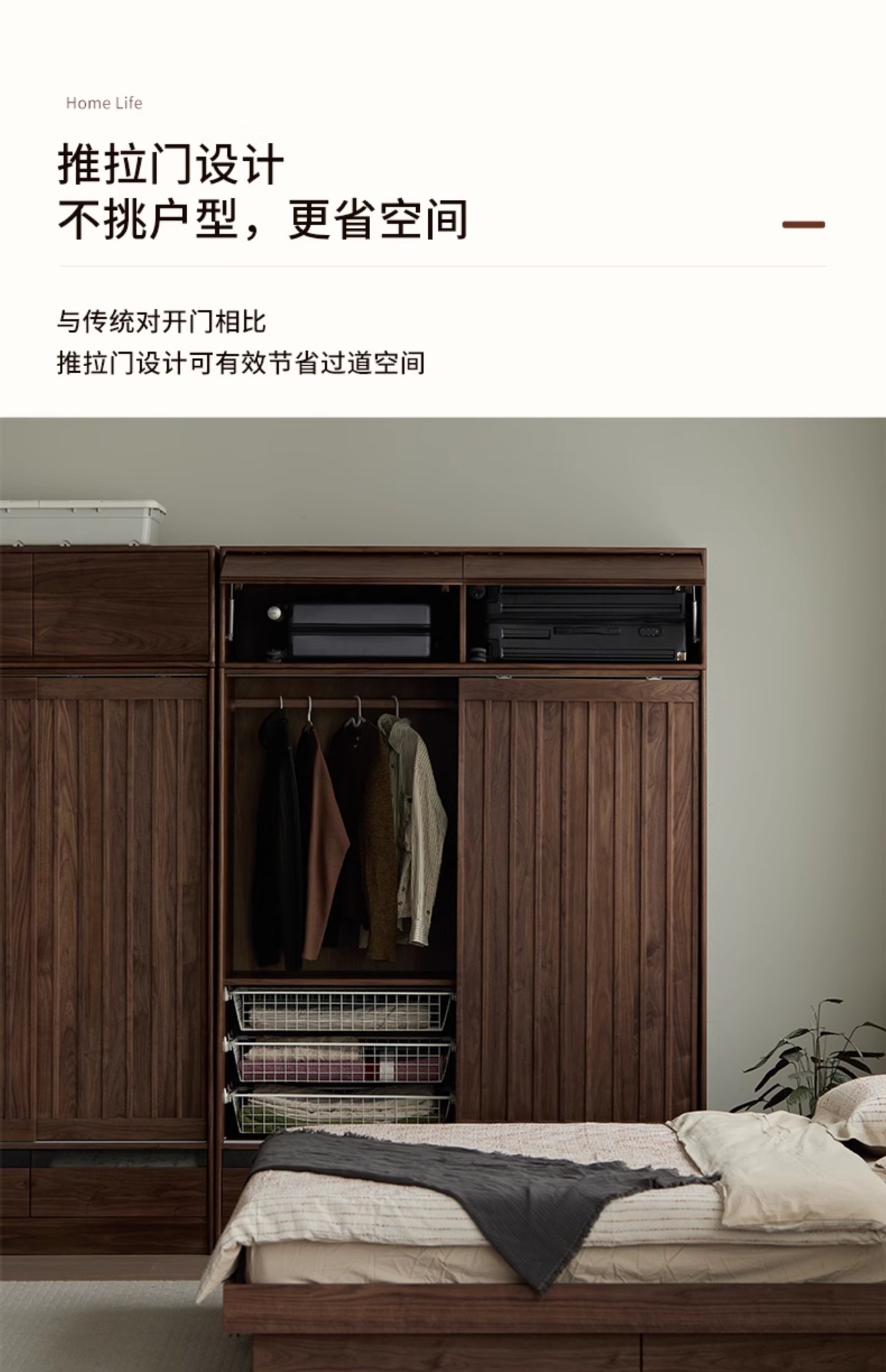 북미 검은 호두 옷장 홈 침실 슬라이딩 도어 슬라이딩 도어 스토리지 조합 북유럽 단단한 나무 옷장