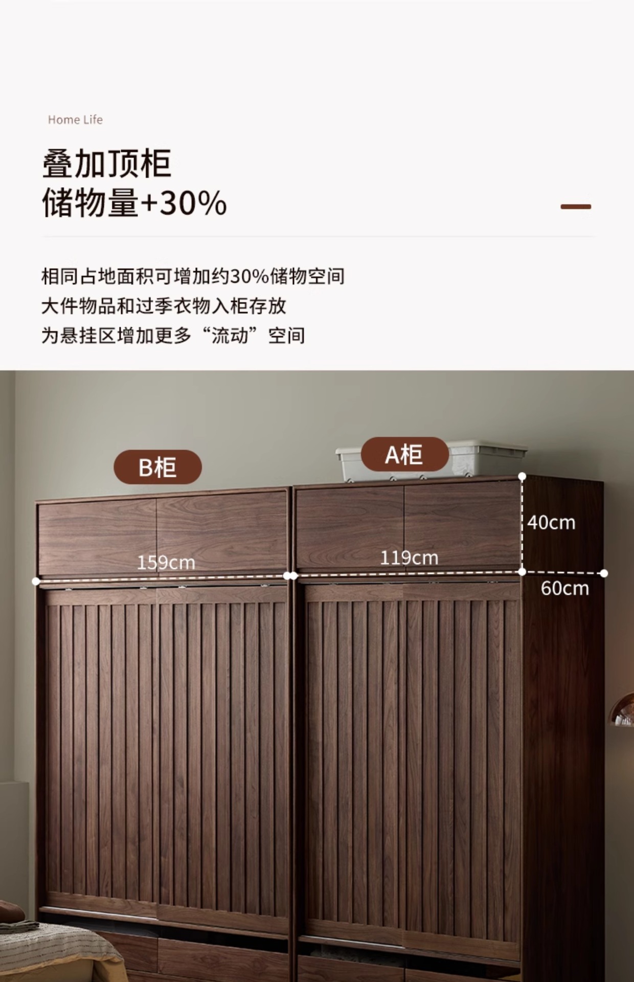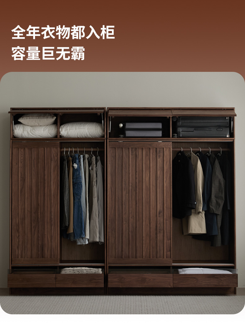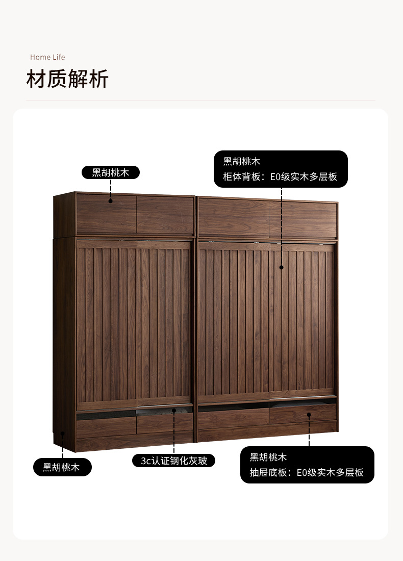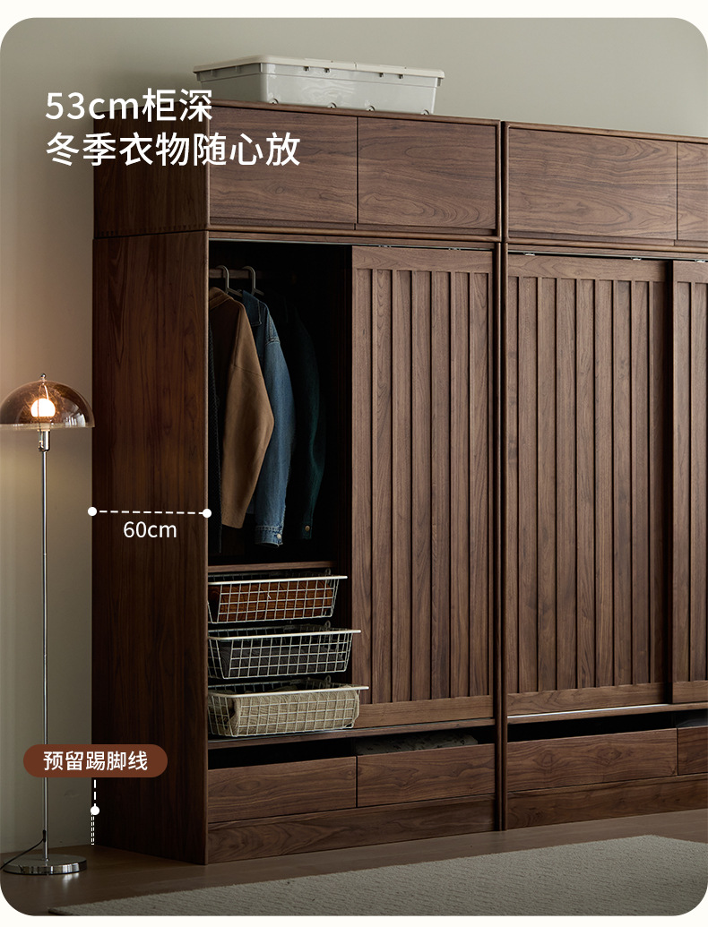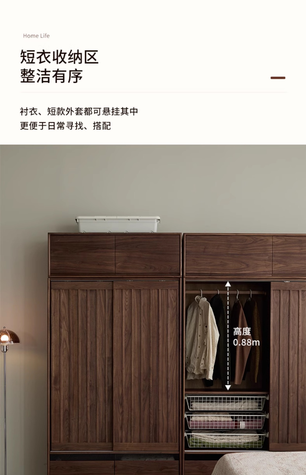북미 검은 호두 옷장 홈 침실 슬라이딩 도어 슬라이딩 도어 스토리지 조합 북유럽 단단한 나무 옷장