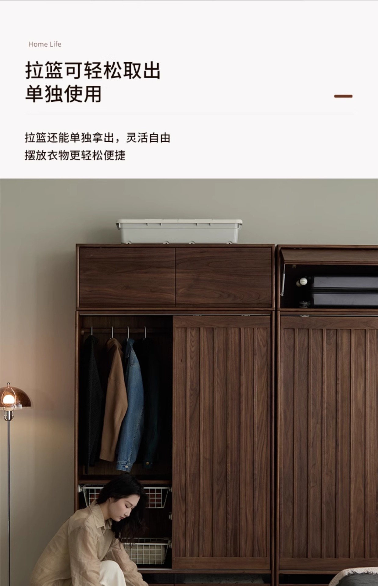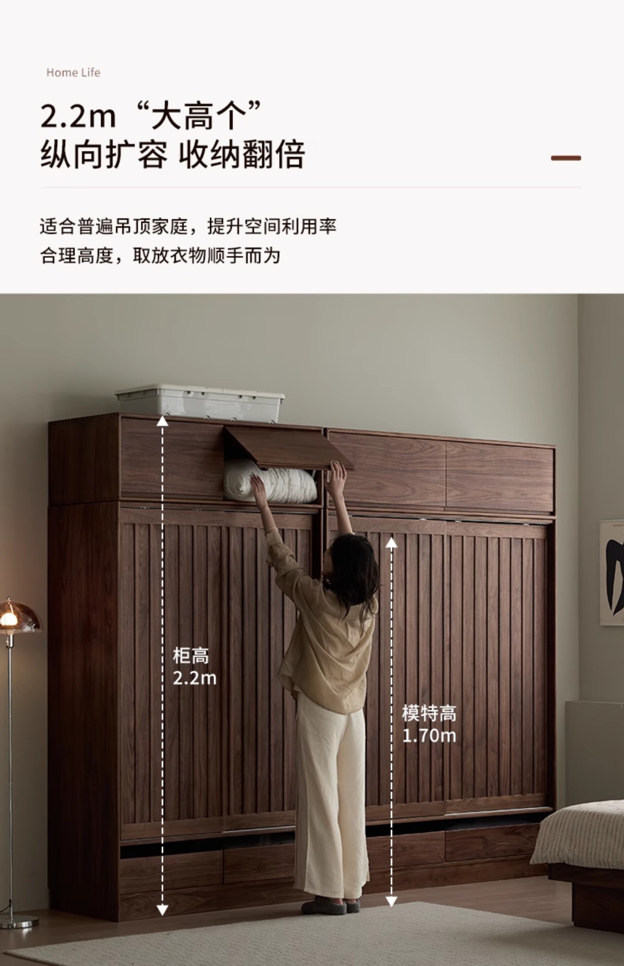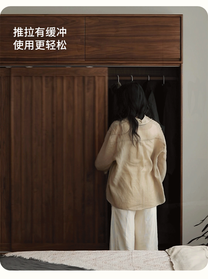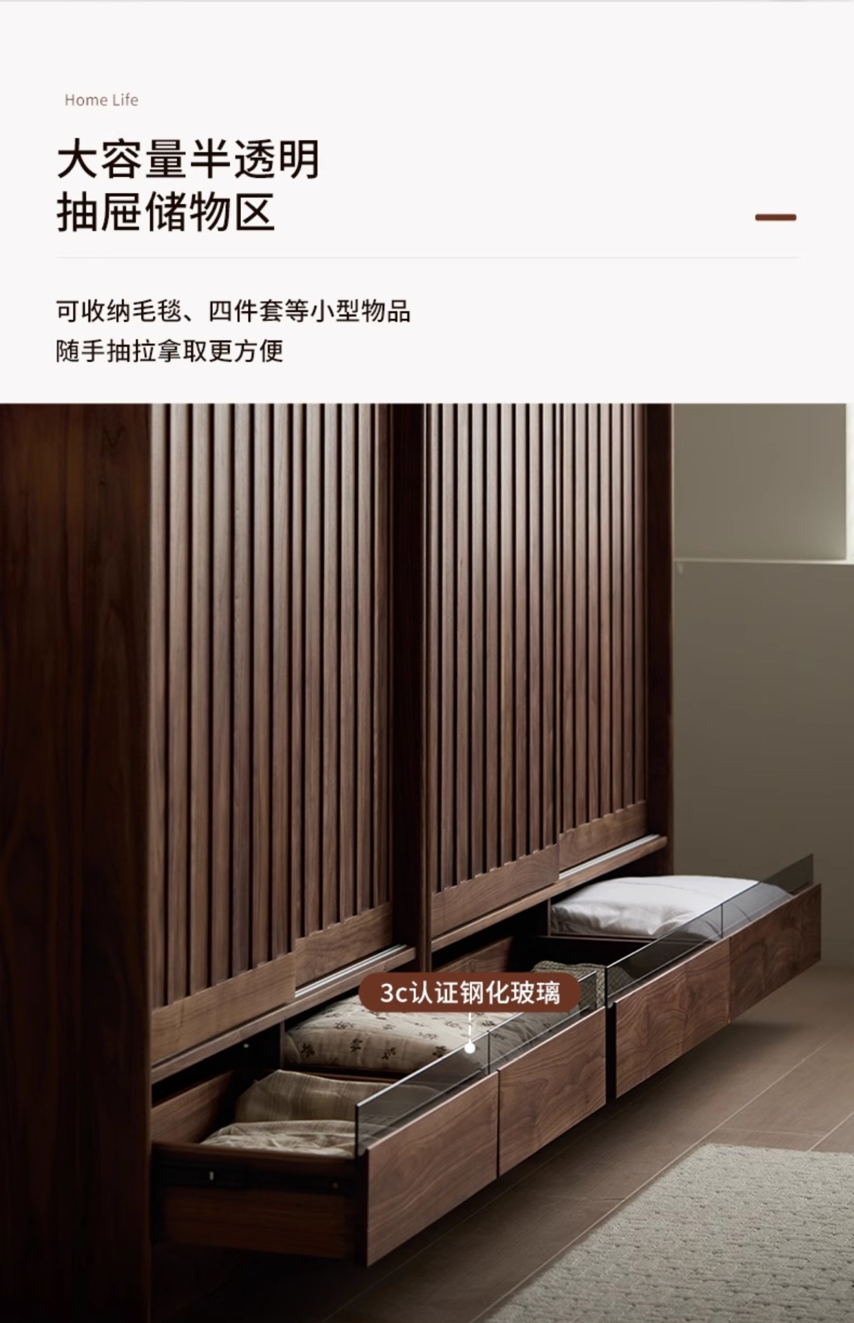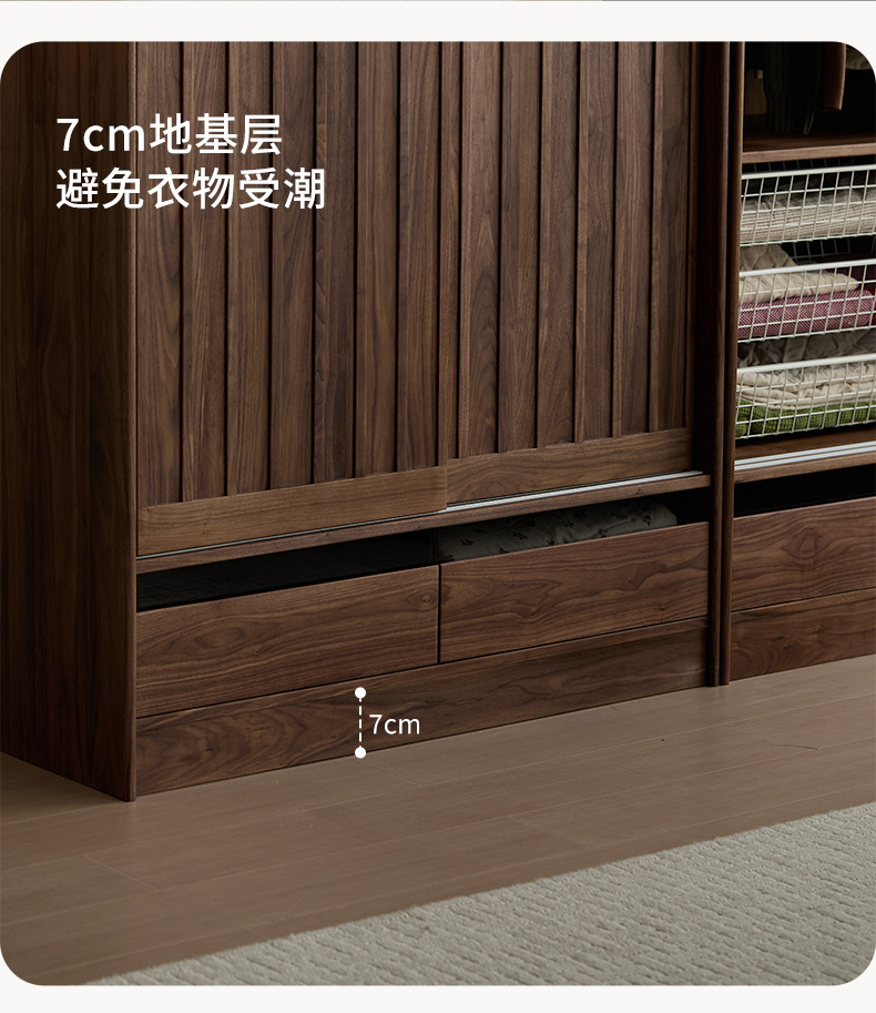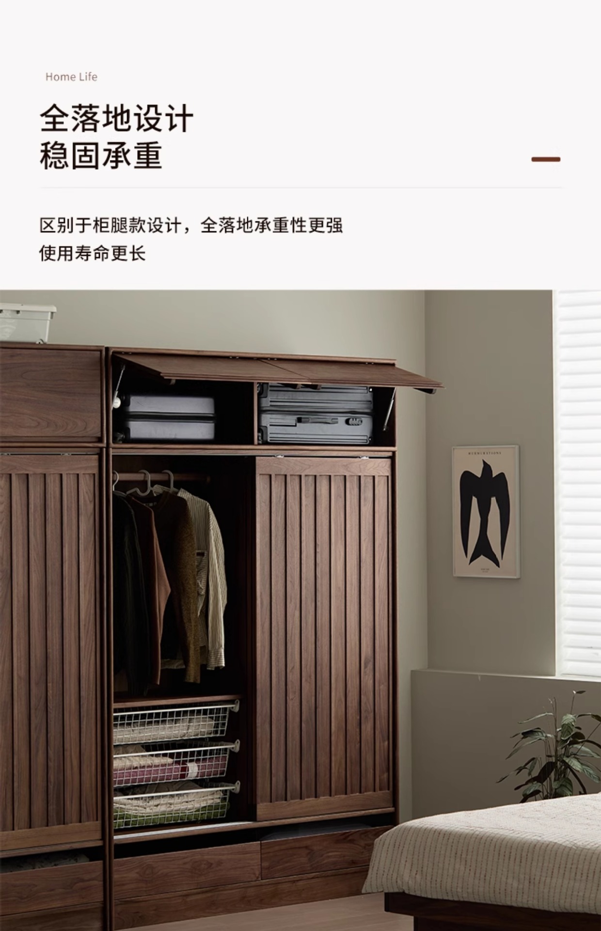 북미 검은 호두 옷장 홈 침실 슬라이딩 도어 슬라이딩 도어 스토리지 조합 북유럽 단단한 나무 옷장