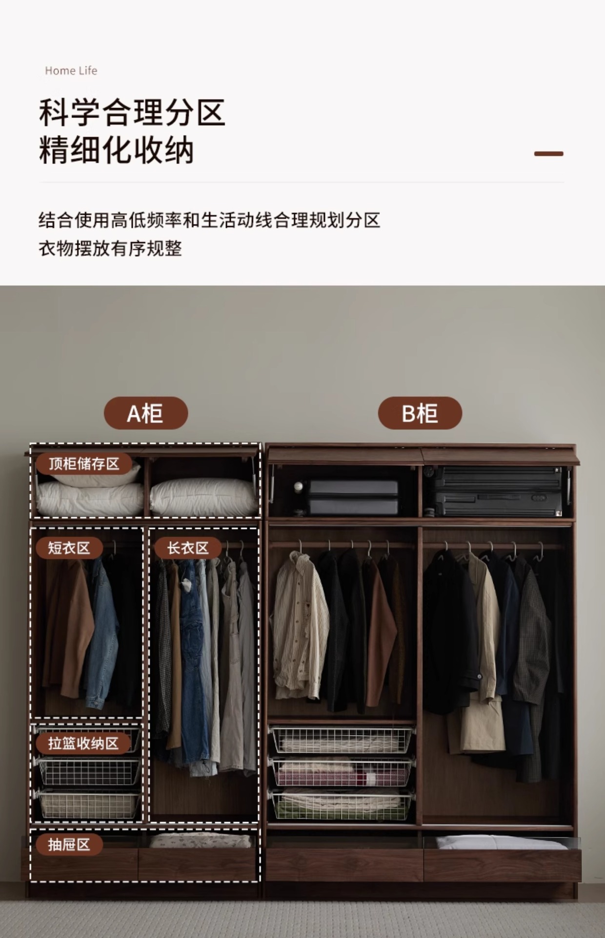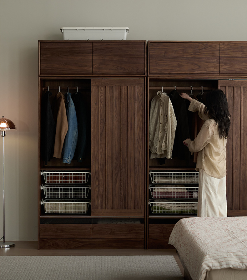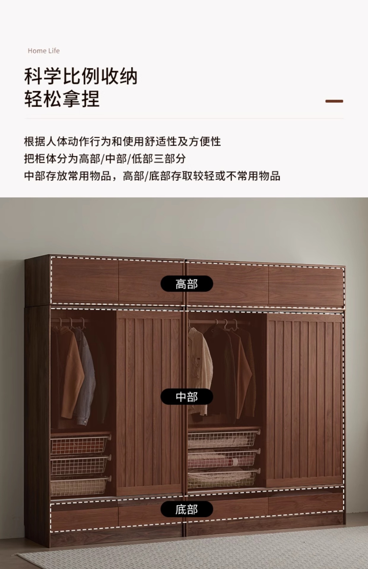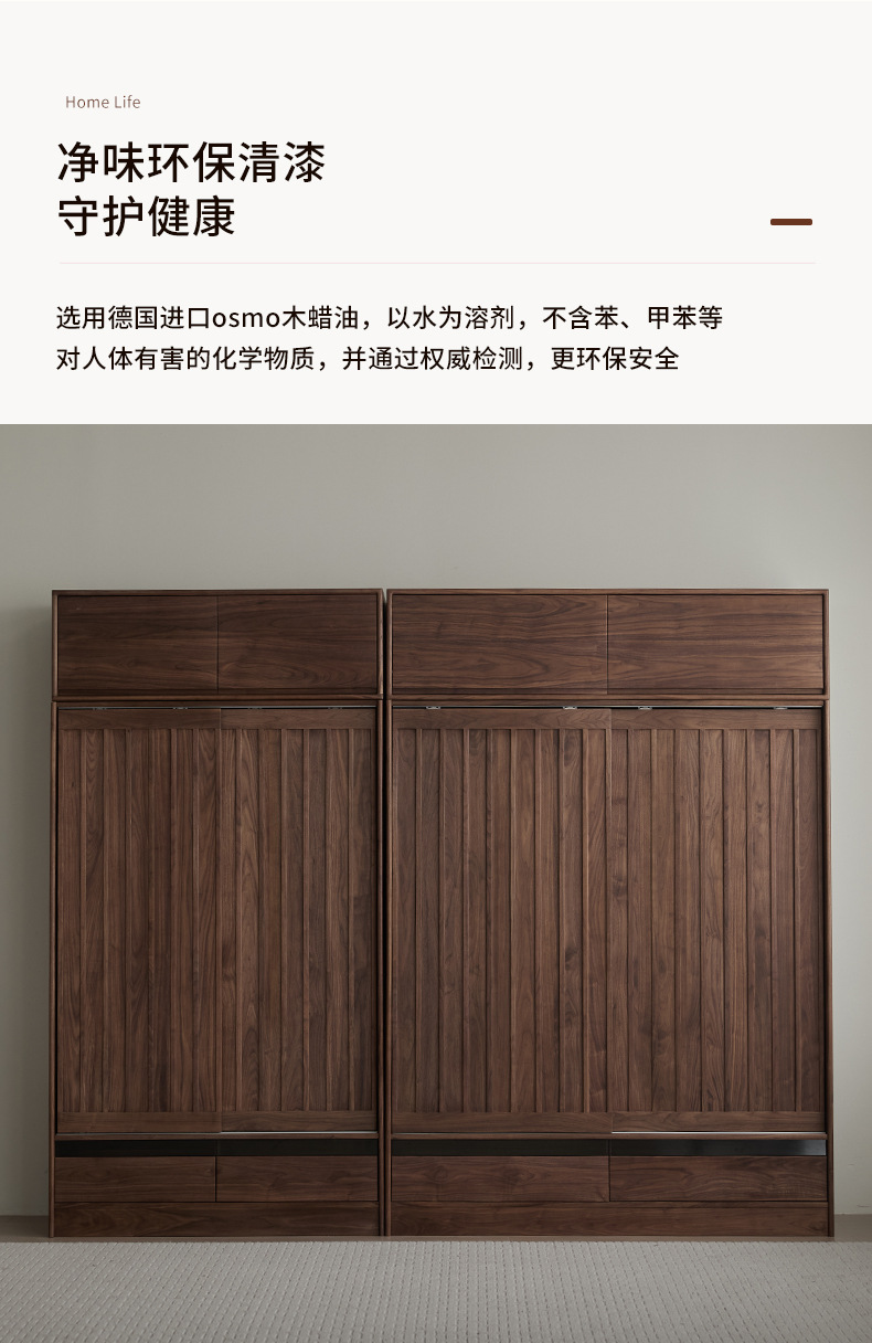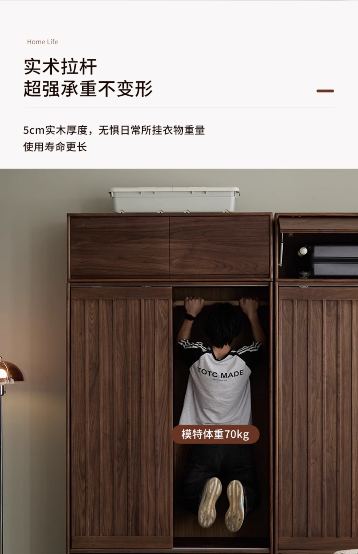 북미 검은 호두 옷장 홈 침실 슬라이딩 도어 슬라이딩 도어 스토리지 조합 북유럽 단단한 나무 옷장
