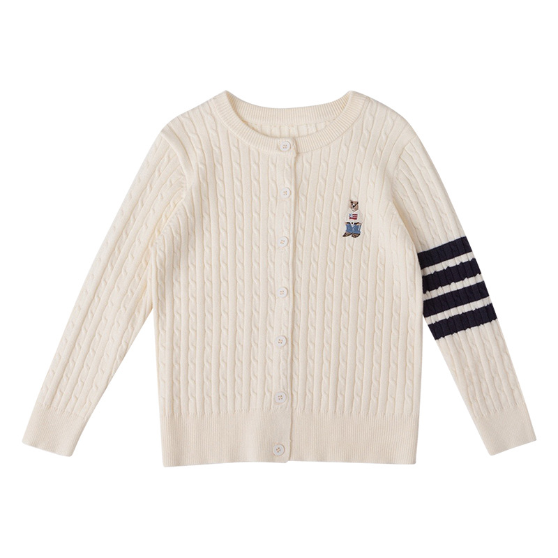 2025 가을, 겨울 소년 자수 스타일 카디건 영국 스타일 재킷 스웨터 라운드 넥 카디건 재킷