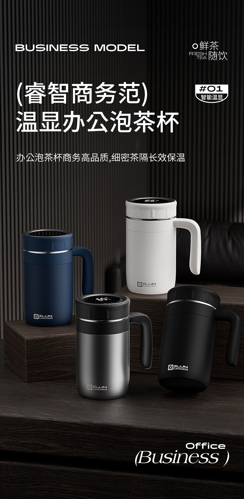 316 지능형 온도 표시 절연 컵 대용량 스테인레스 스틸 오피스 티 컵 차 물 분리 비즈니스 컵 공장 도매스토어 가기