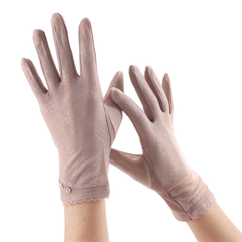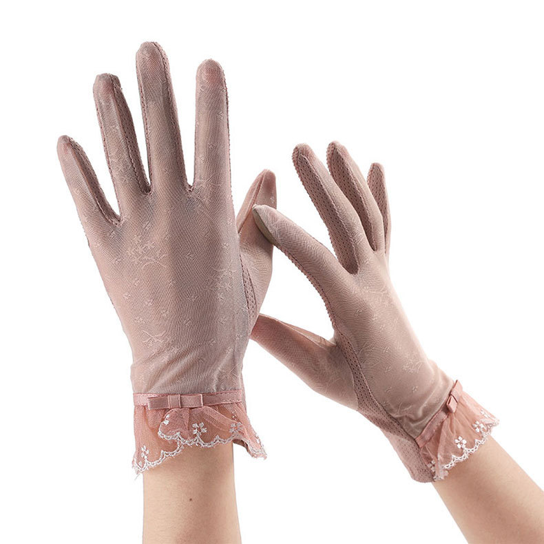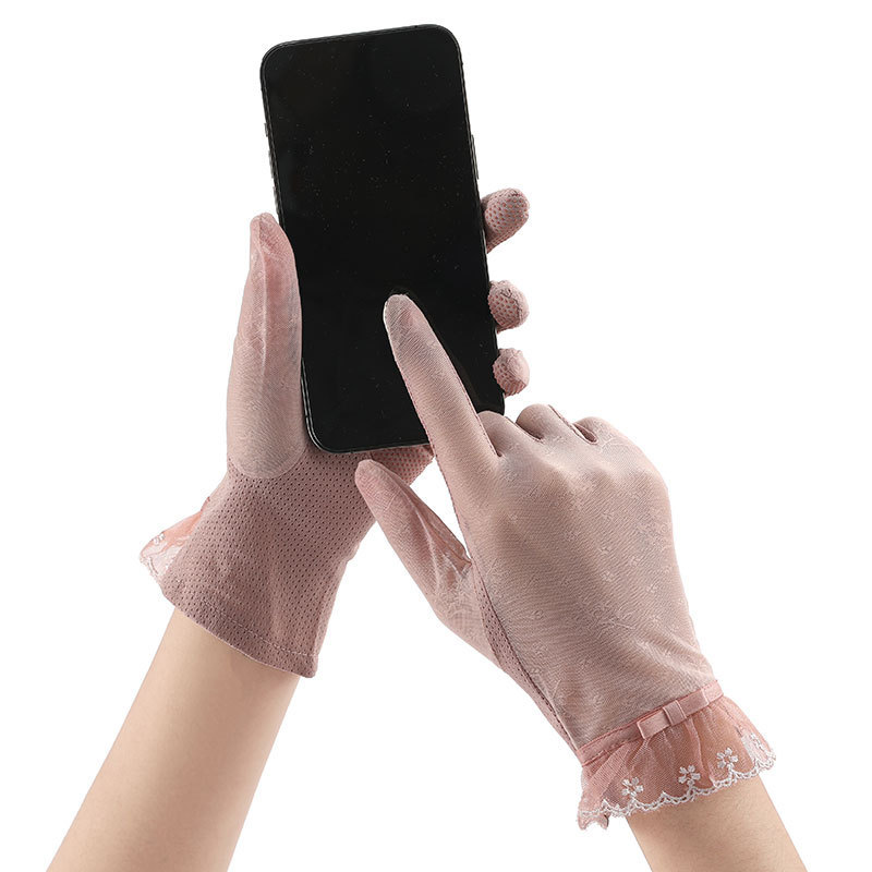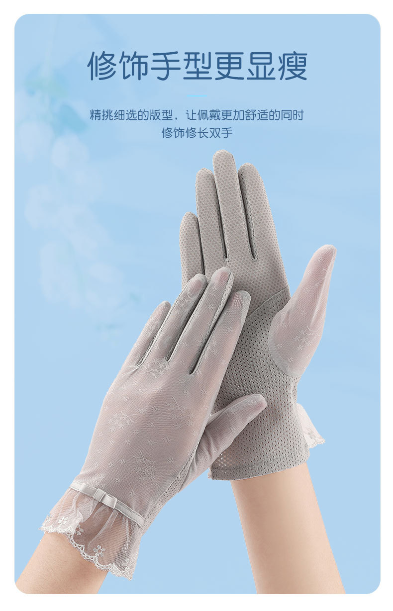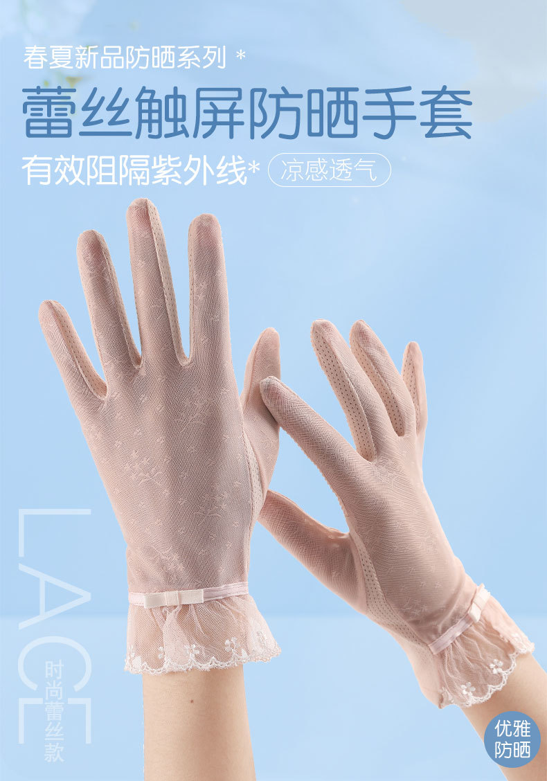 여성용 자외선 차단제 장갑 얇은 봄, 여름 레이스 터치 스크린 통기성 야외 운전 및 사이클링 차양 Xinji 장갑 LS스토어 가기