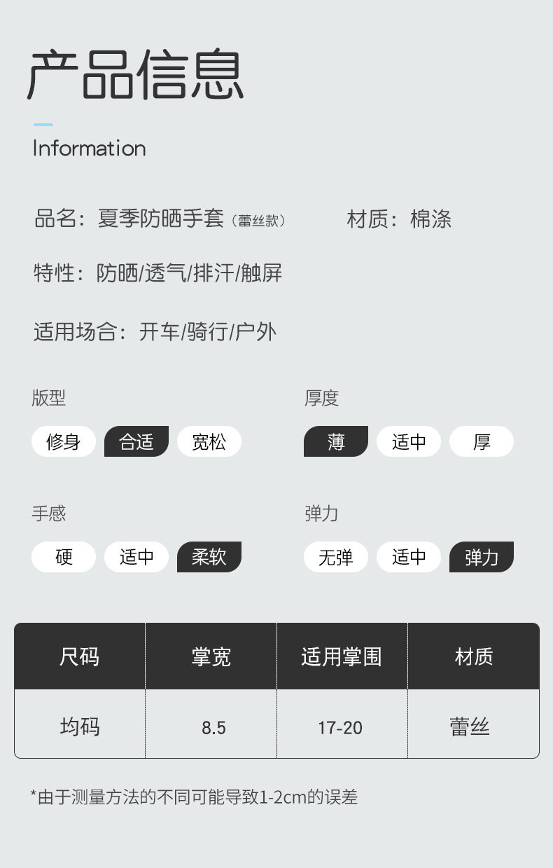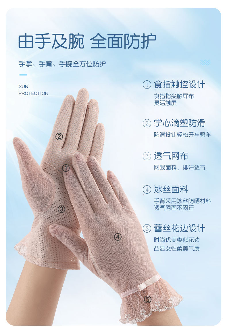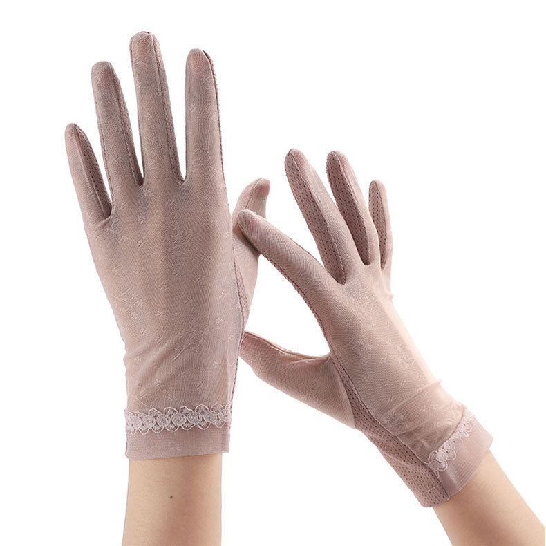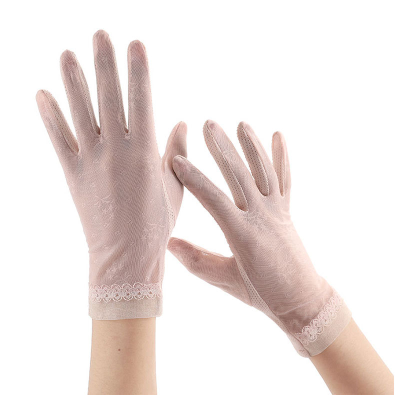 여성용 자외선 차단제 장갑 얇은 봄, 여름 레이스 터치 스크린 통기성 야외 운전 및 사이클링 차양 Xinji 장갑 LS스토어 가기