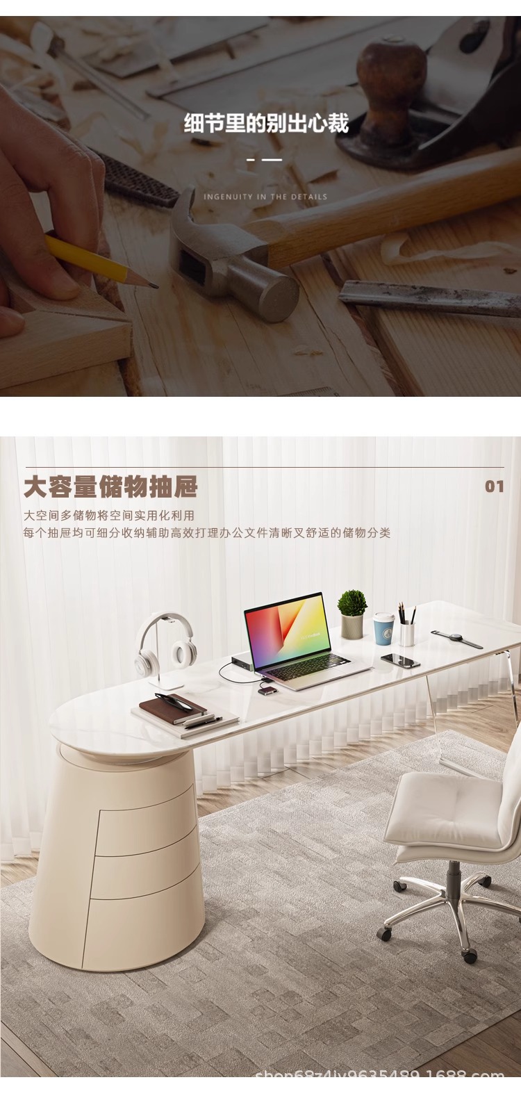 이탈리아 슬레이트 책상 현대적인 미니멀리스트 홈 하이 엔드 사무실 책상 크림 스타일 아크릴 스토리지 캐비닛 통합스토어 가기