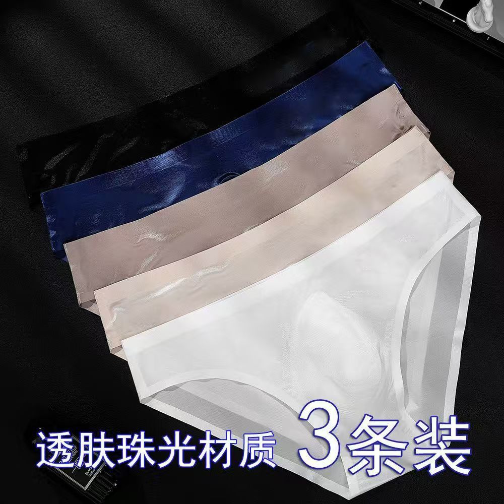 일체형 섹시한 남성용 3D 입체 속옷 진주빛 반짝이는 원단 초박형 투명 파우치 심리스 실키 삼각형스토어 가기