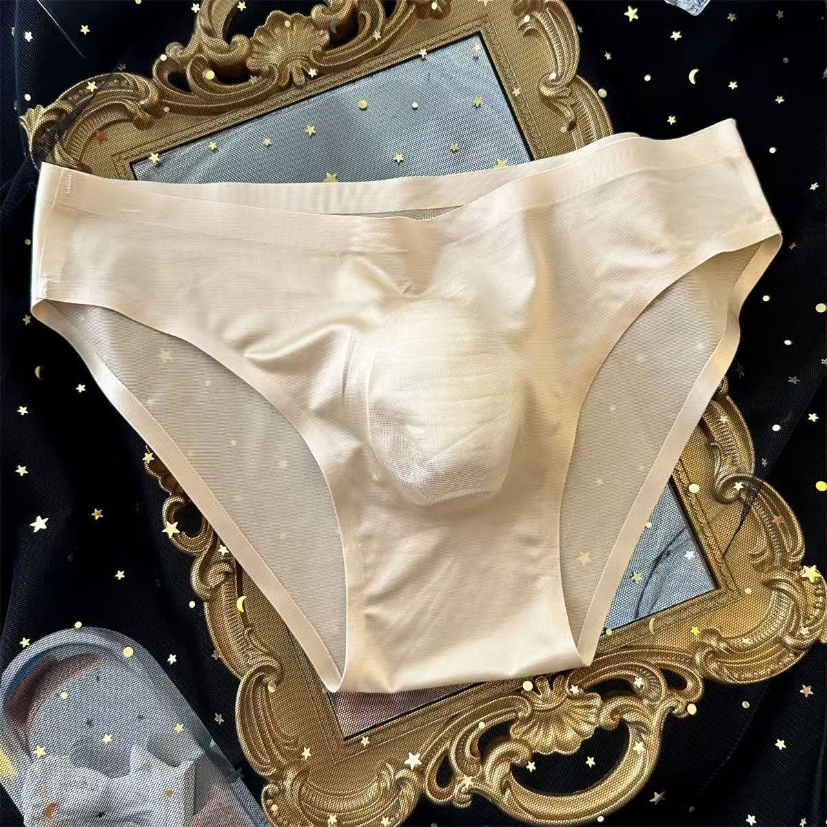 일체형 섹시한 남성용 3D 입체 속옷 진주빛 반짝이는 원단 초박형 투명 파우치 심리스 실키 삼각형