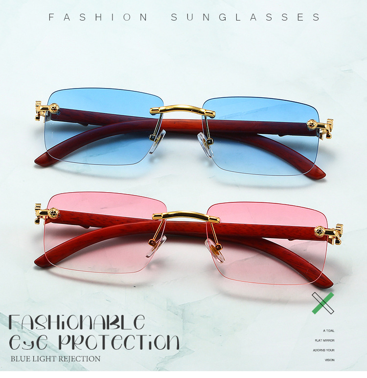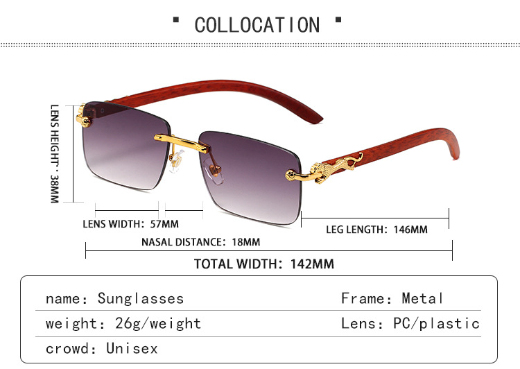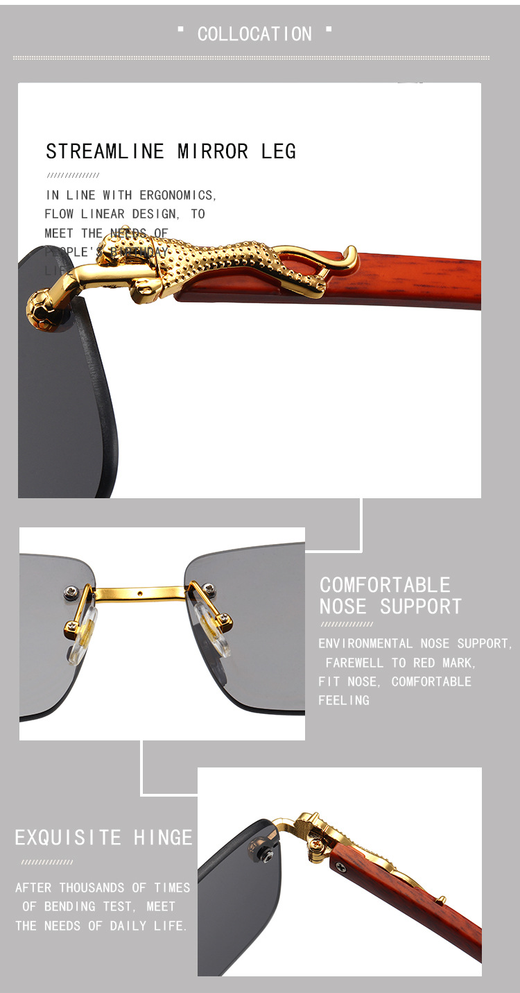 남성용 새로운 패셔너블한 프레임 선글라스, 여성용 맞춤형 레오파드 우드 그레인 안경다리 사각 프레임 선글라스, 트렌디한 크로스보더 도매스토어 가기
