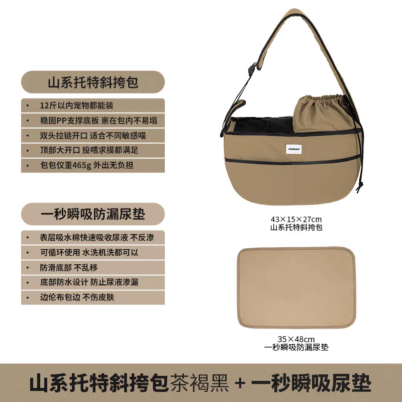 • 마운틴 토트 크로스백 티 브라운 블랙 + 기저귀 교환 패드