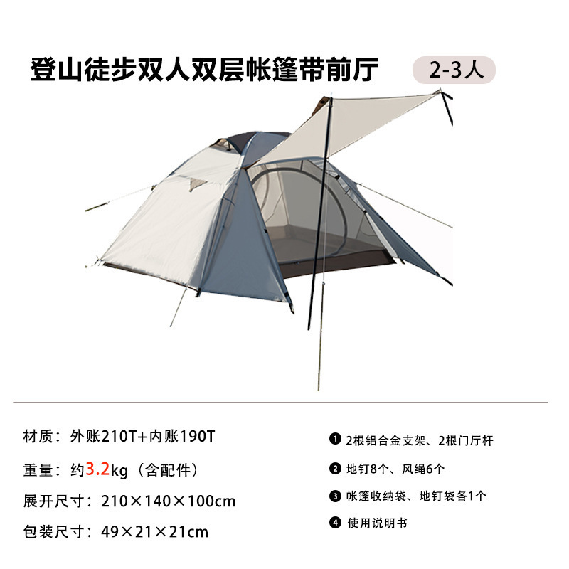 • 현관이 있는 2인용 경량 하이킹 텐트(2~3인용 210*140*100cm)