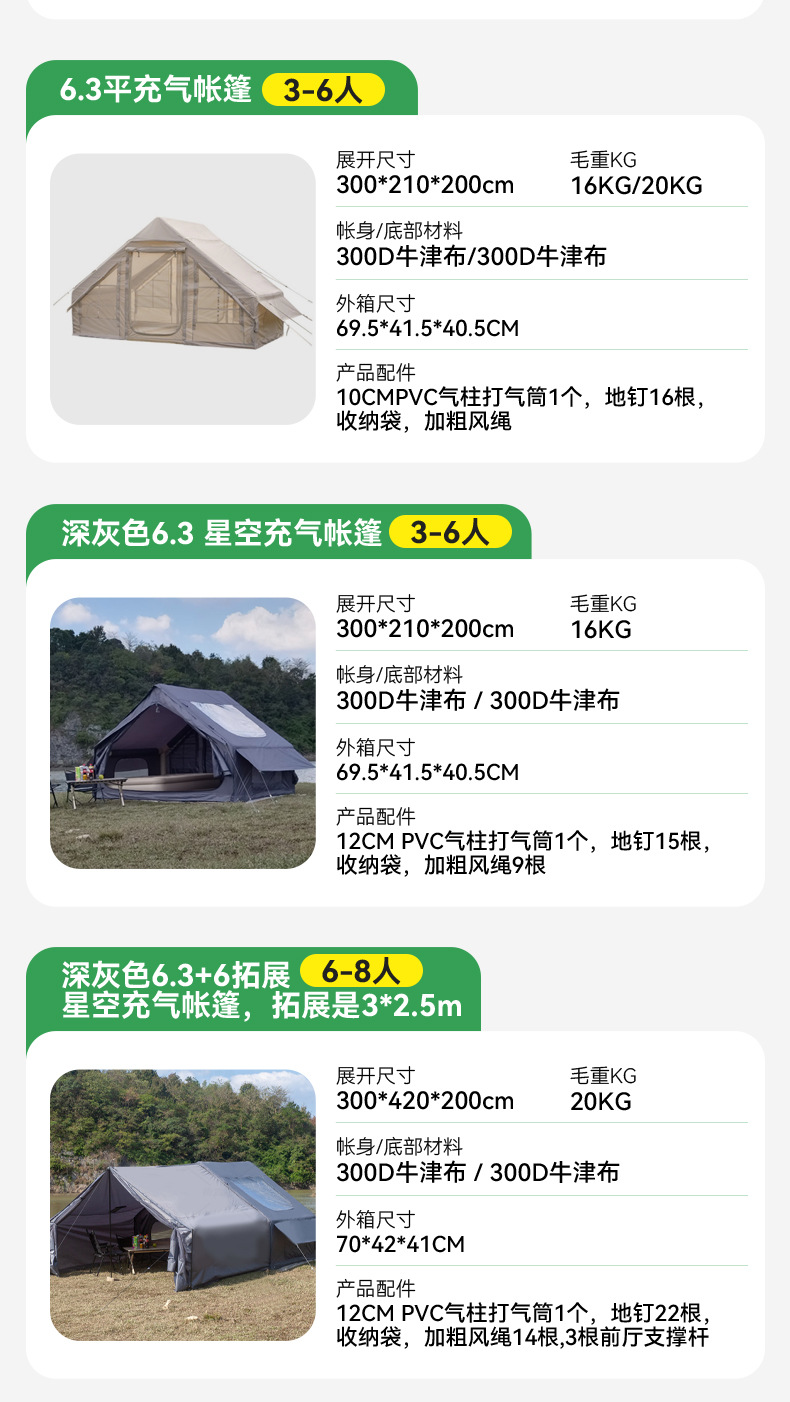 • 초대형 채광창 굴뚝 개구부가 있는 팽창식 6.3 옥스포드 천 이중 문(3-6인 300*210*200cm)