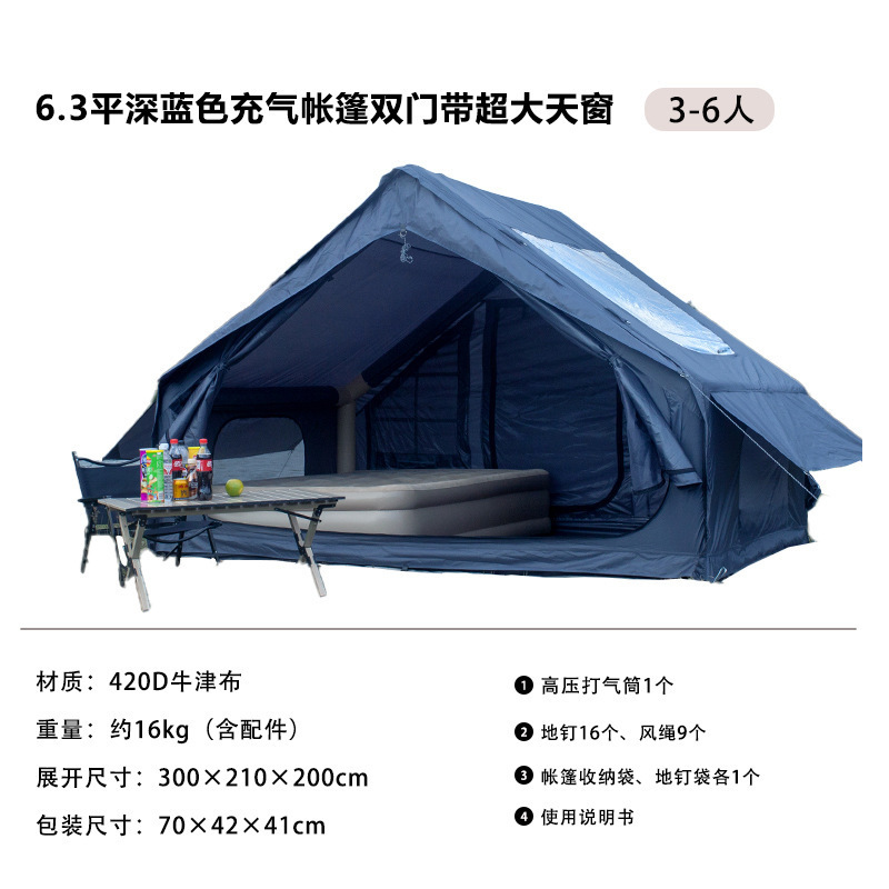 • 채광창이 있는 팽창식 6.3 평면 진한 파란색 옥스포드 천 이중 문(3-6인 300*210*200cm)