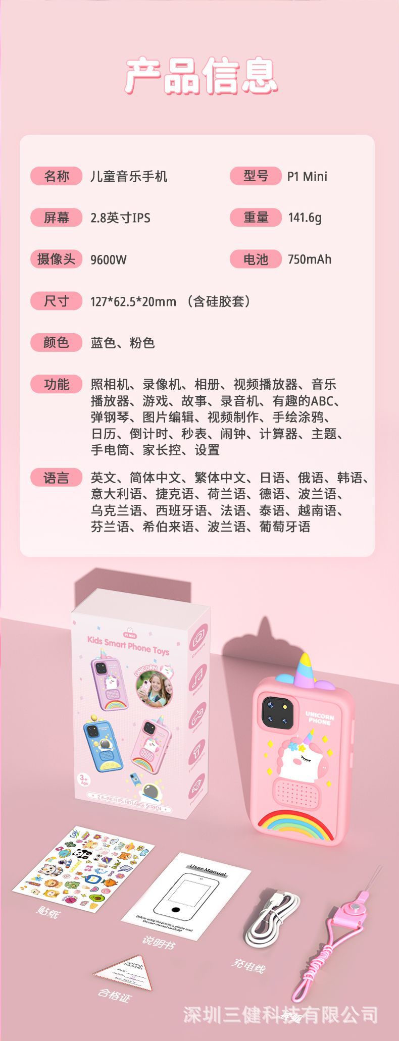 P1 미니 어린이 사진 전화 음악 이야기 비디오 피아노 그리기 어린이 전화