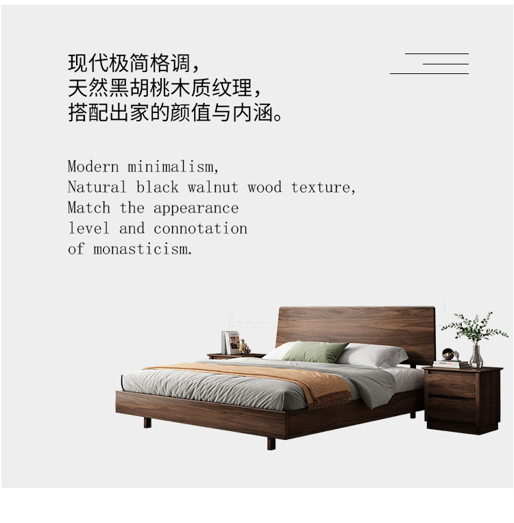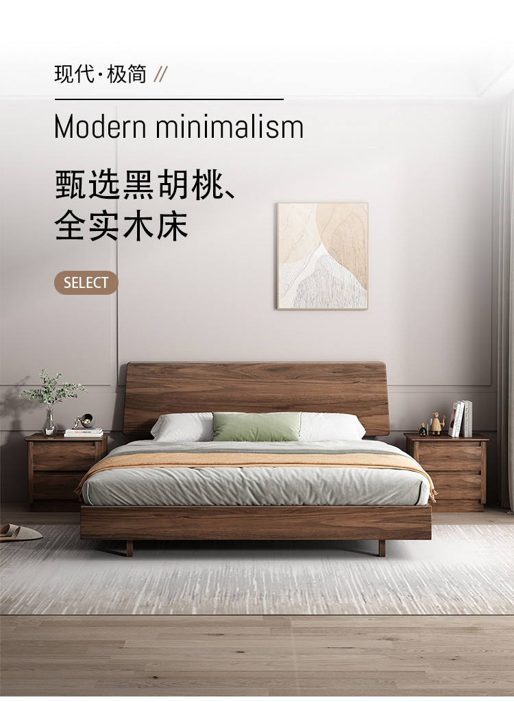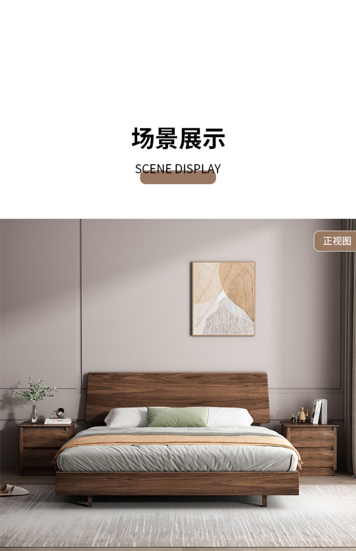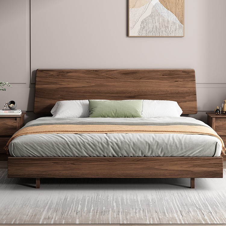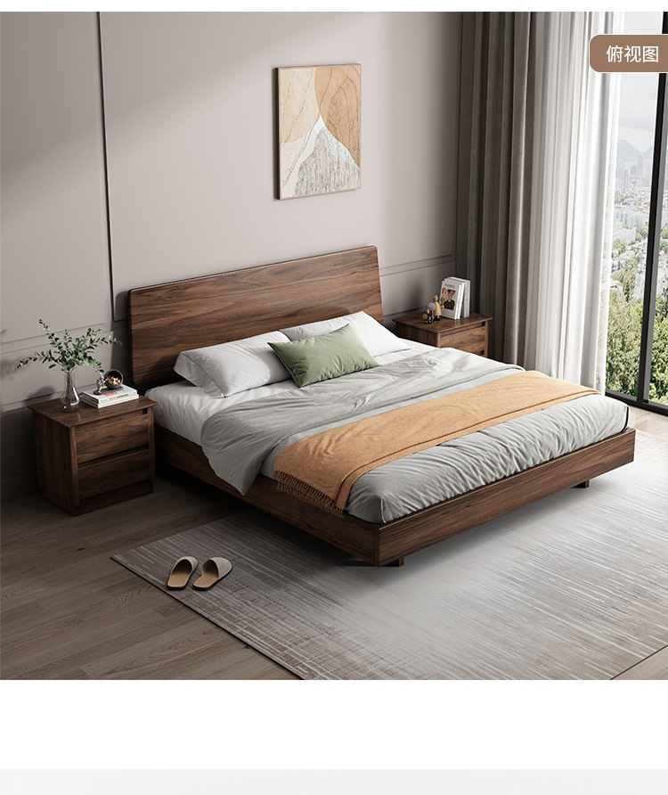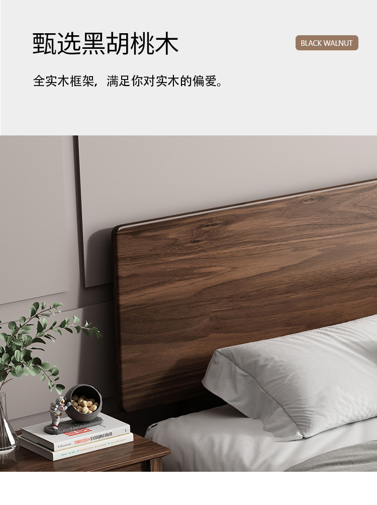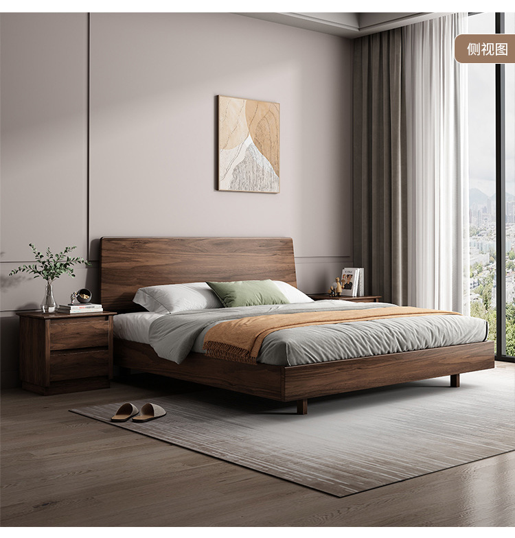 가정용 단단한 나무 침대 검은 호두 현대 간단한 나무 침대 더블 전체 단단한 나무 침대 빌라 웨딩 침대 마스터 침실 대형 침대스토어 가기