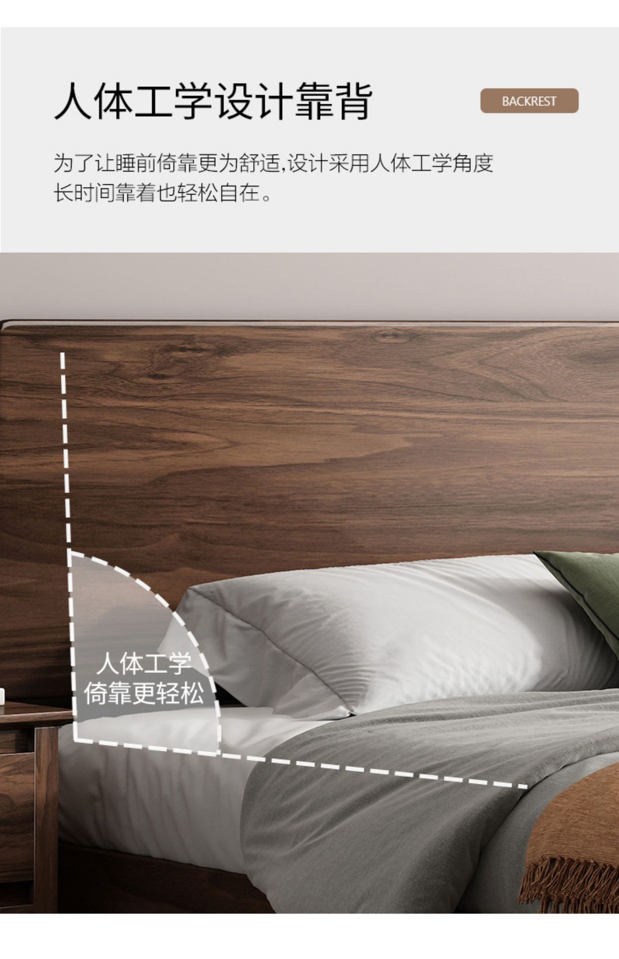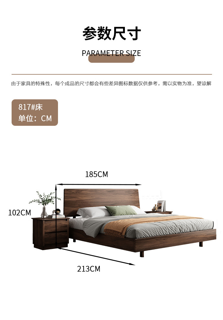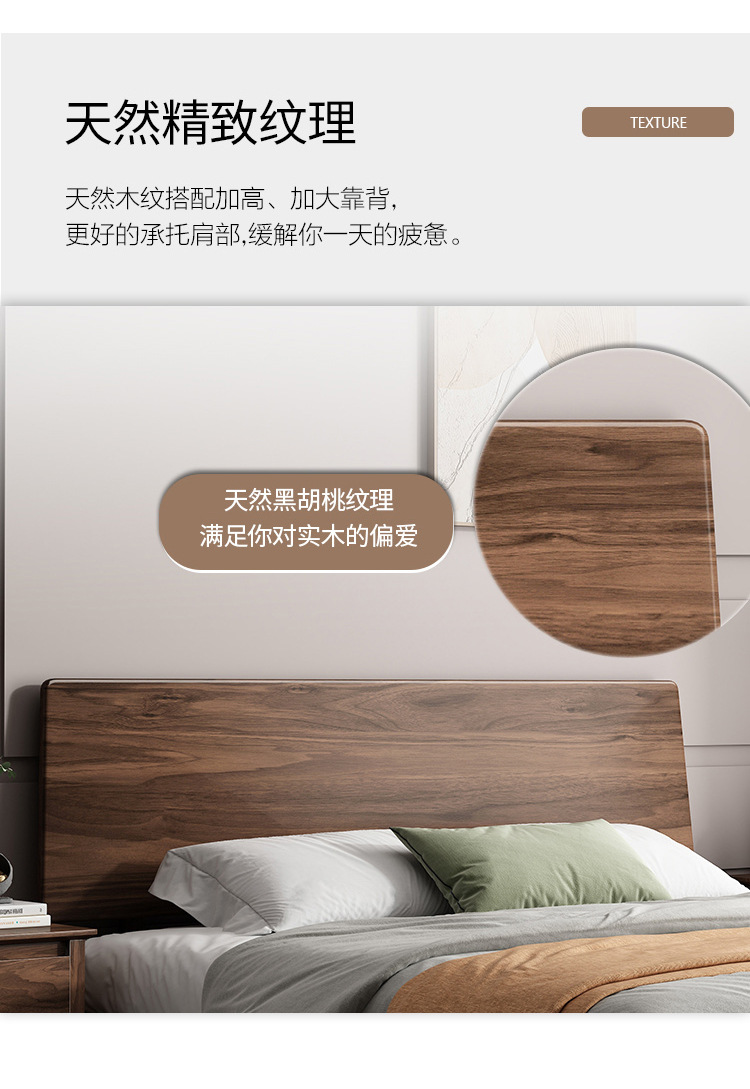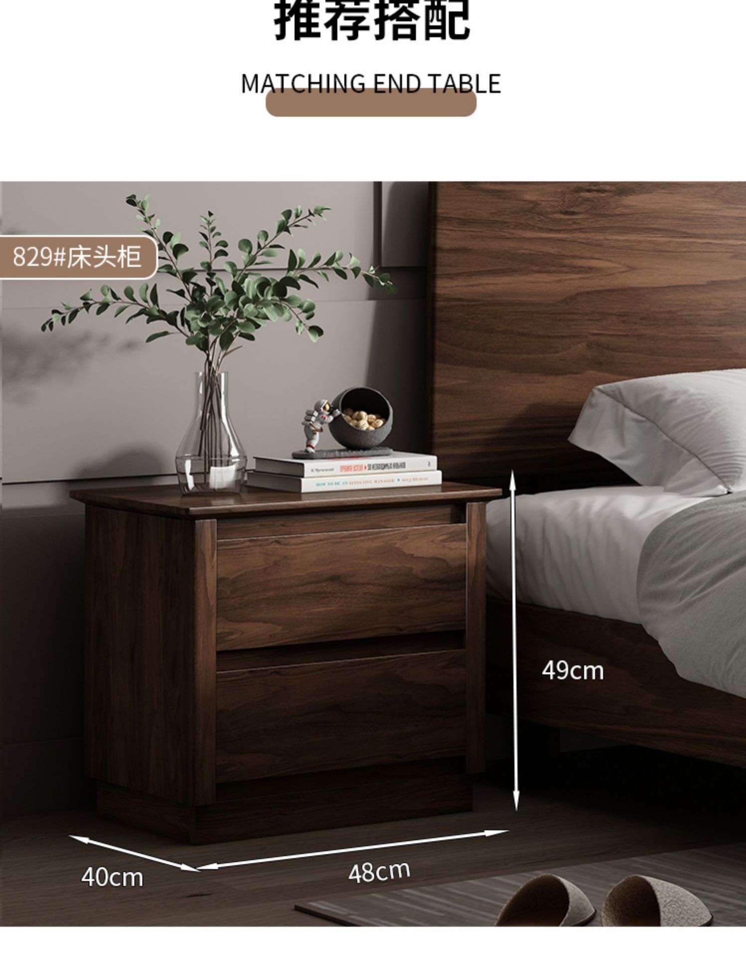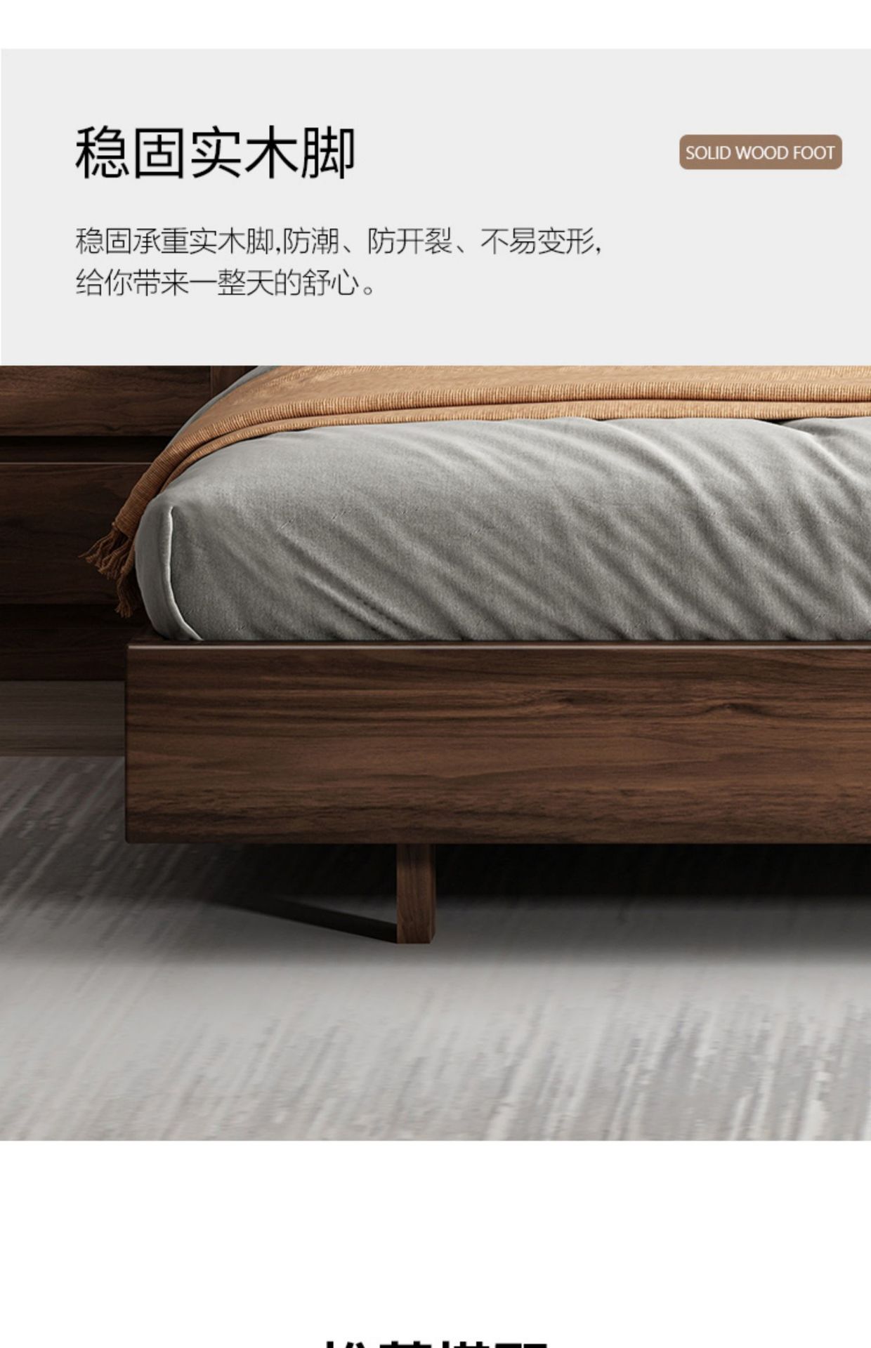 가정용 단단한 나무 침대 검은 호두 현대 간단한 나무 침대 더블 전체 단단한 나무 침대 빌라 웨딩 침대 마스터 침실 대형 침대스토어 가기