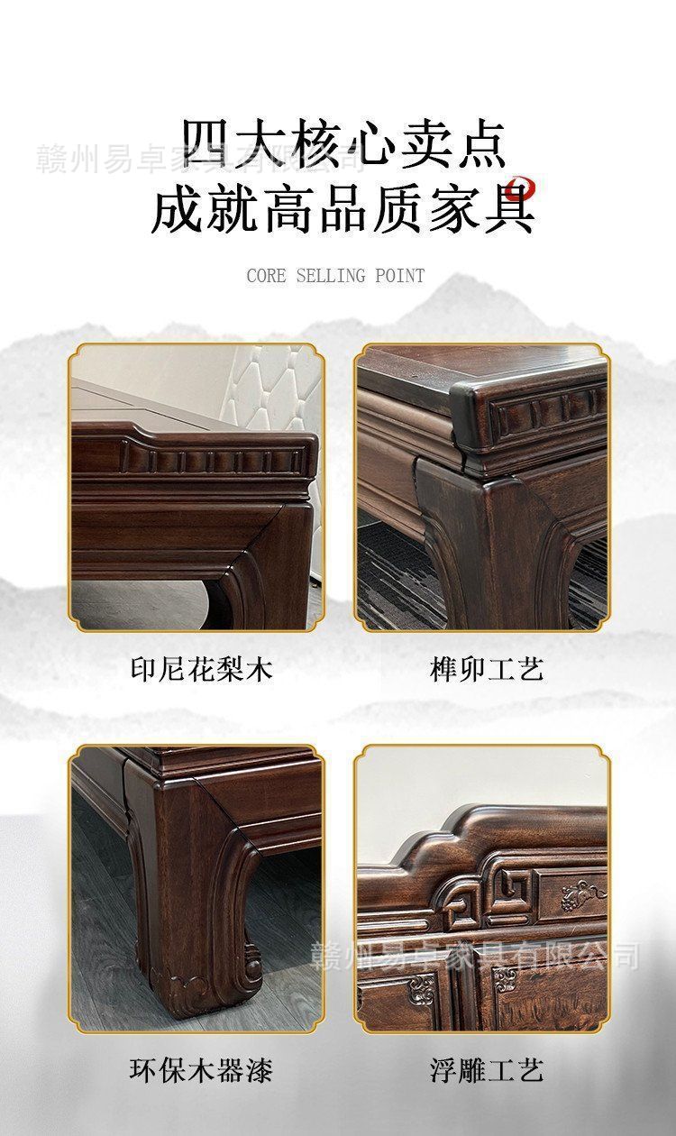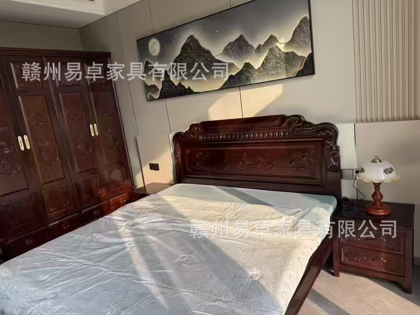 • Guose Tianxiang (호랑이 발 + 구각형 격자) 남미 자단 원목 침대 + 침대 옆 탁자 2개