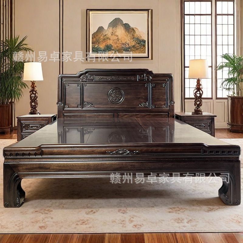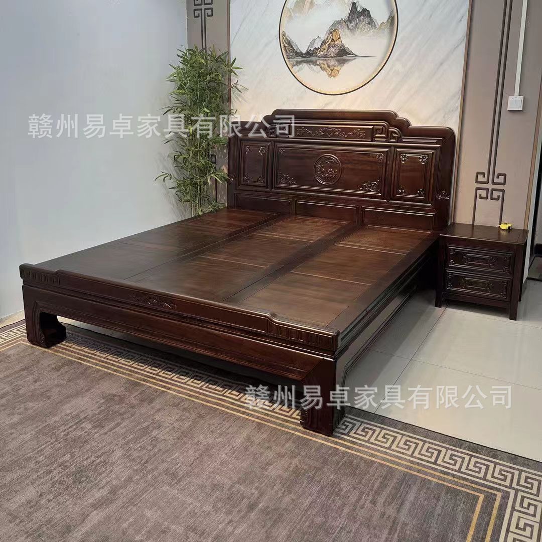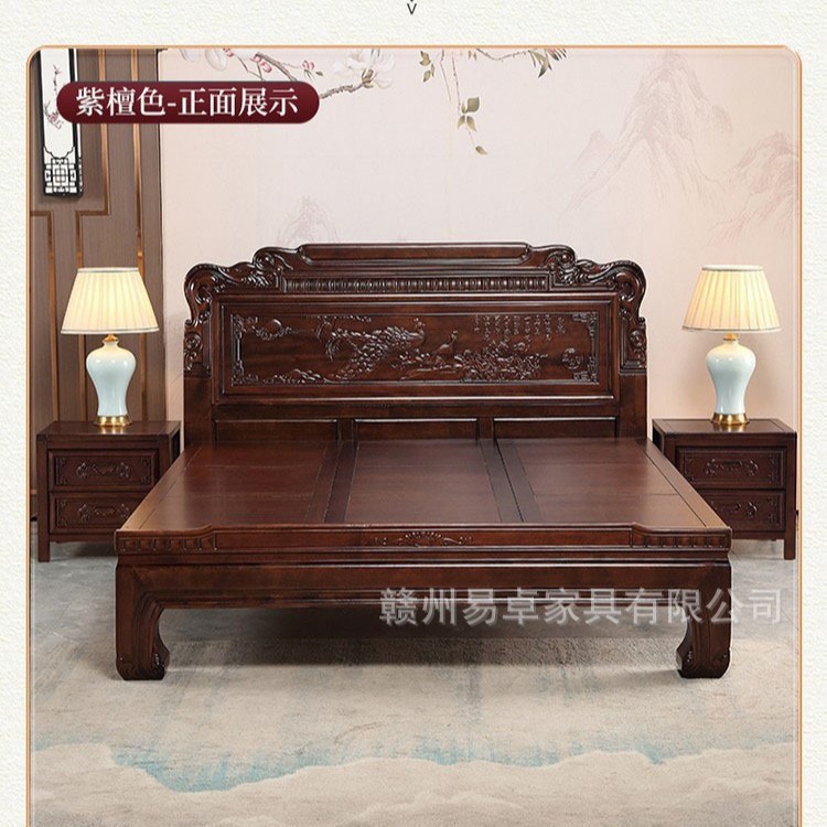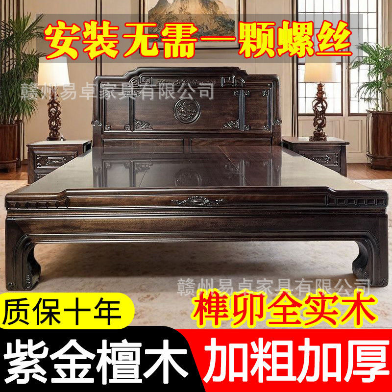 보라색 금 백단 호랑이 발 대형 침대 단단한 나무 침대 명나라와 청나라 고전 중국 스타일 1.8 더블 침대 조각된 모 끈 조각 골동품 웨딩 침대스토어 가기