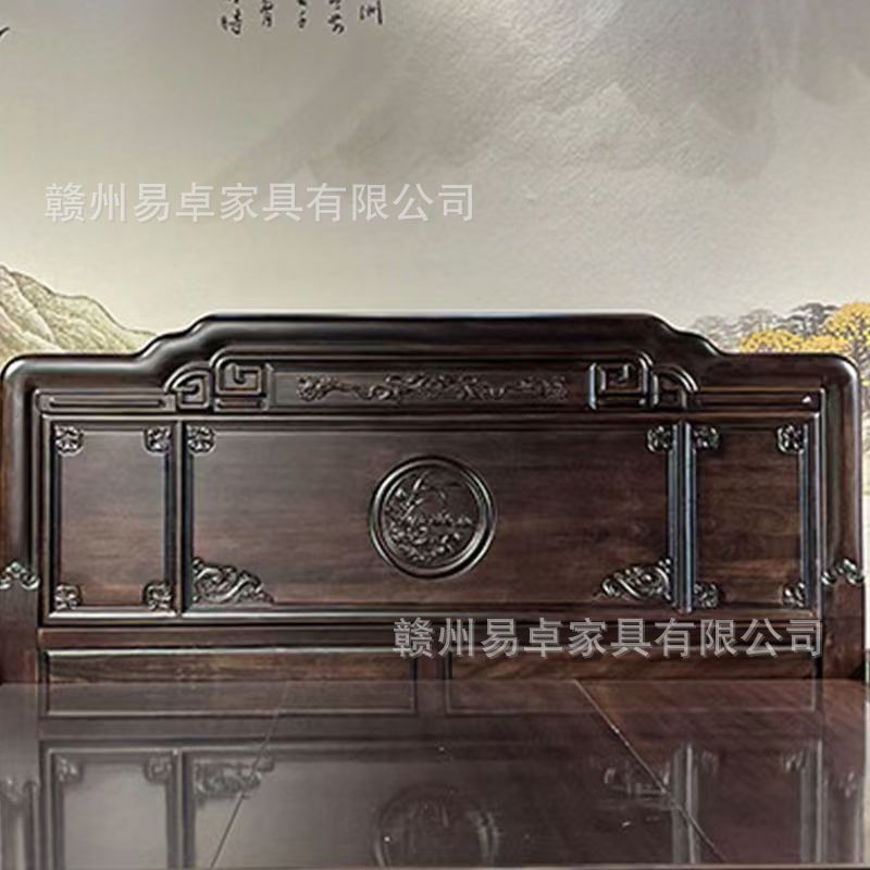• 공작(호랑이 발 + 구각형 격자) 남미 자단 원목 침대 + 침대 옆 탁자 1개