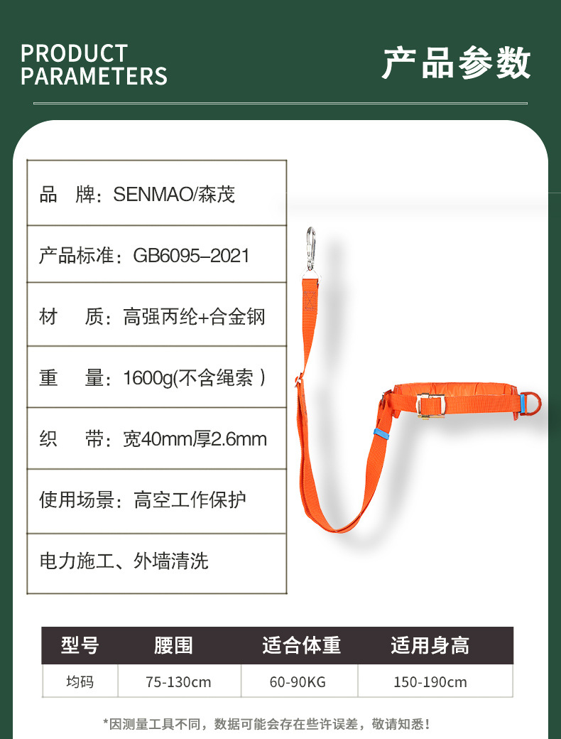 단일 허리 유형의 야외 작업 국제 등반 와이어 설치 폴리프로필렌 전기 낙하 방지 벨트스토어 가기