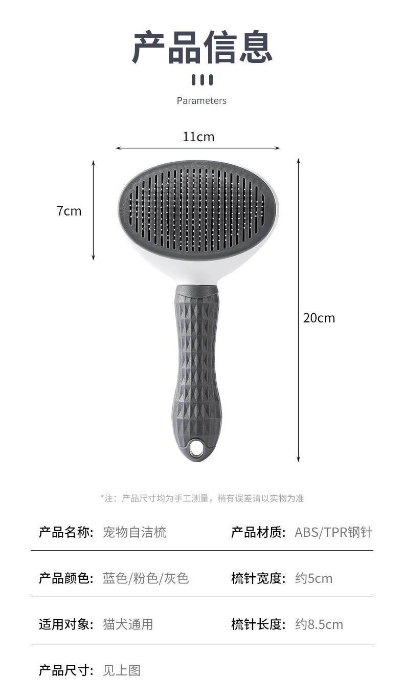 • 애완동물 빗 - 그레이 - 1개(가방)