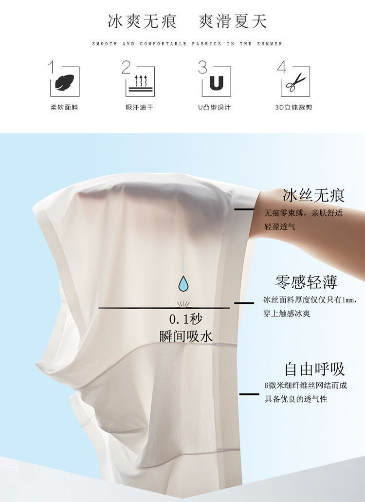 남성용 속옷, 남성용 아이스 실크, 무봉제, 얇고 통기성이 뛰어난 일체형 사각팬티, 속건성, 편안한 스포츠 사각팬티스토어 가기