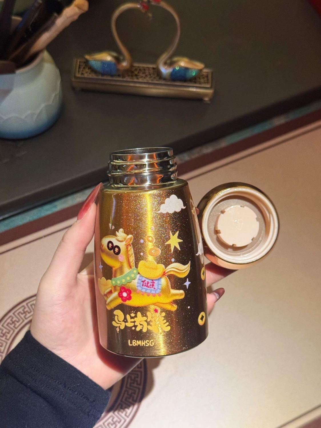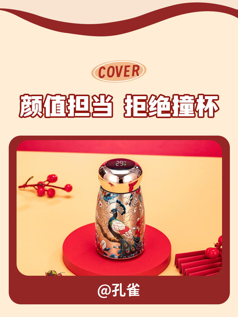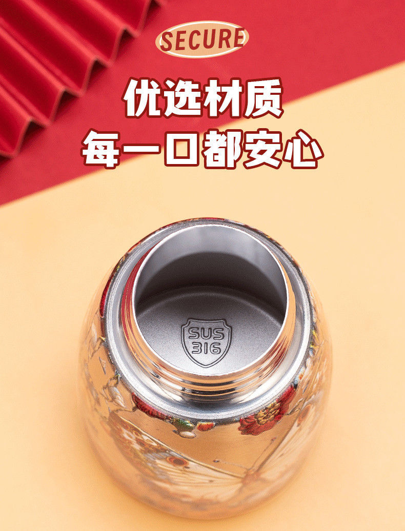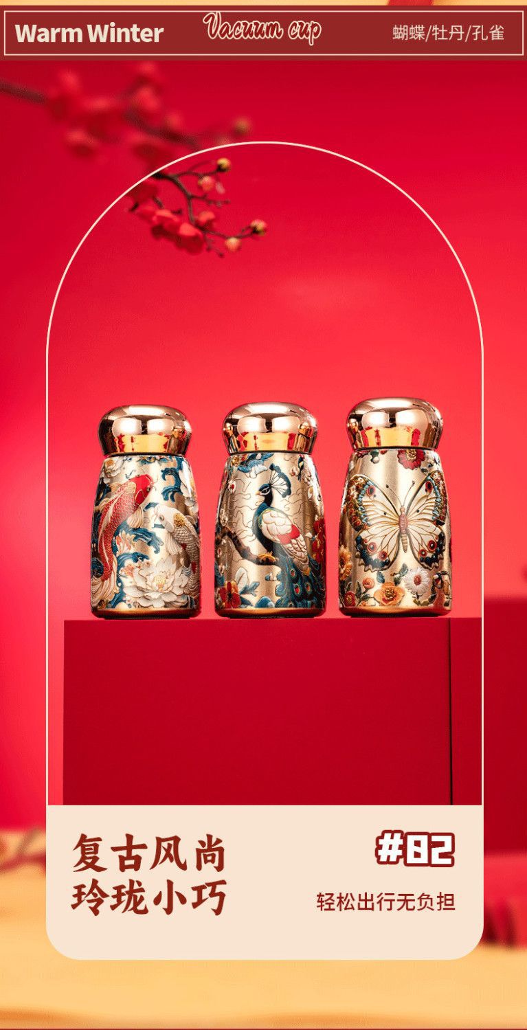 국제 신제품 공작새 스타일 뚱뚱이 316 보온병 야외 휴대용 손잡이 포켓컵 레트로
