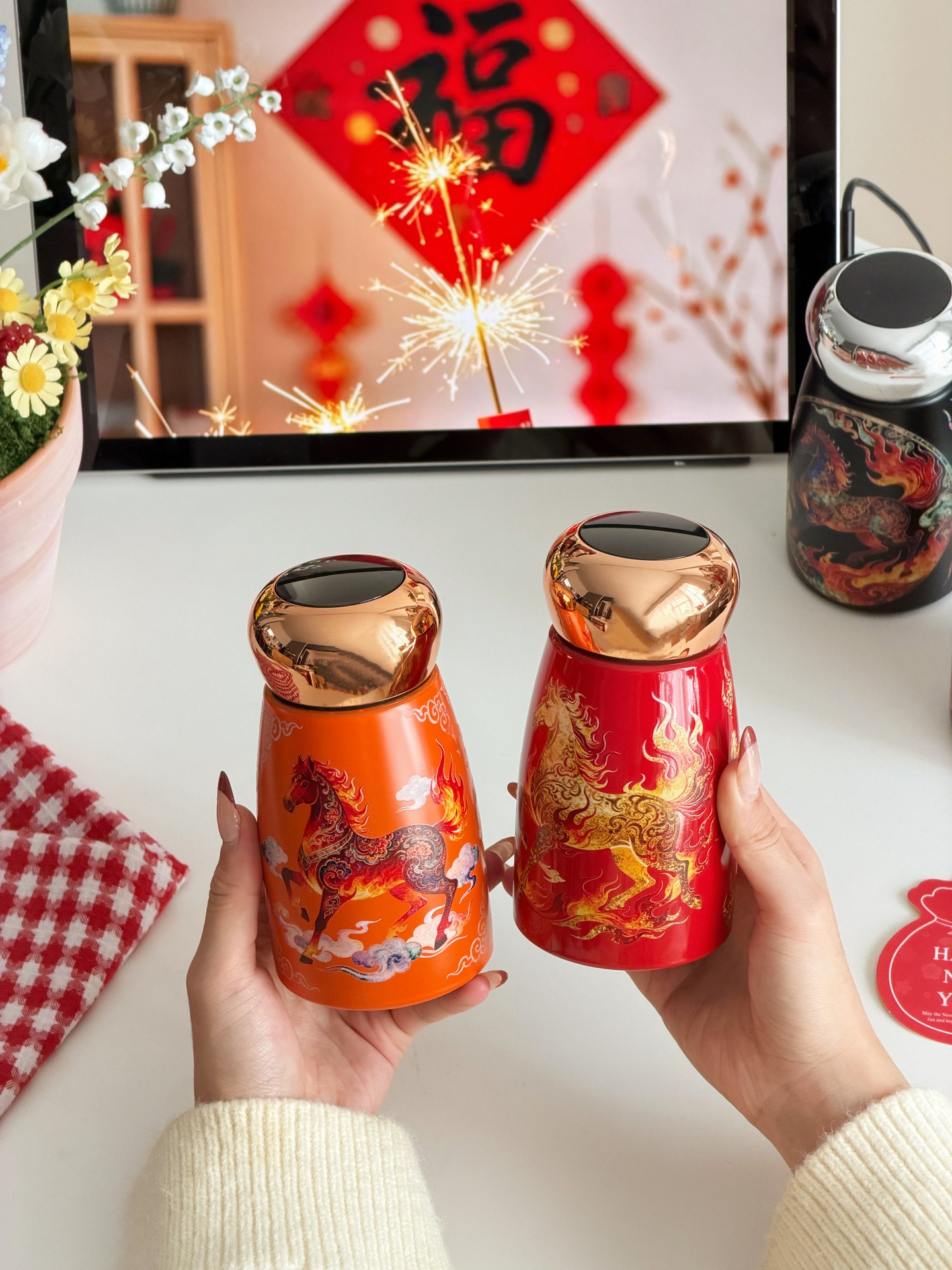 국제 신제품 공작새 스타일 뚱뚱이 316 보온병 야외 휴대용 손잡이 포켓컵 레트로스토어 가기