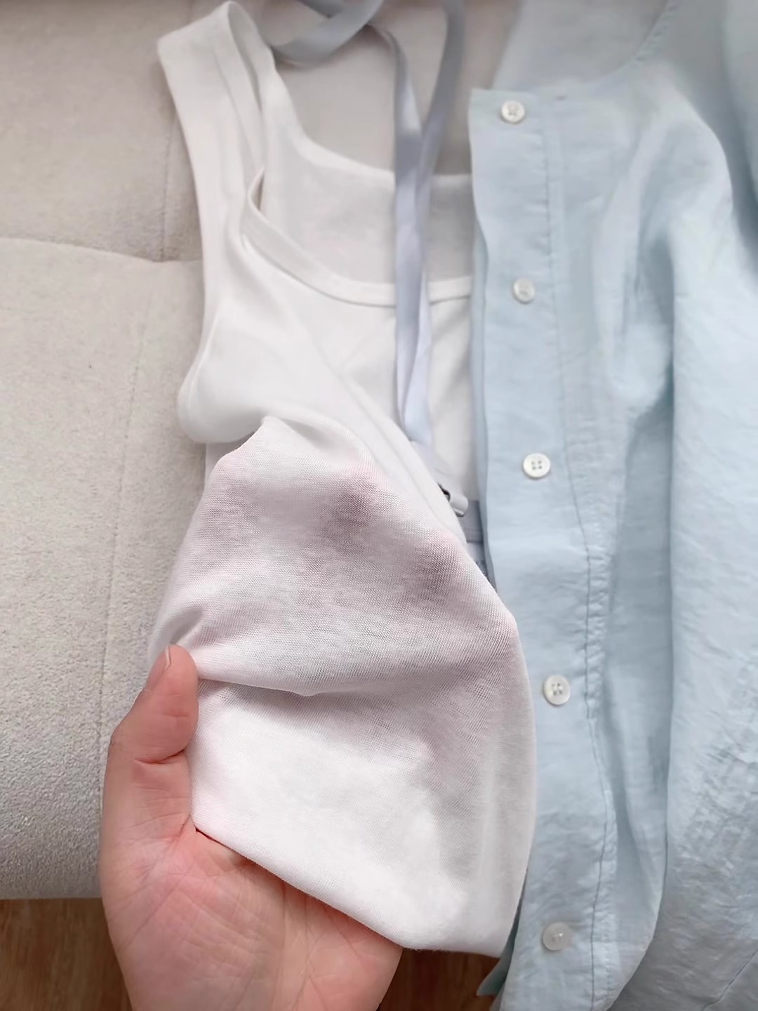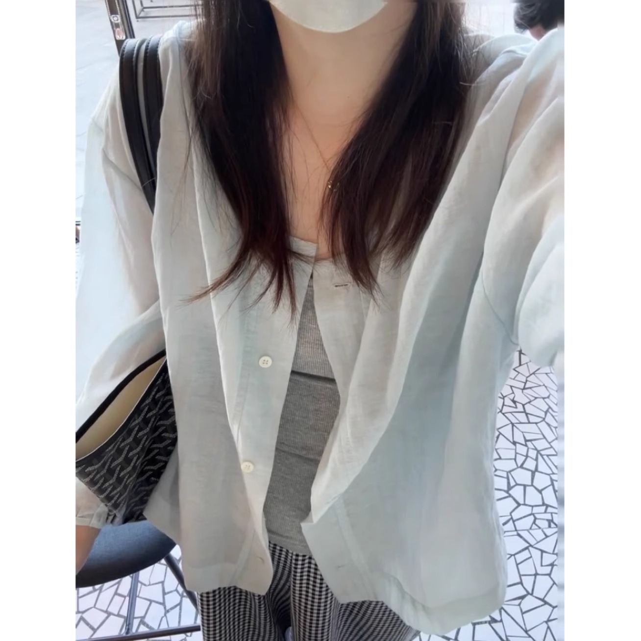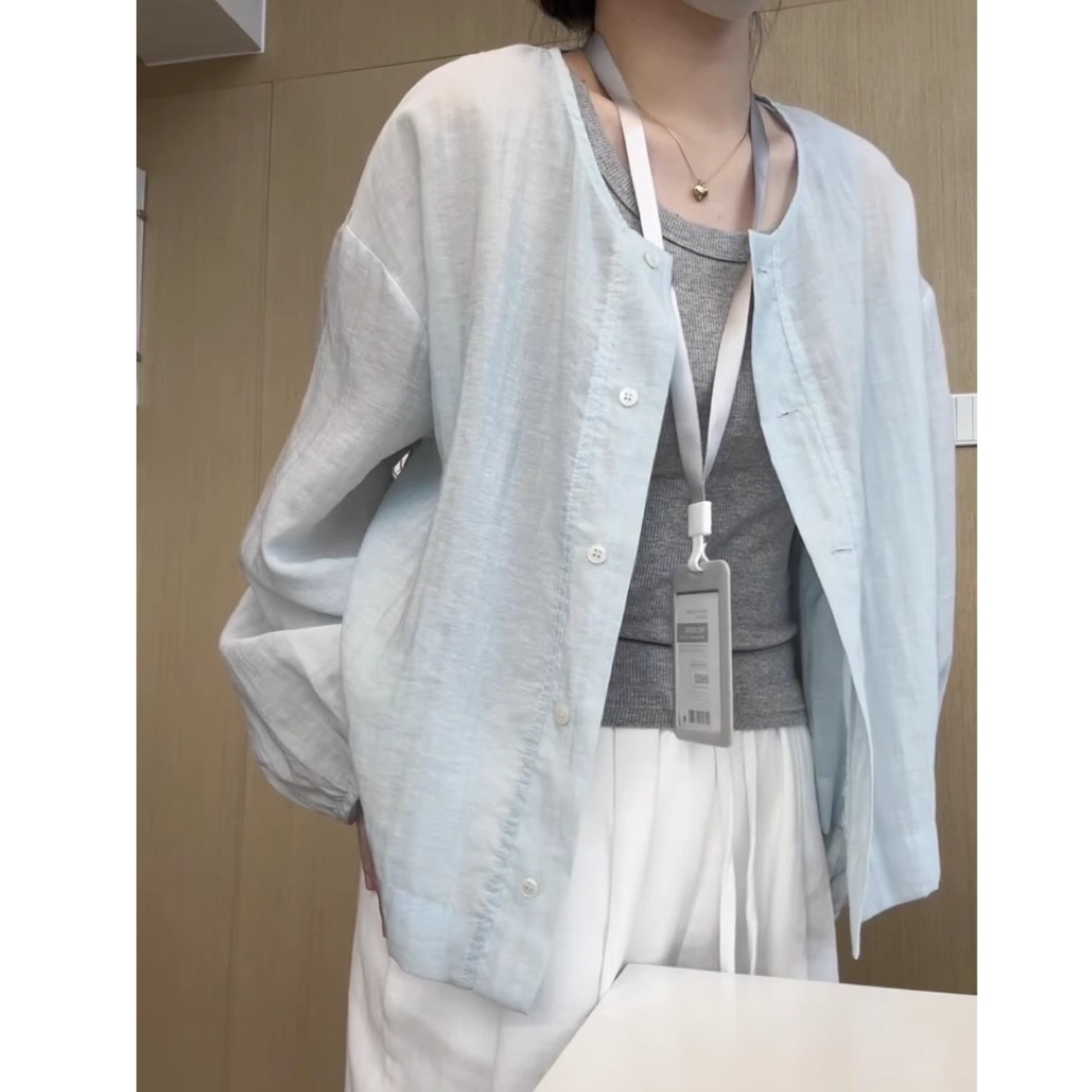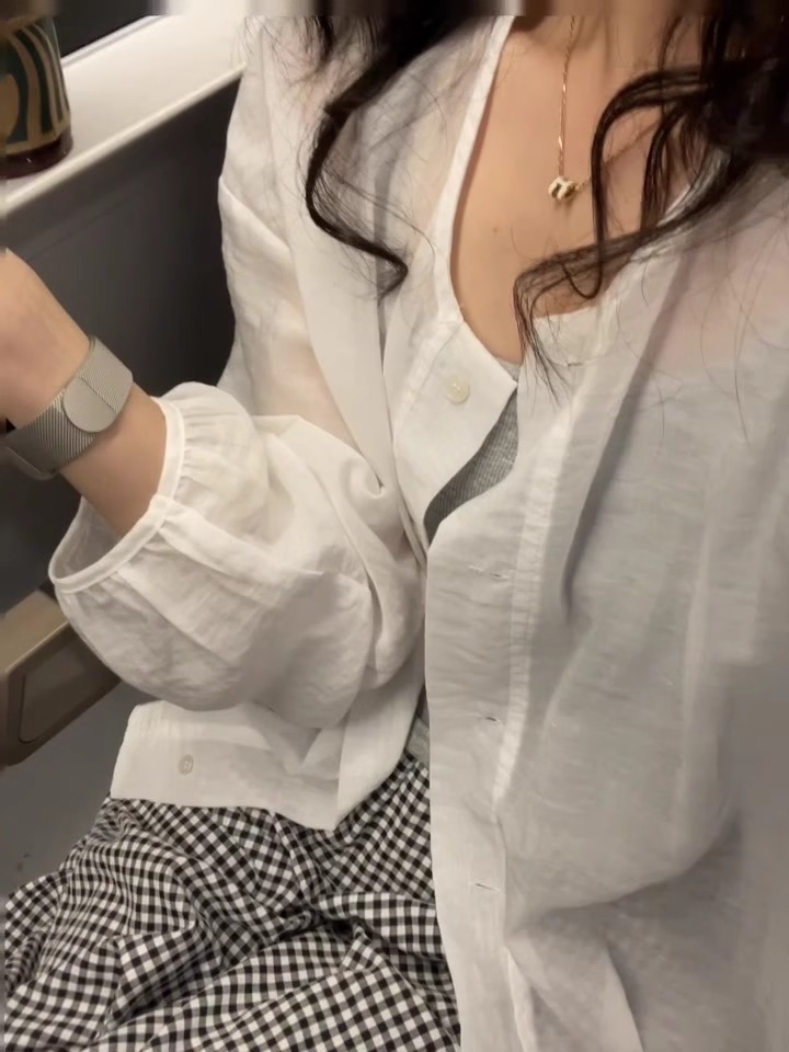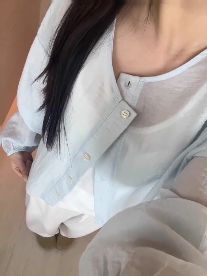 브랜드 대외 무역 ~ 컷 라벨 카운터 프렌치 라운드 넥 셔츠 자외선 차단 재킷 여성용 가볍고 통기성이 뛰어난 디자인 탑스토어 가기