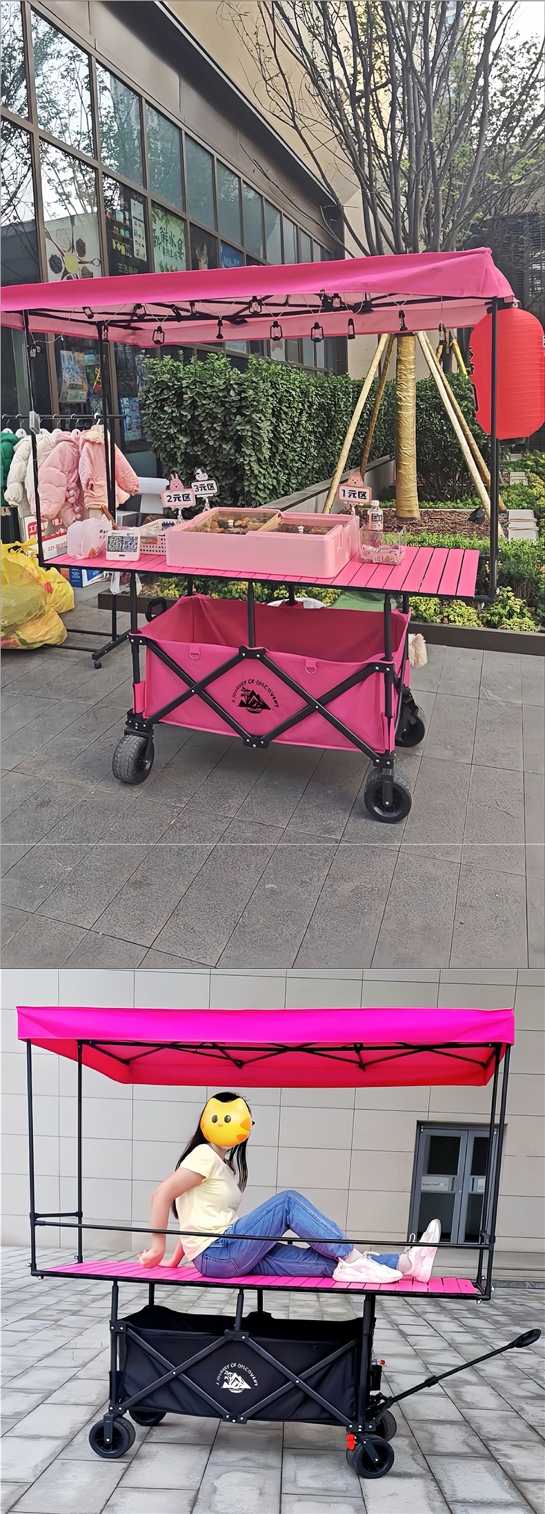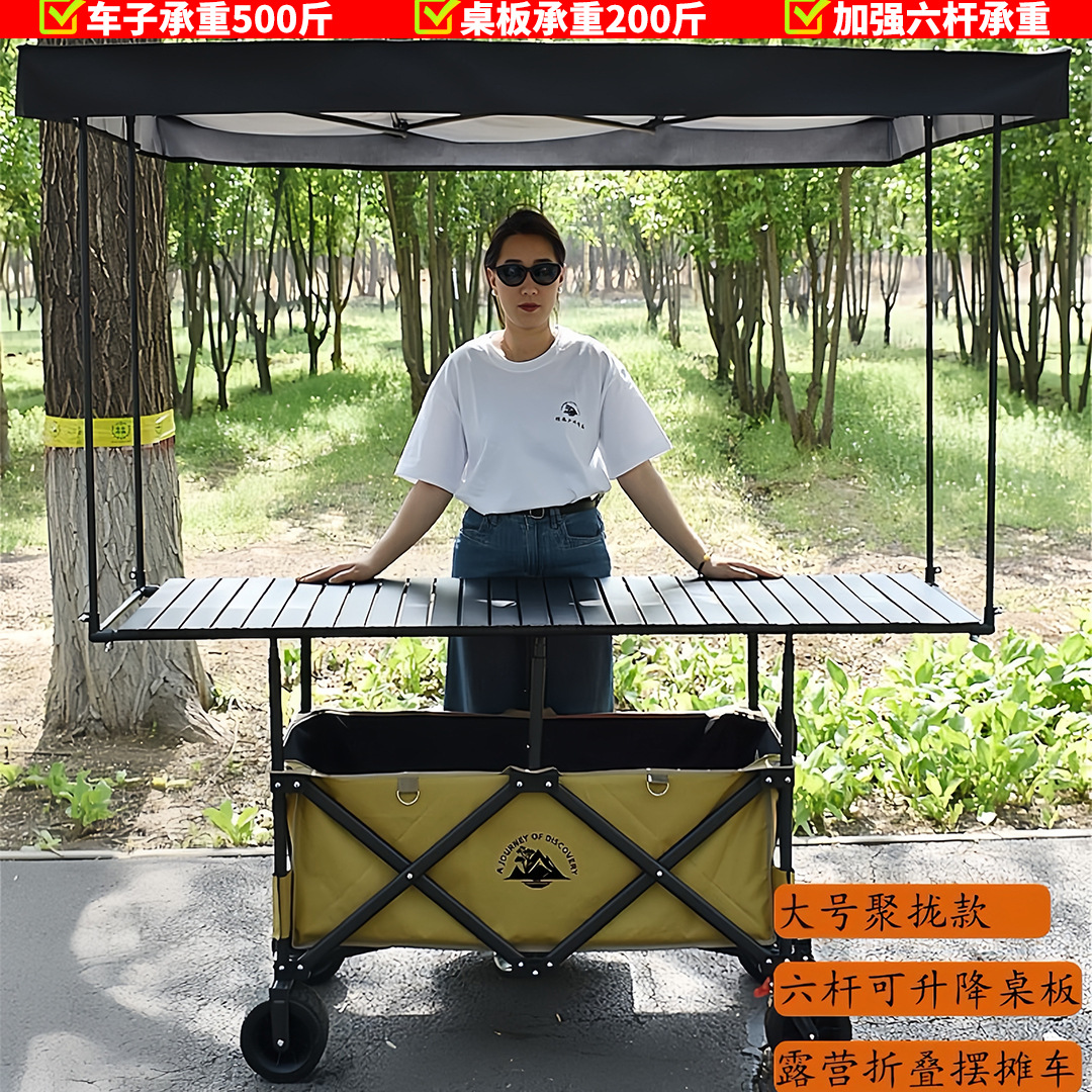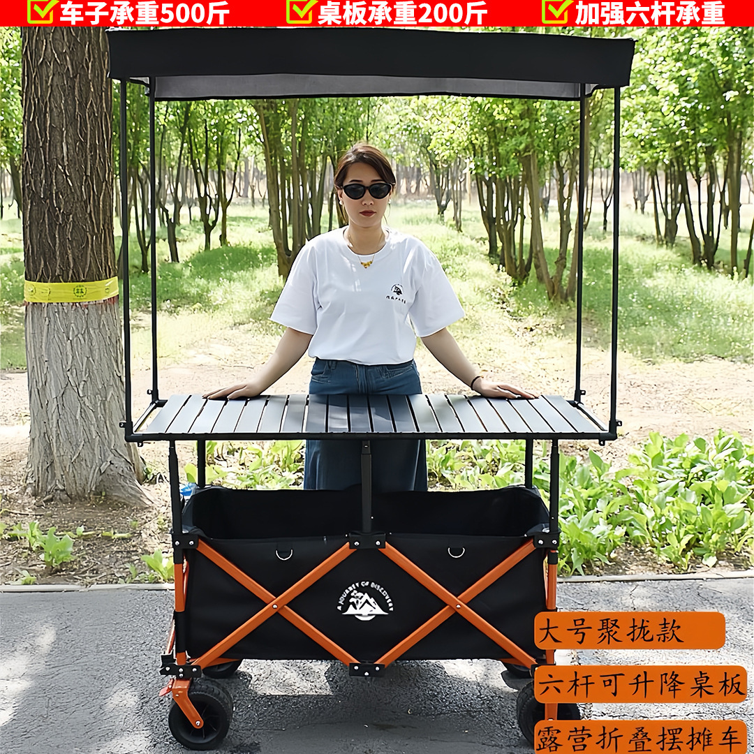 접이식 야외 캠핑카, 노점 트롤리, 야시장 스낵카, 손으로 당기는 트롤리, 캠프 실크 플라워스토어 가기