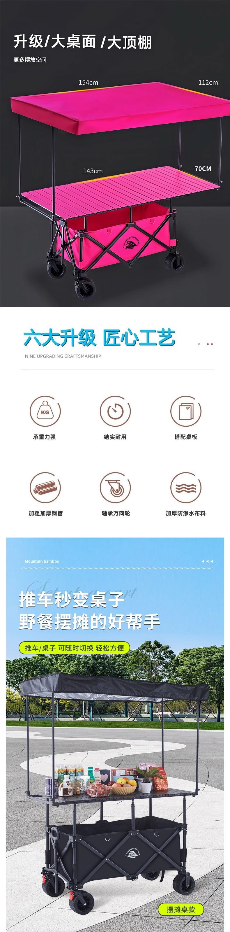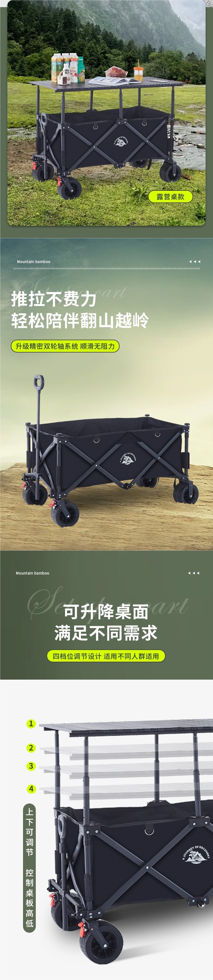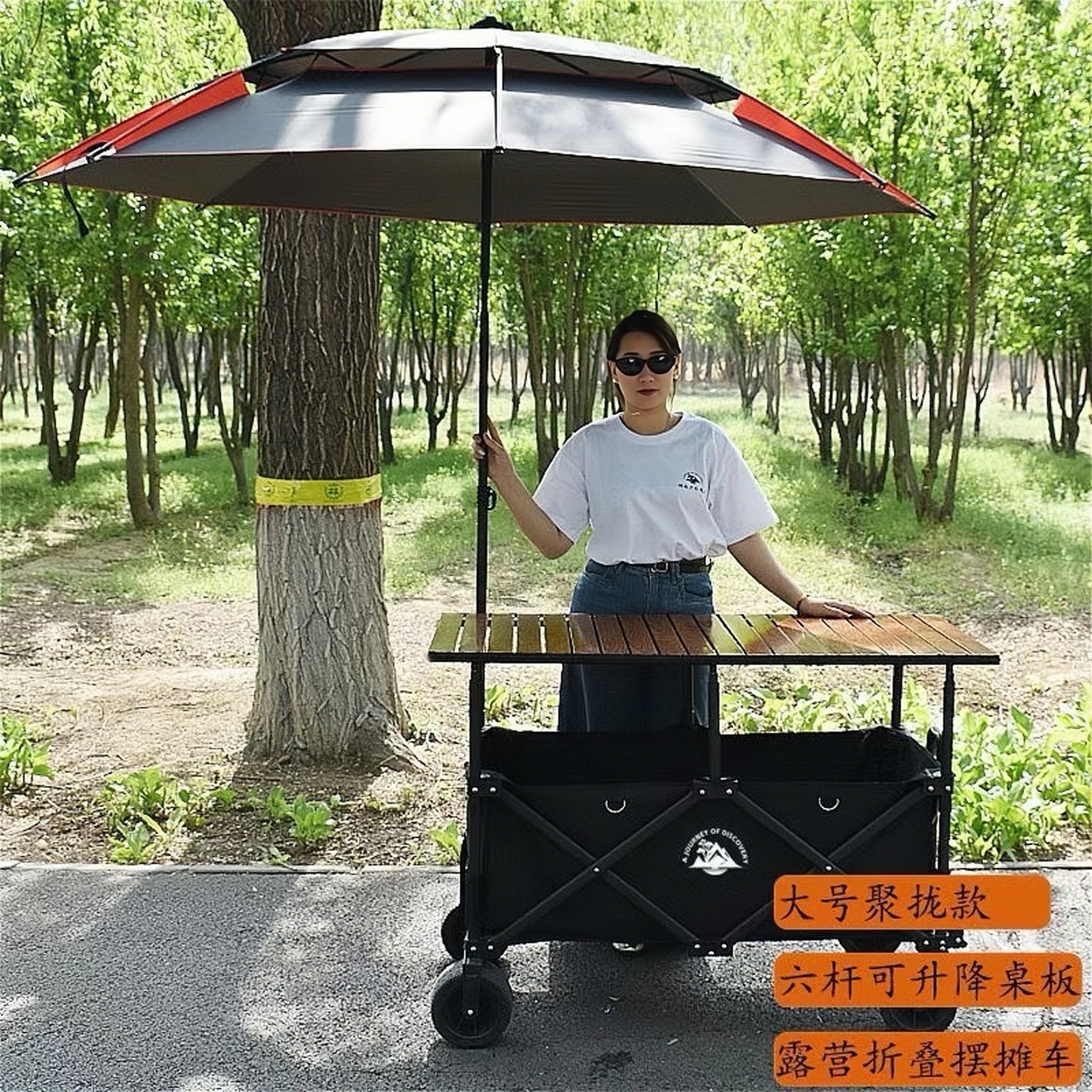 접이식 야외 캠핑카, 노점 트롤리, 야시장 스낵카, 손으로 당기는 트롤리, 캠프 실크 플라워스토어 가기