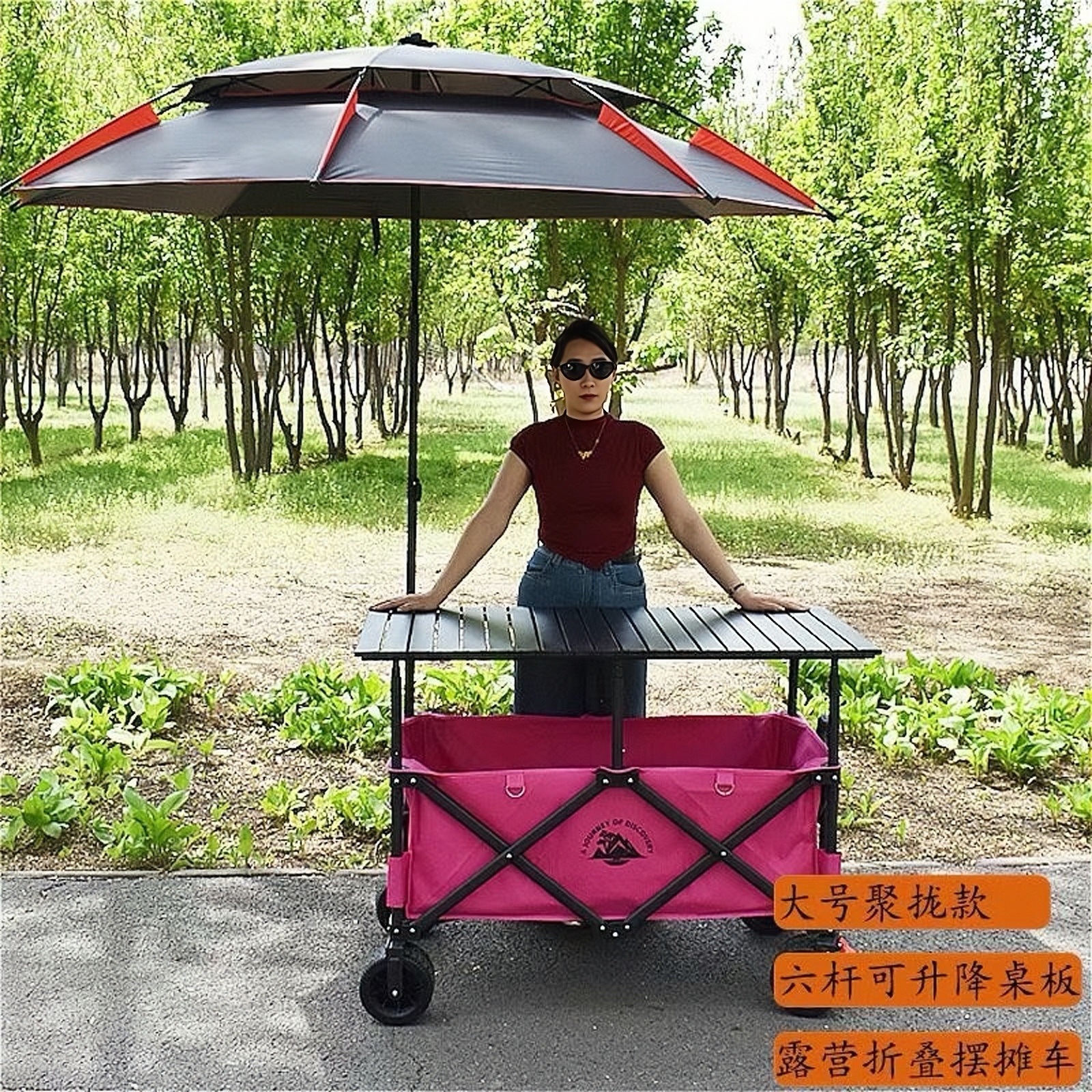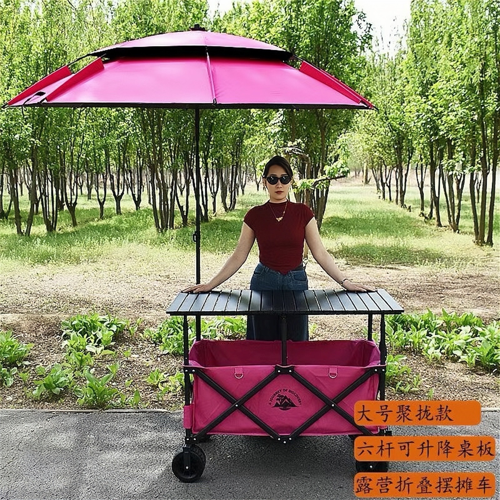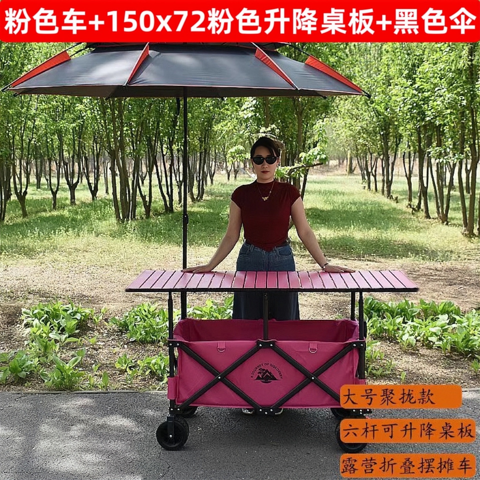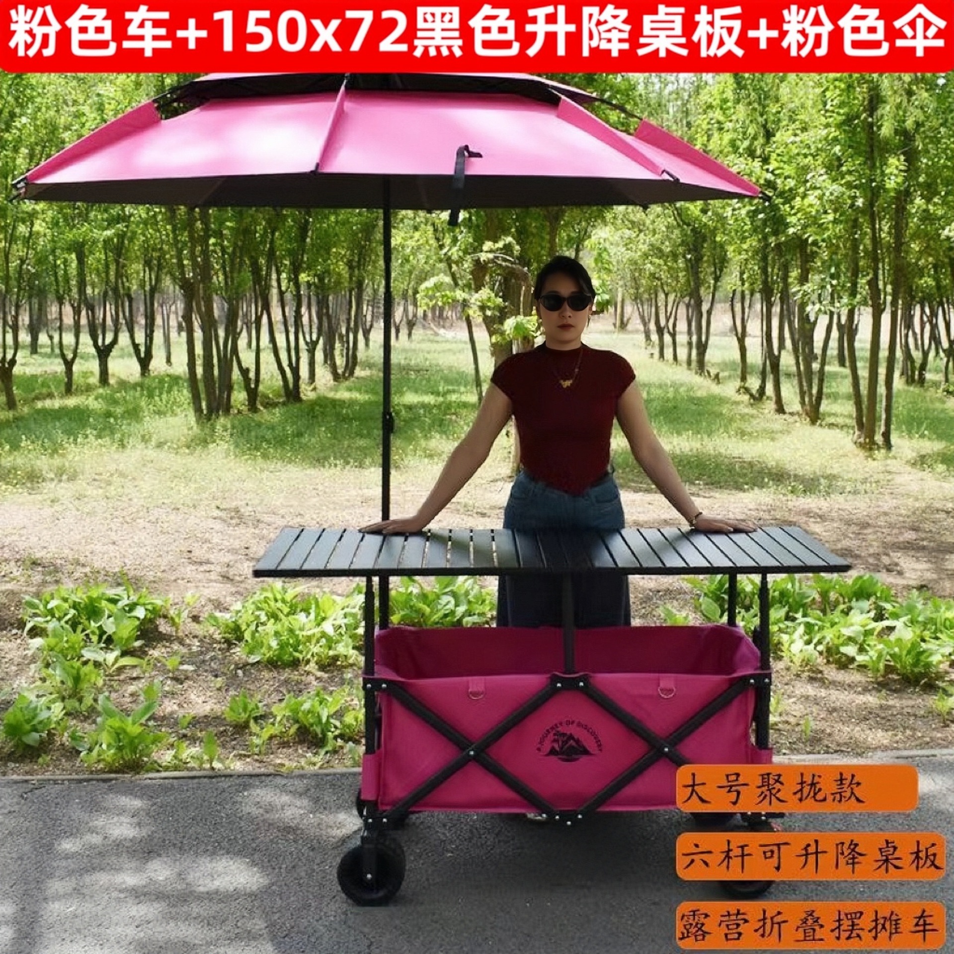 • 핑크카 + 167*60 핑크 리프팅 테이블 + (핑크) 대형 우산