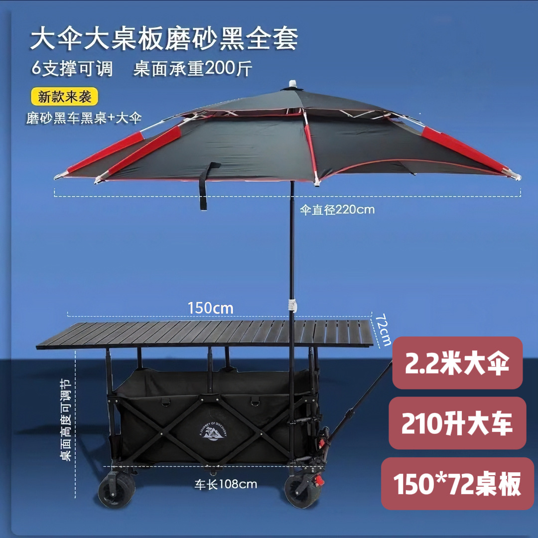 • 라이트 커피 카트 + 167*60 블랙 리프팅 테이블 + (블랙) 대형 우산