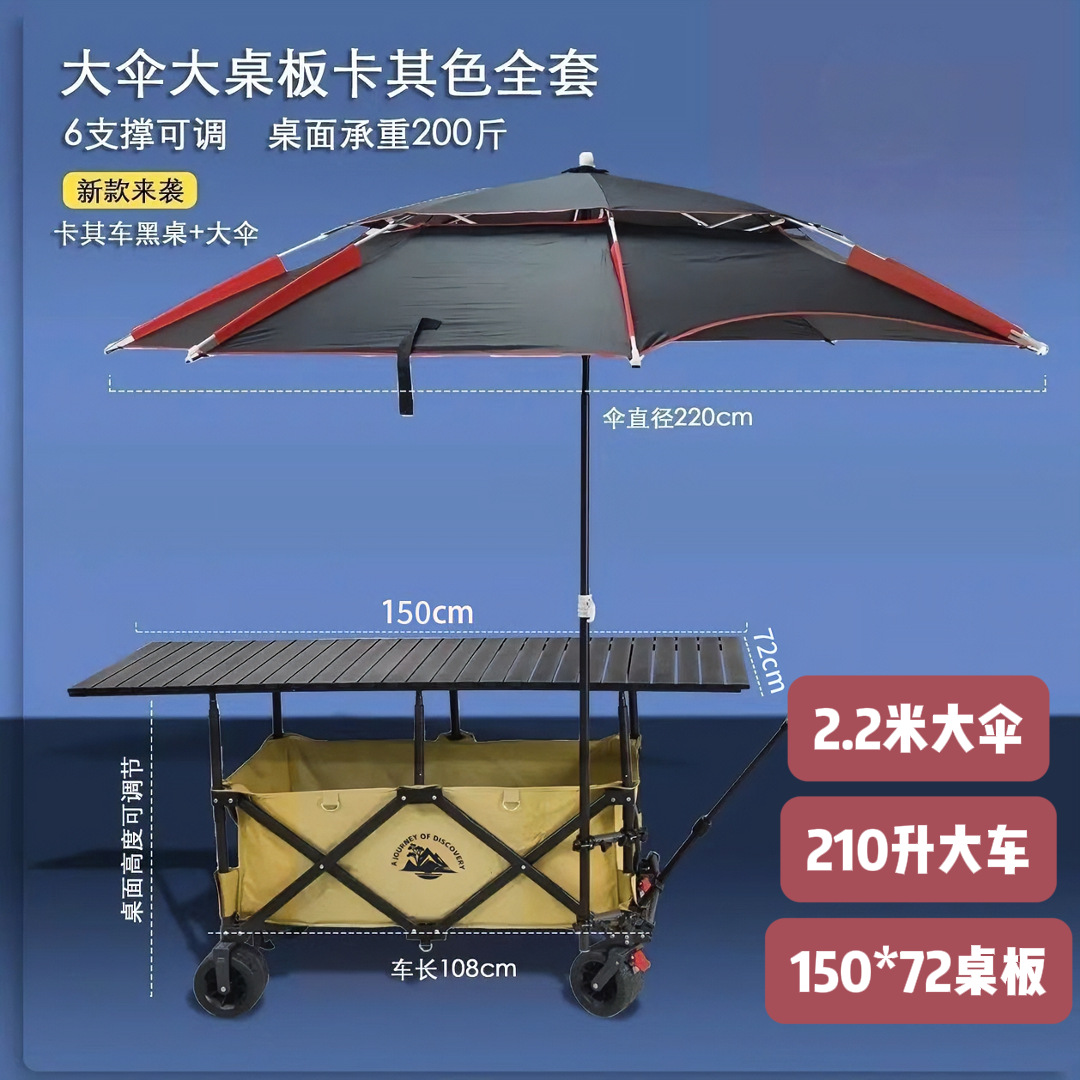 • 라이트 커피 카트 + 120*60 나뭇결 리프팅 테이블 + (검은색) 대형 우산